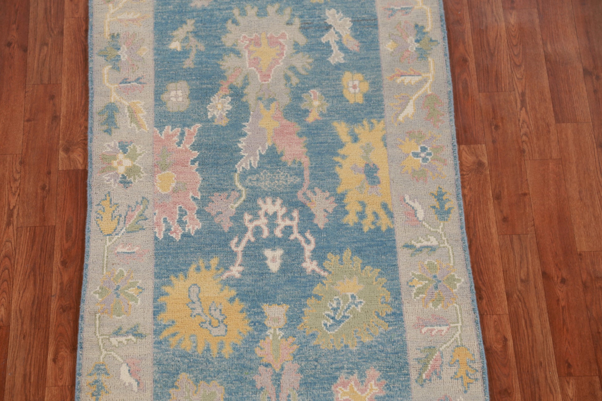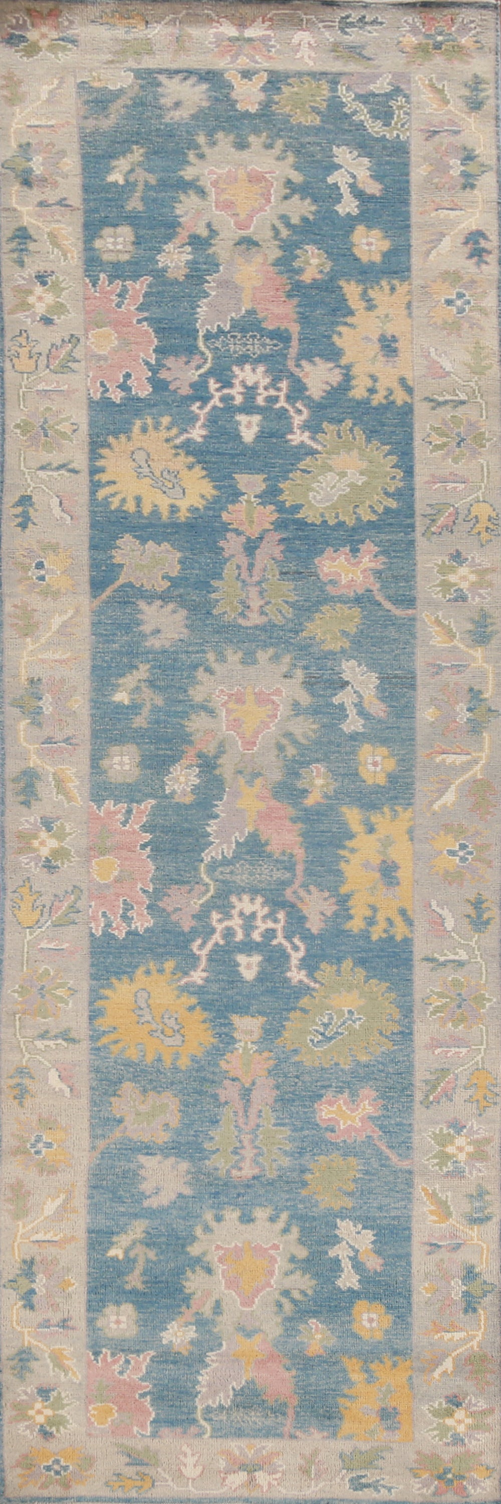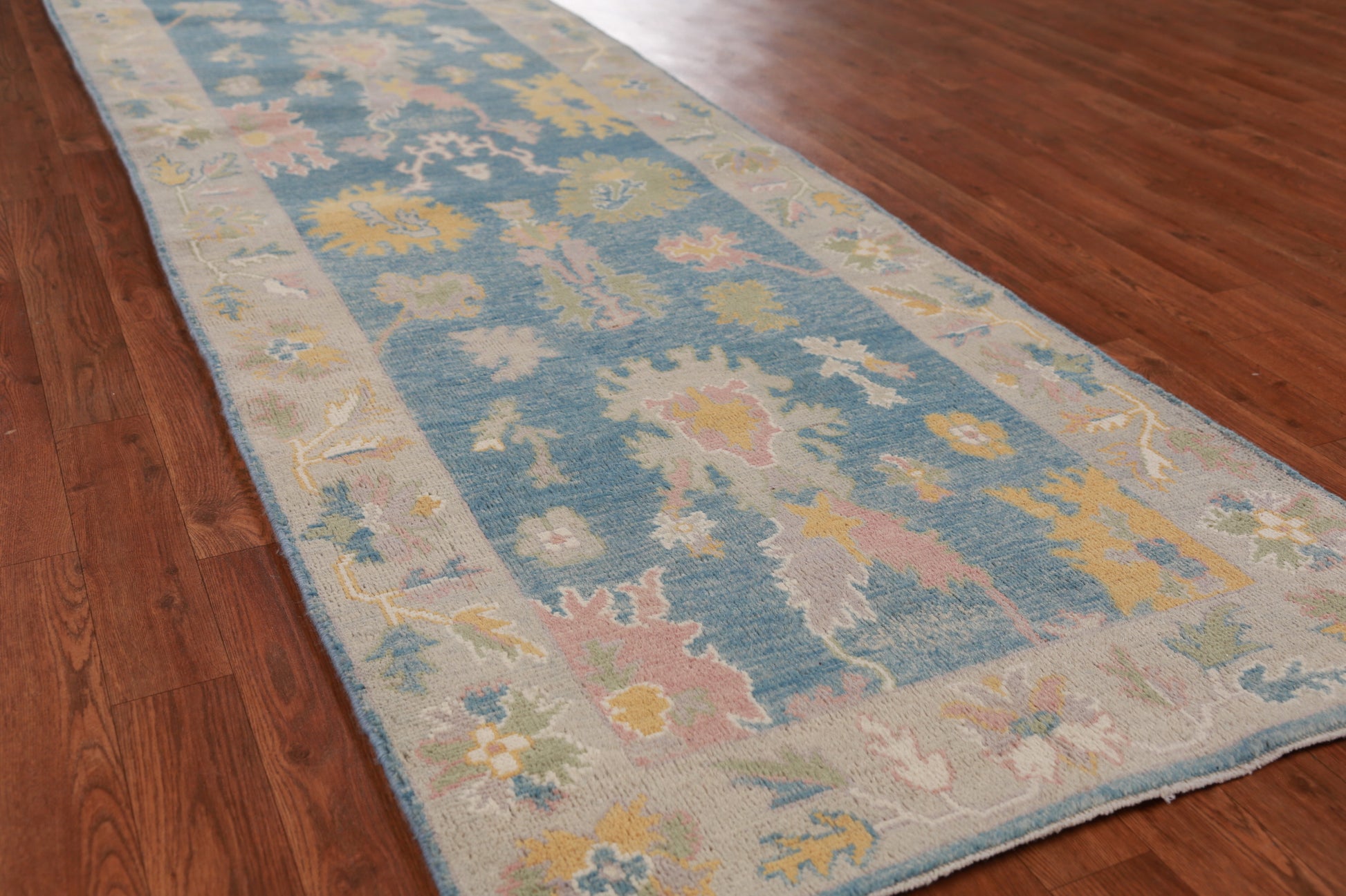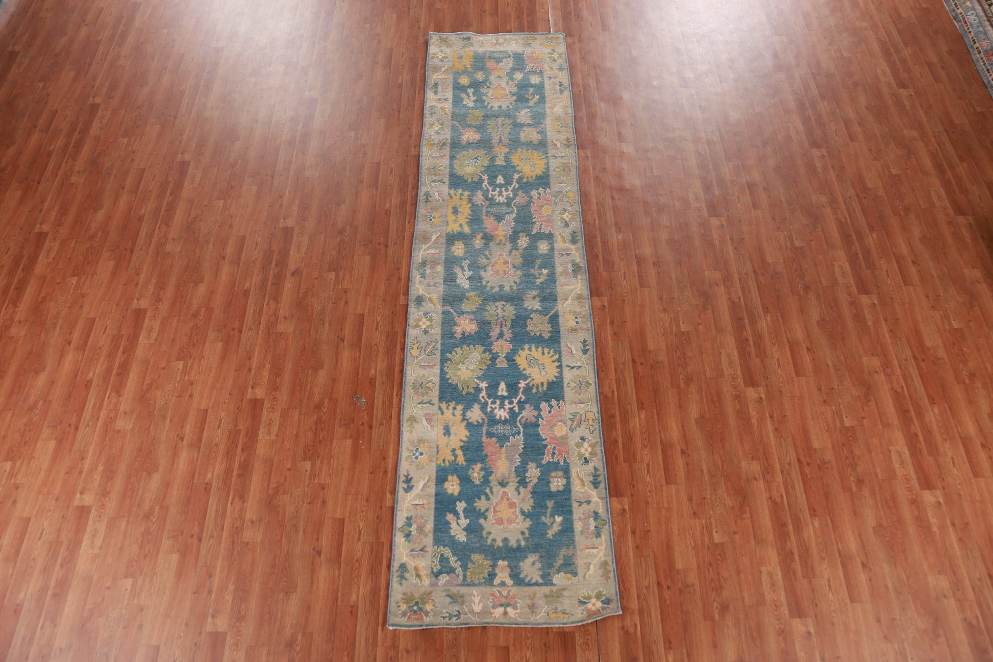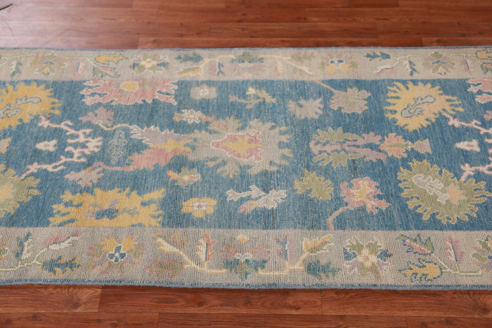 Vegetable Dye Blue Oushak Turkish Runner Rug 3x12