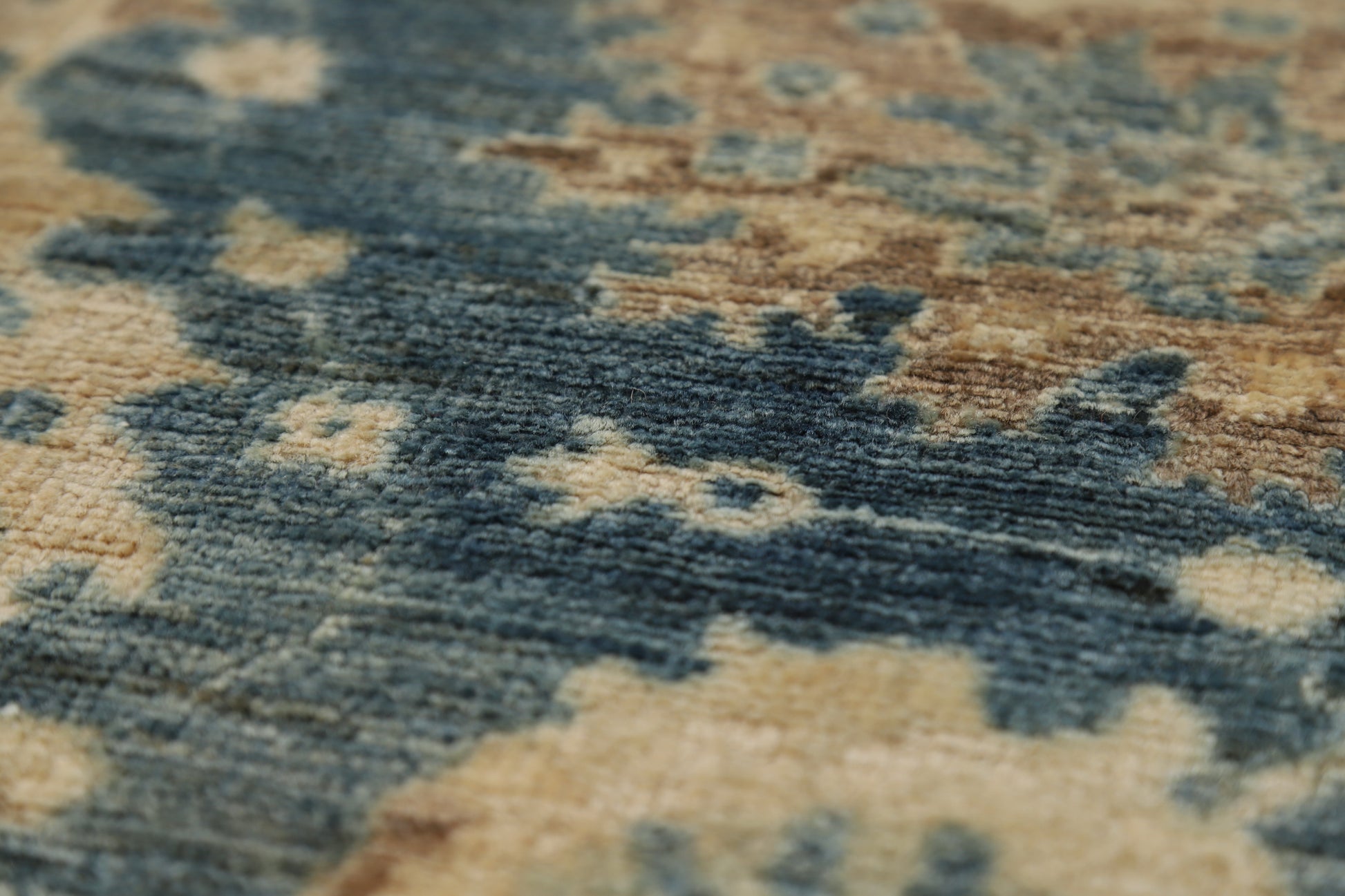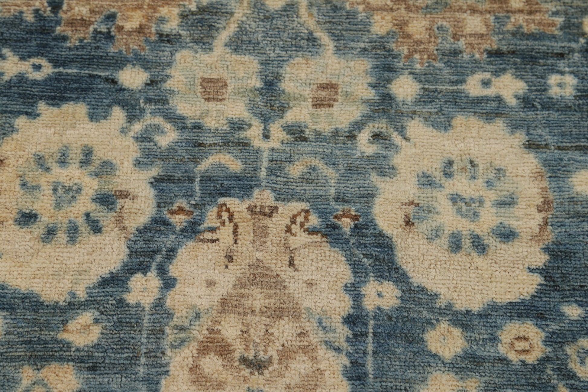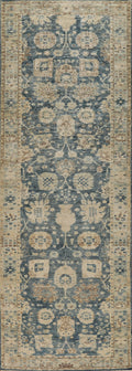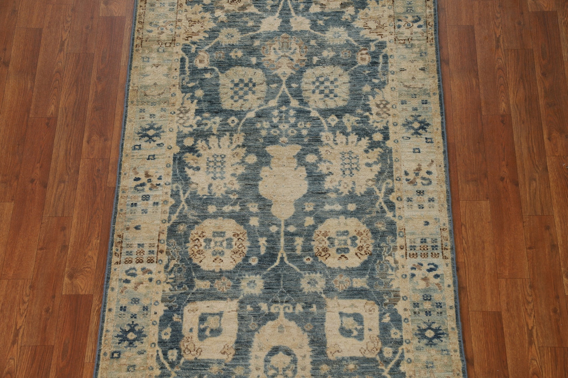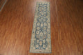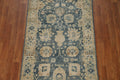 Vegetable Dye Blue Oushak Turkish Runner Rug 3x12