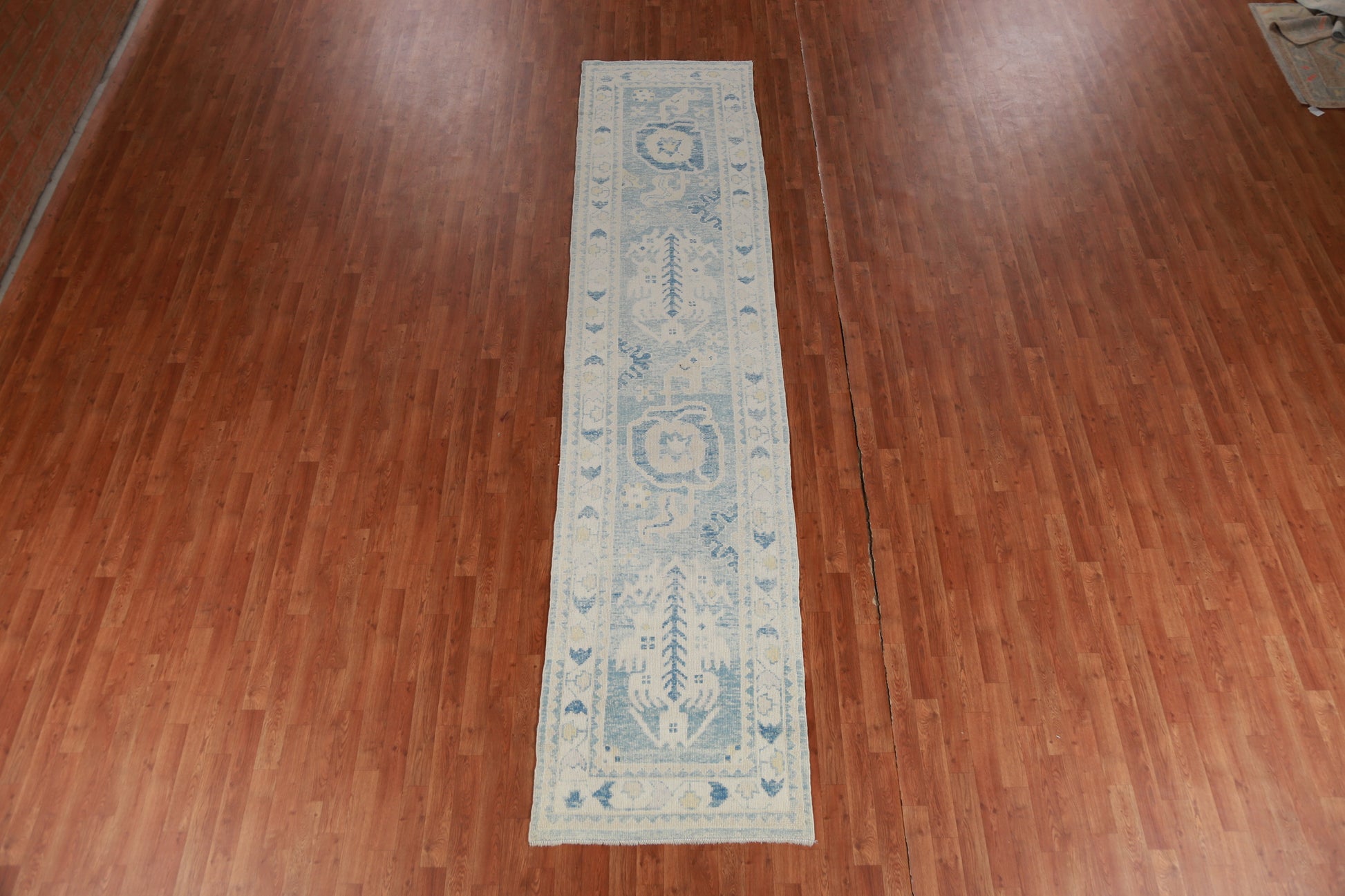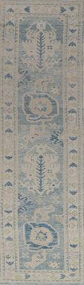 Vegetable Dye Blue Oushak Turkish Runner Rug 3x13