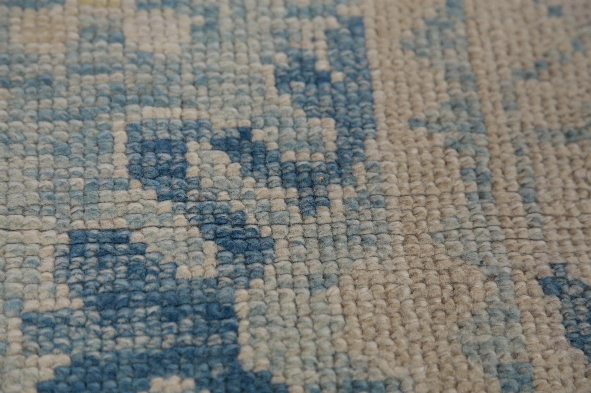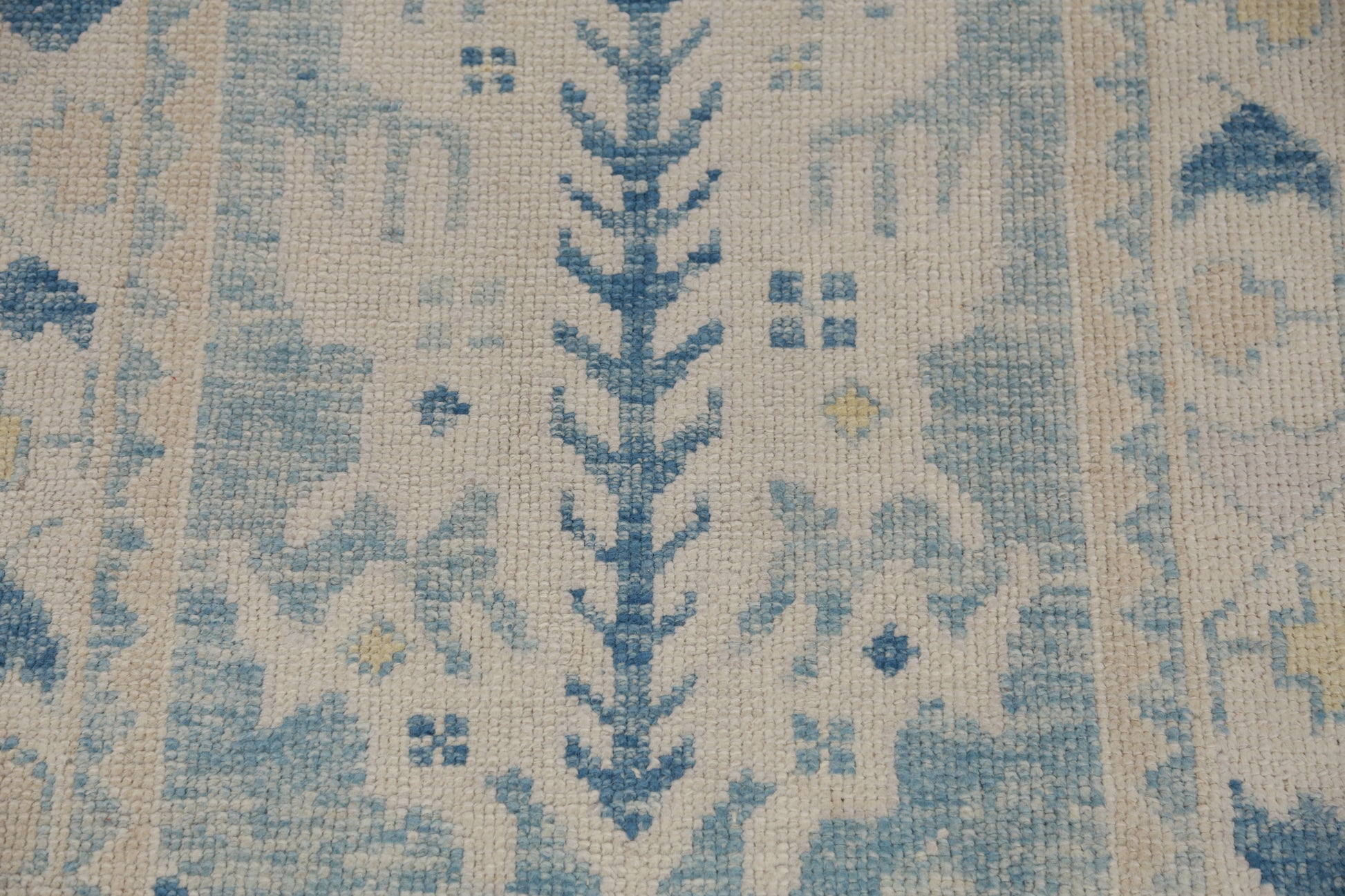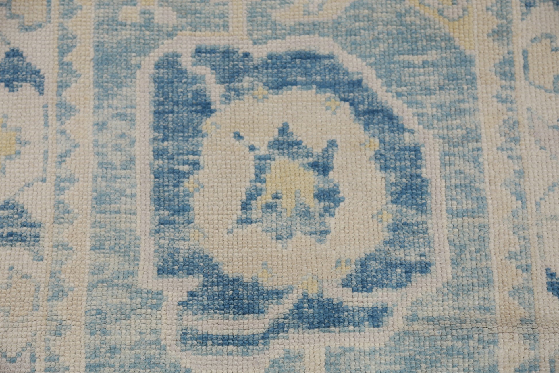 A Beautiful Genuine Turkey Oushak rug is Hand Knotted by skillful weavers in Turkey with 100% Wool Material. This rug is in New, First Quality condition. dimensions are 12' 10'' X 3' 0'' in foot and 391 X 91 in centimeter. the primary color is Navy Blue & Blues.
