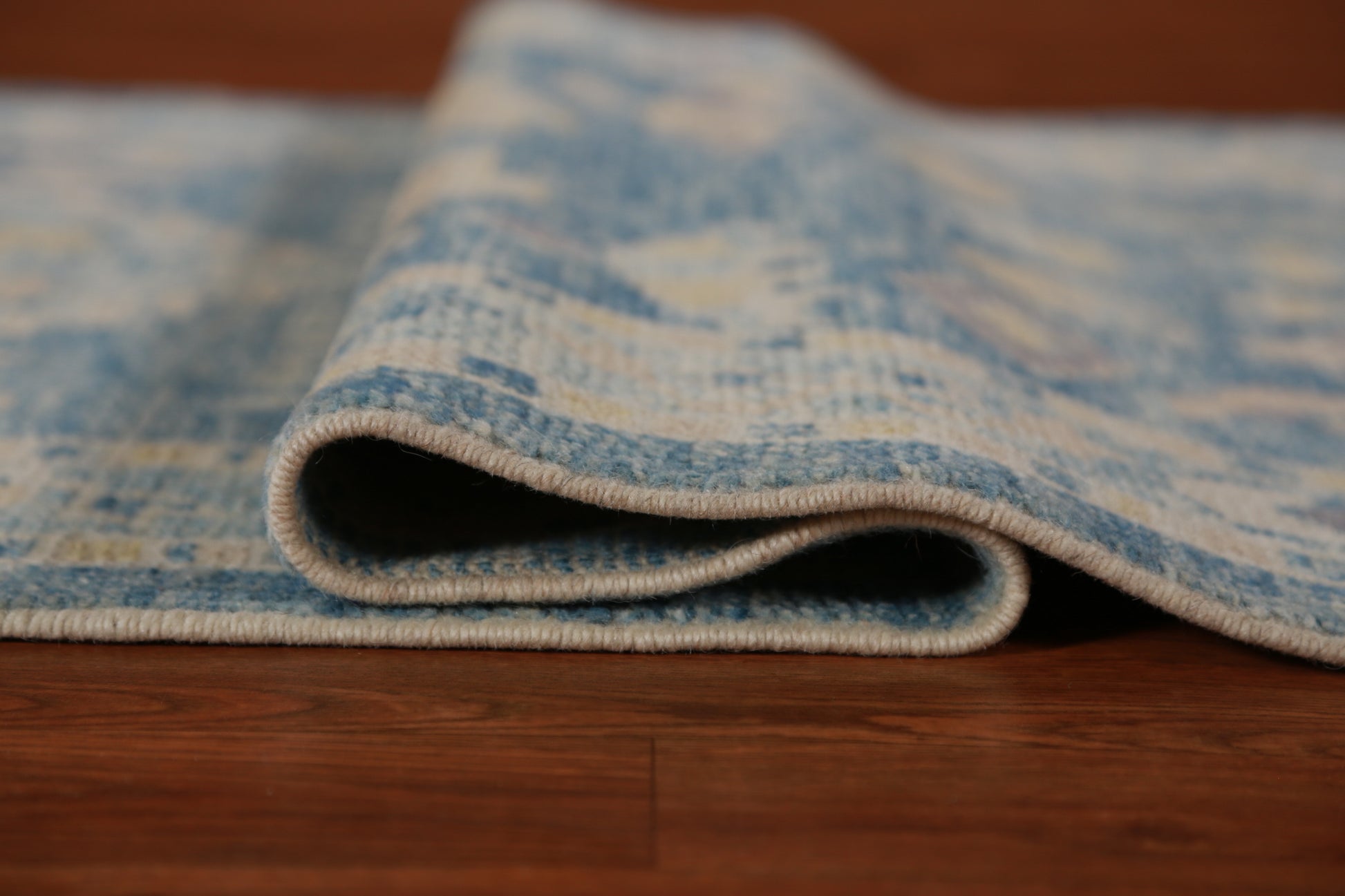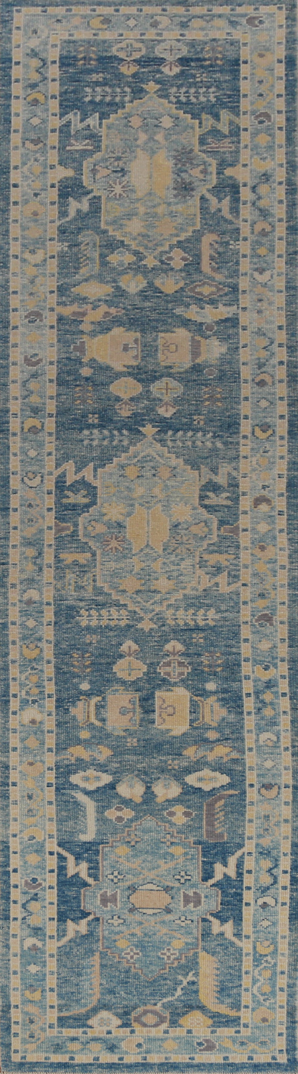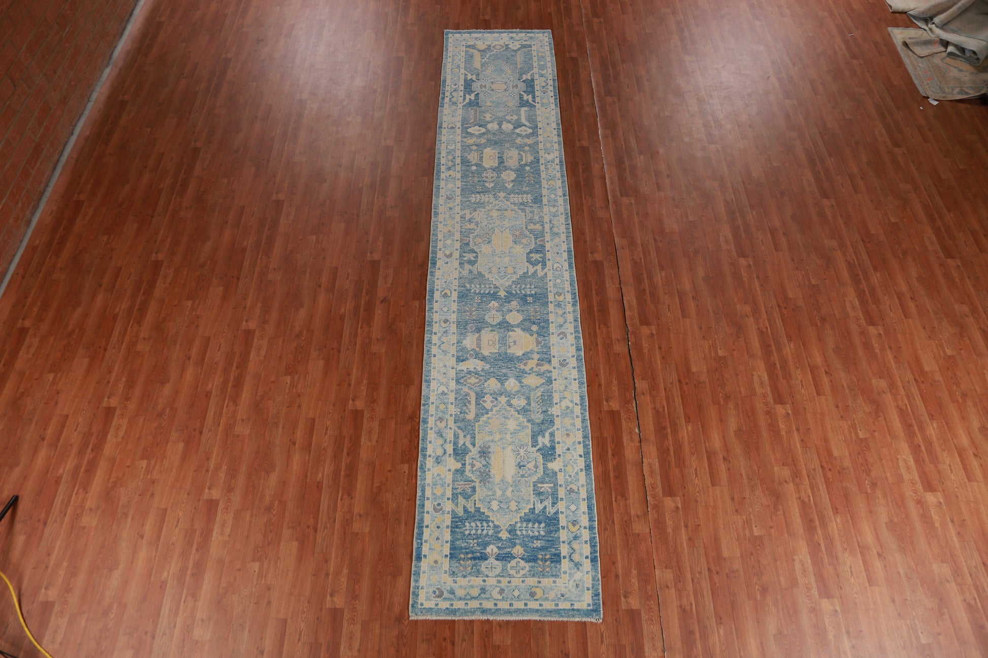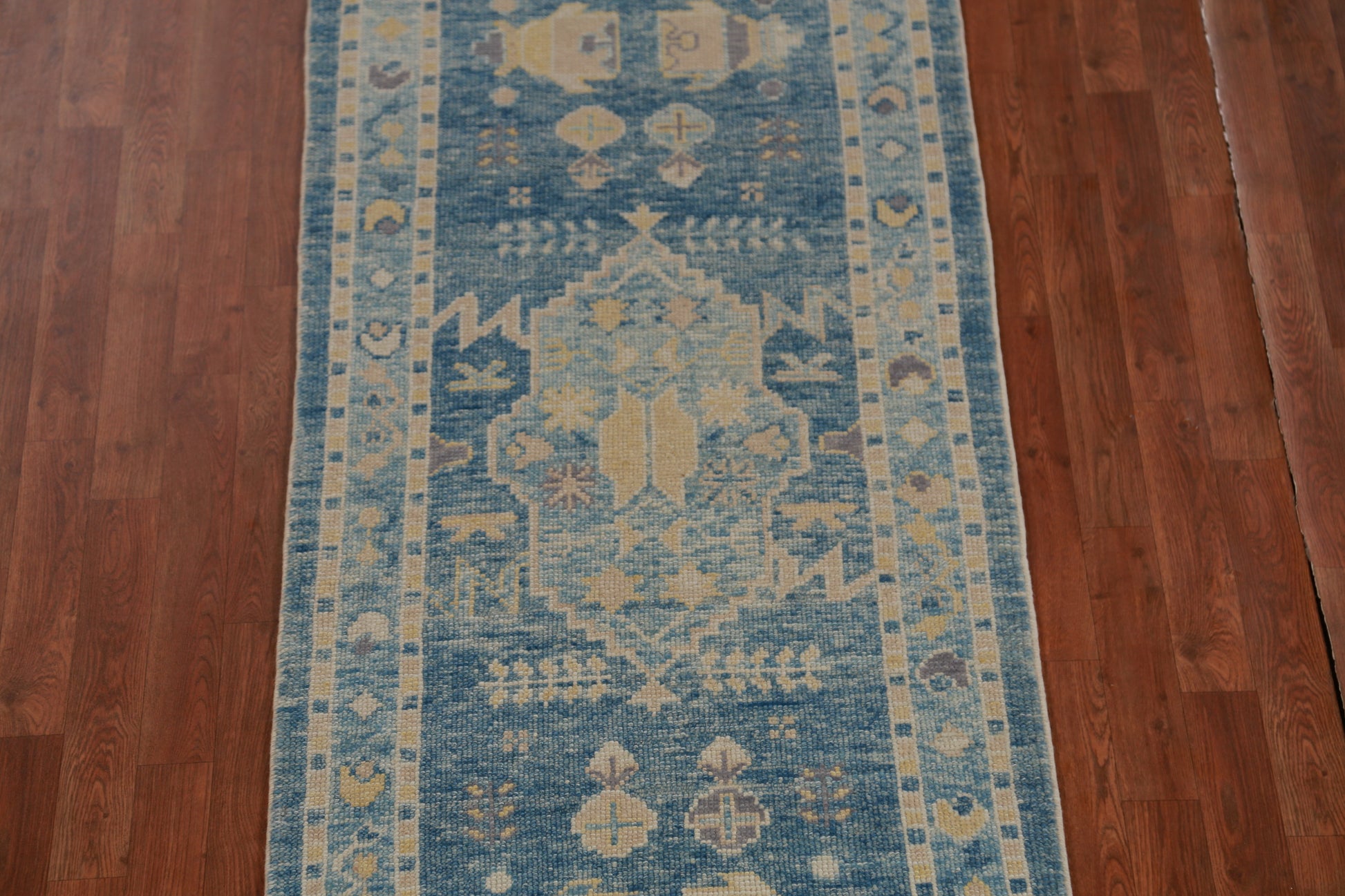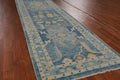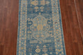 Vegetable Dye Blue Oushak Turkish Runner Rug 3x14