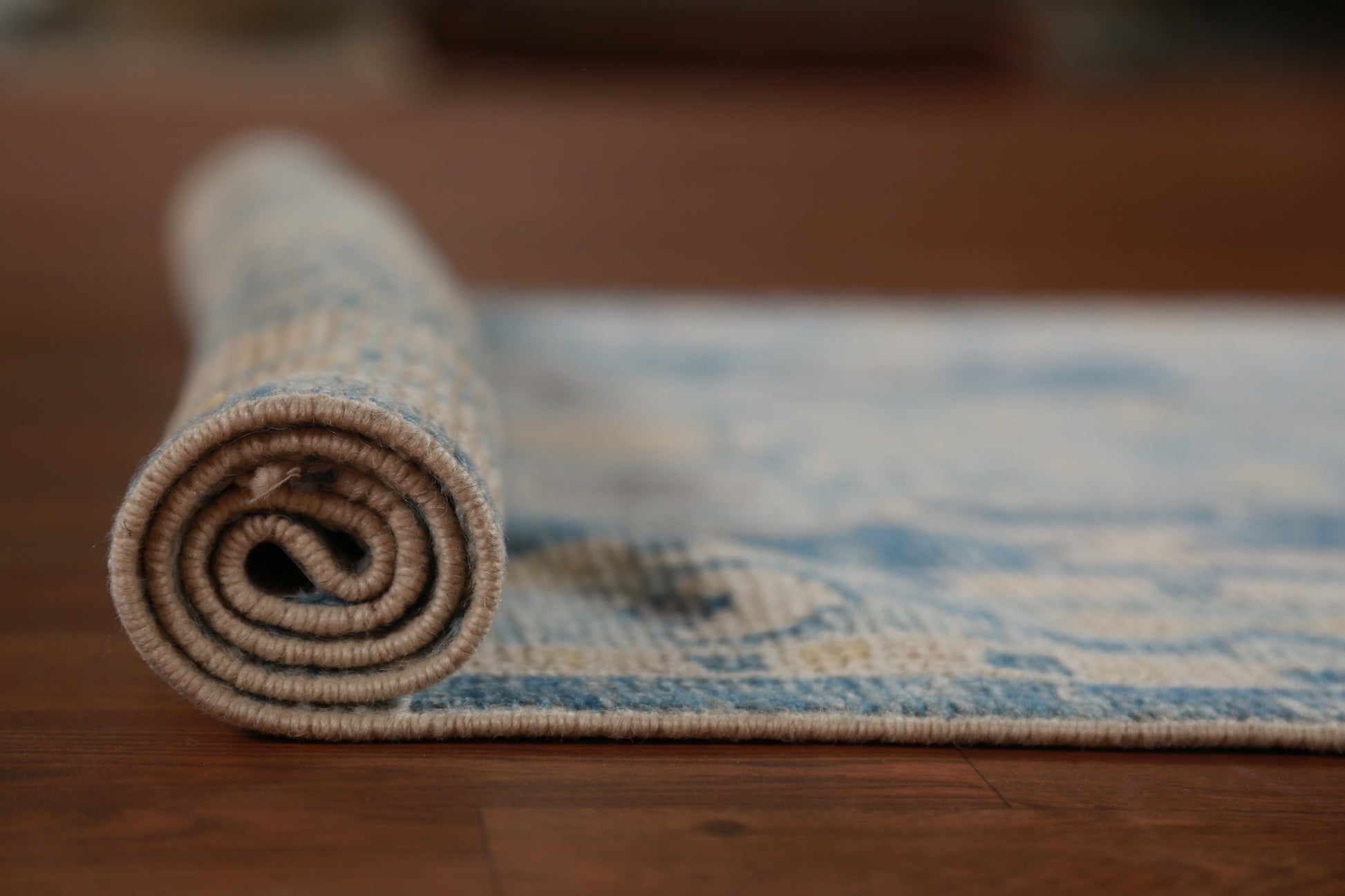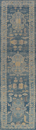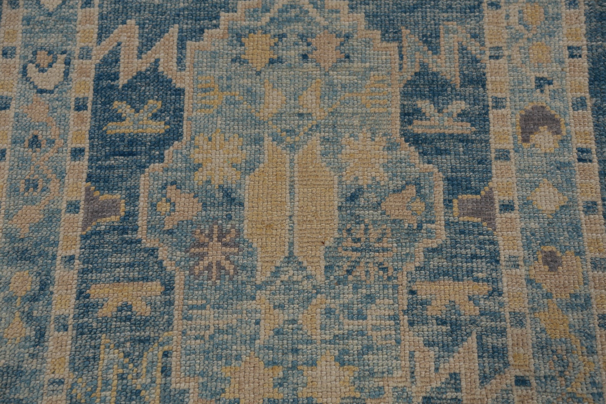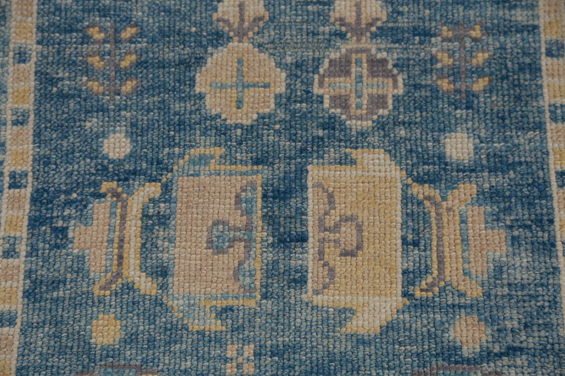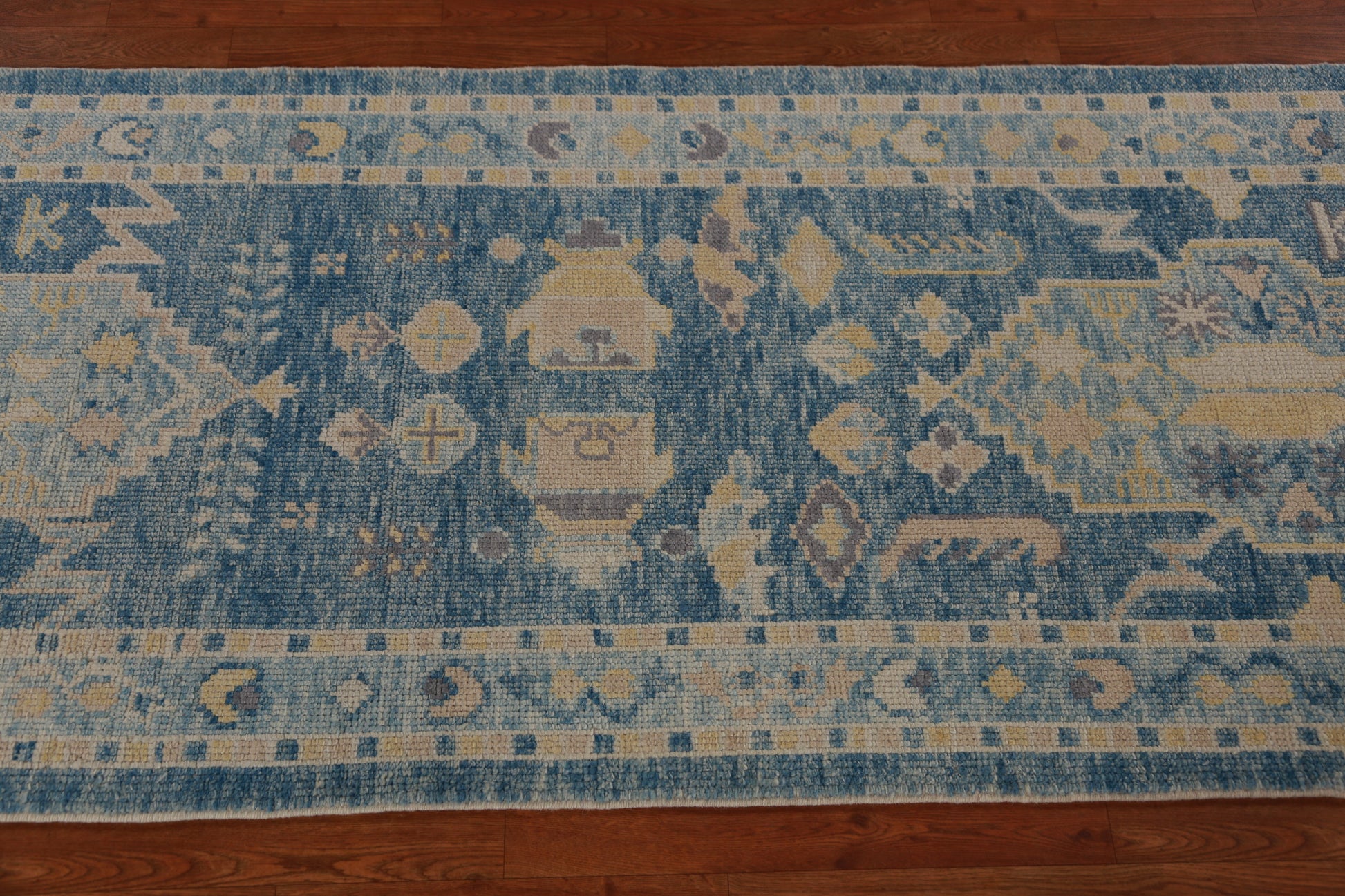 Vegetable Dye Blue Oushak Turkish Runner Rug 3x14
