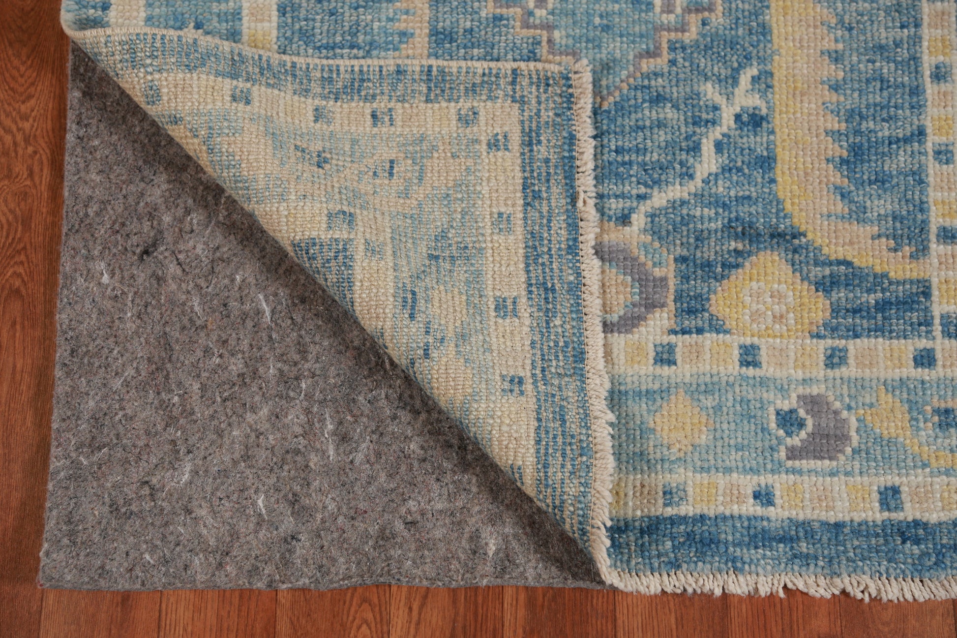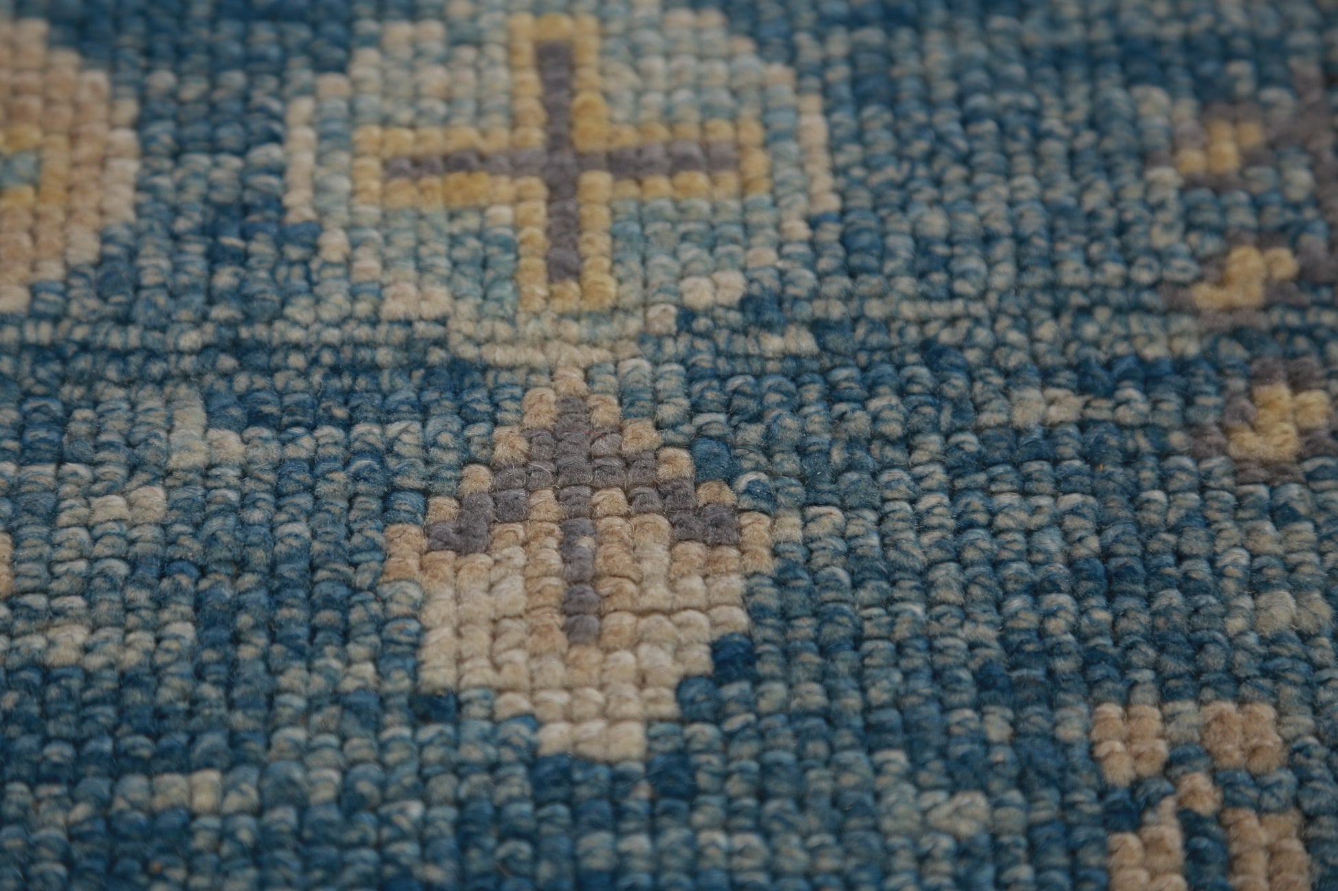 A Beautiful Genuine Turkey Oushak rug is Hand Knotted by skillful weavers in Turkey with 100% Wool Material. This rug is in New, First Quality condition. dimensions are 14' 4'' X 2' 10'' in foot and 437 X 86 in centimeter. the primary color is Navy Blue & Blues.