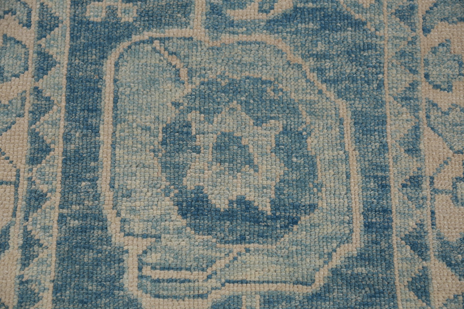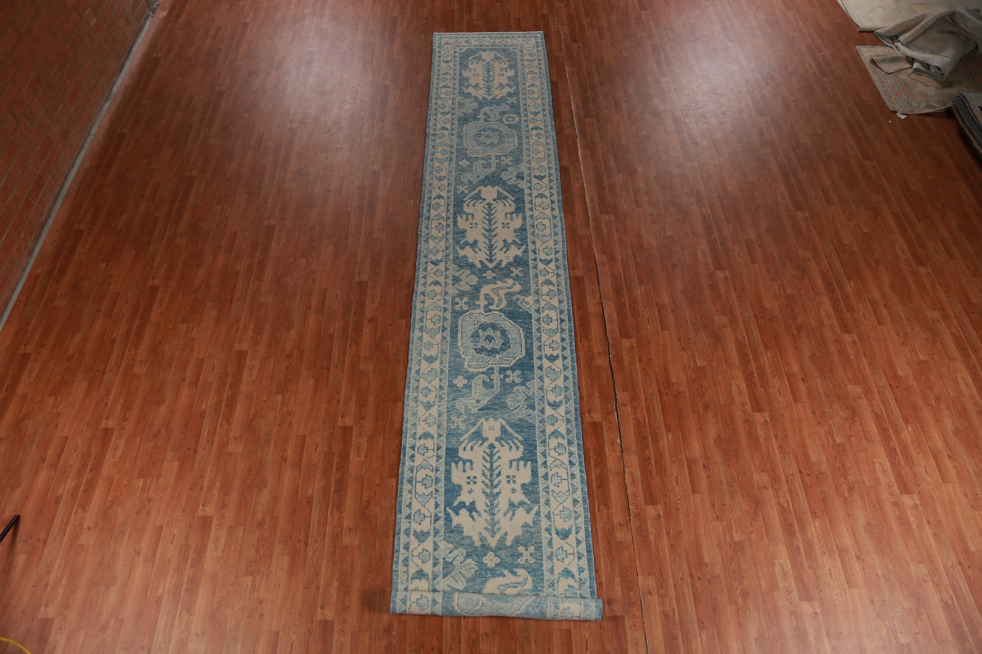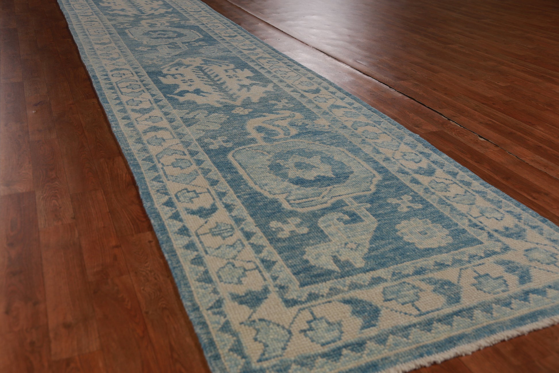 Vegetable Dye Blue Oushak Turkish Runner Rug 3x19