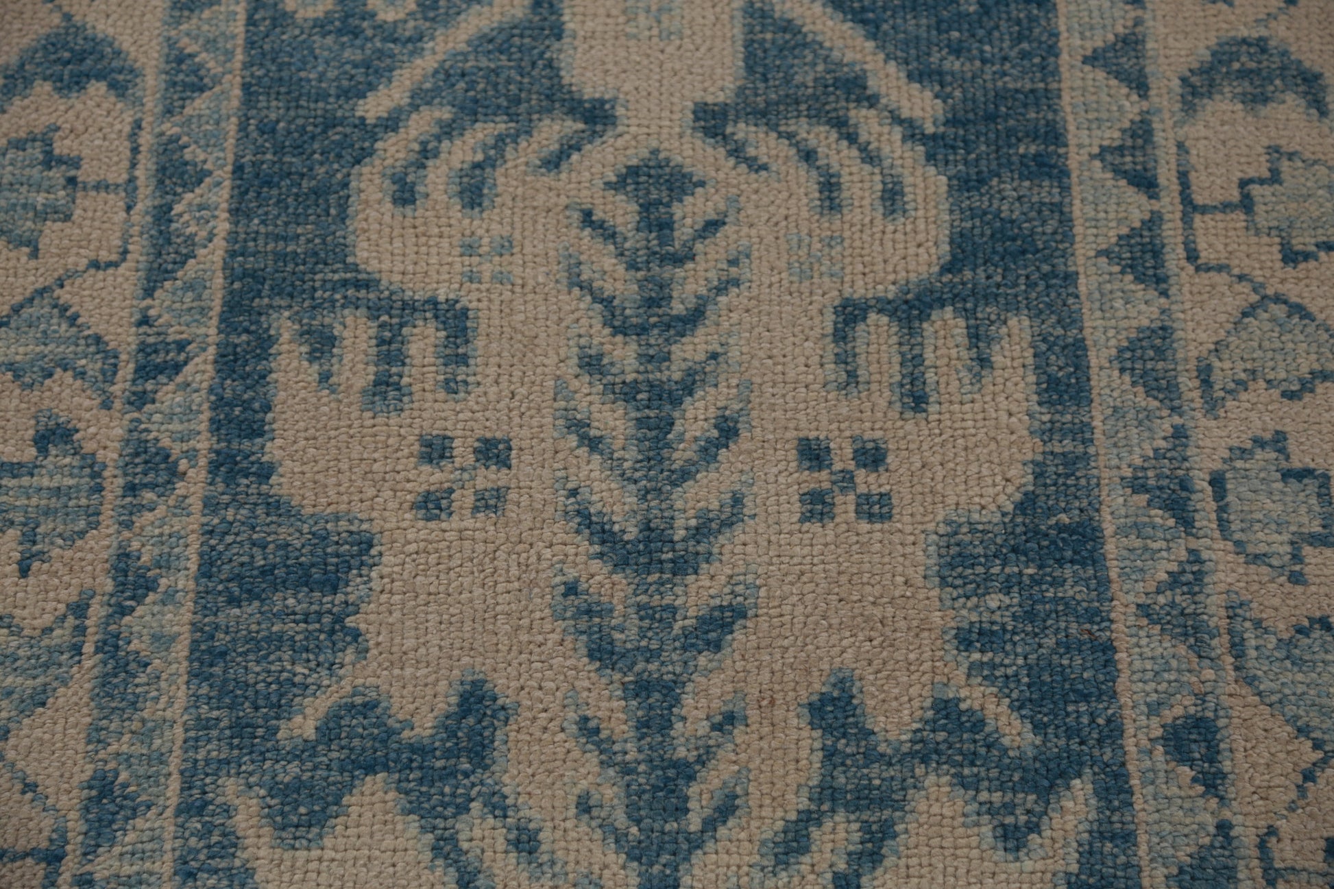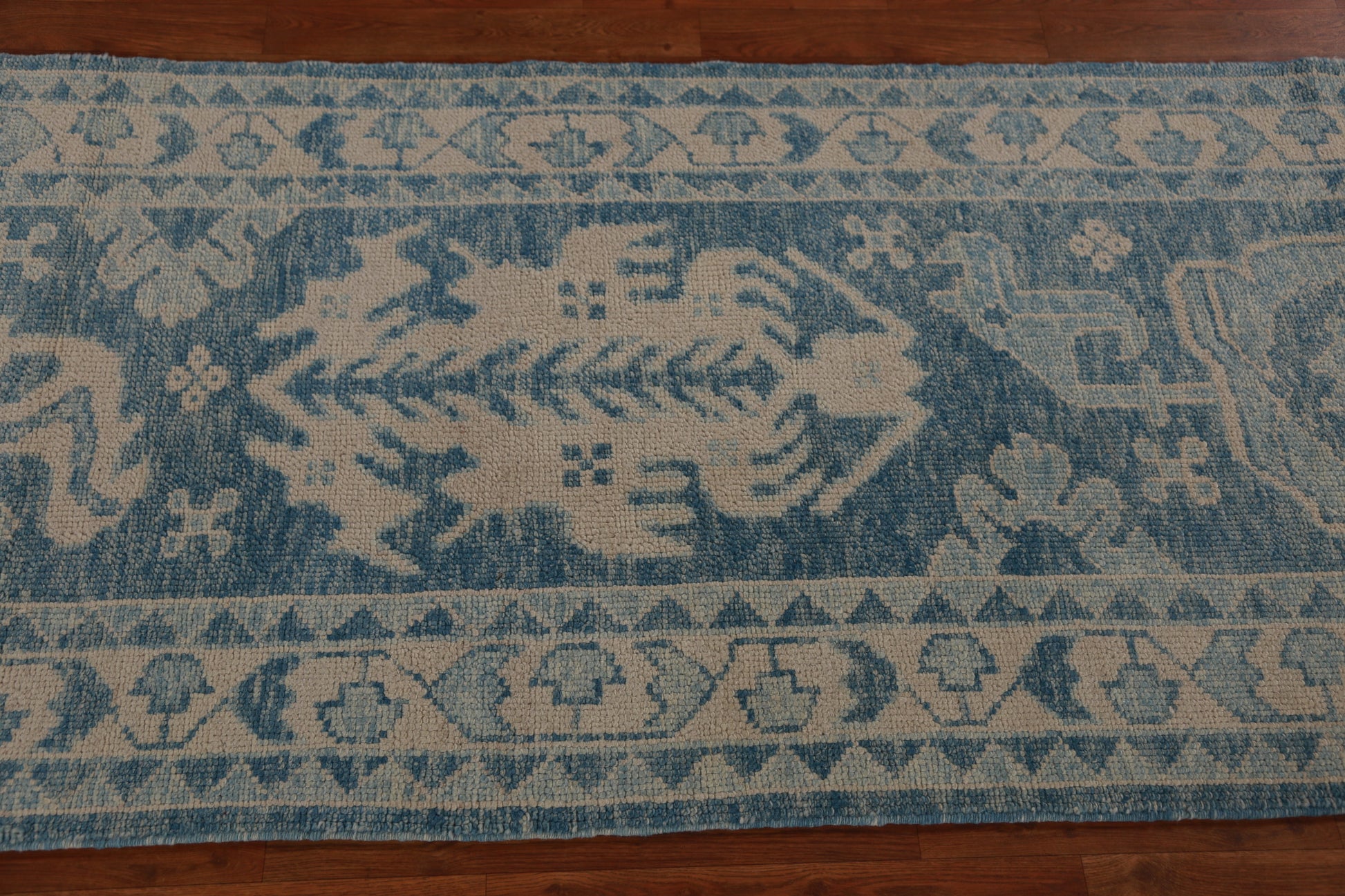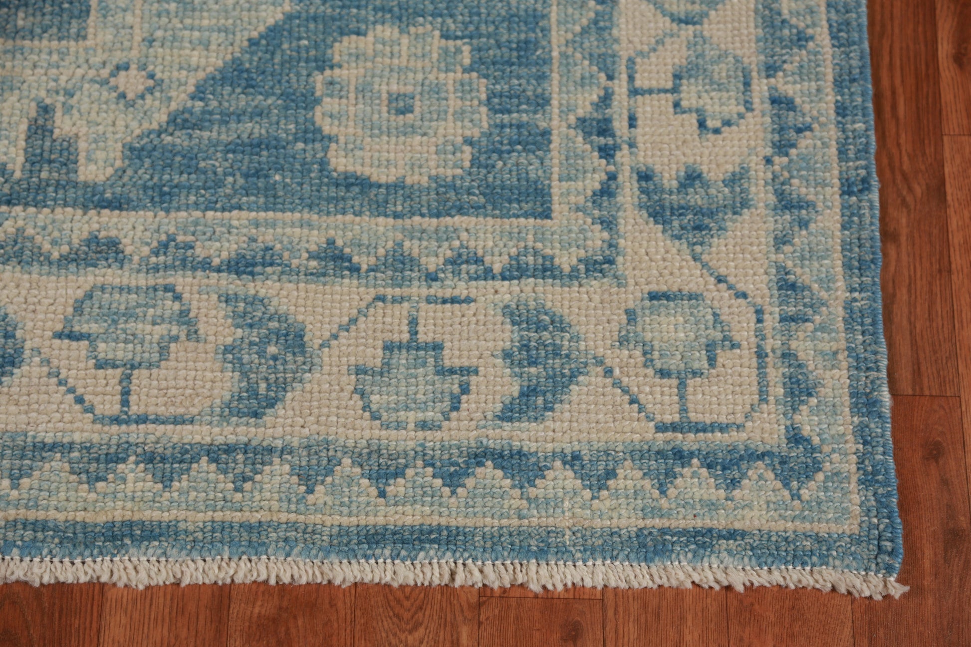 Vegetable Dye Blue Oushak Turkish Runner Rug 3x19
