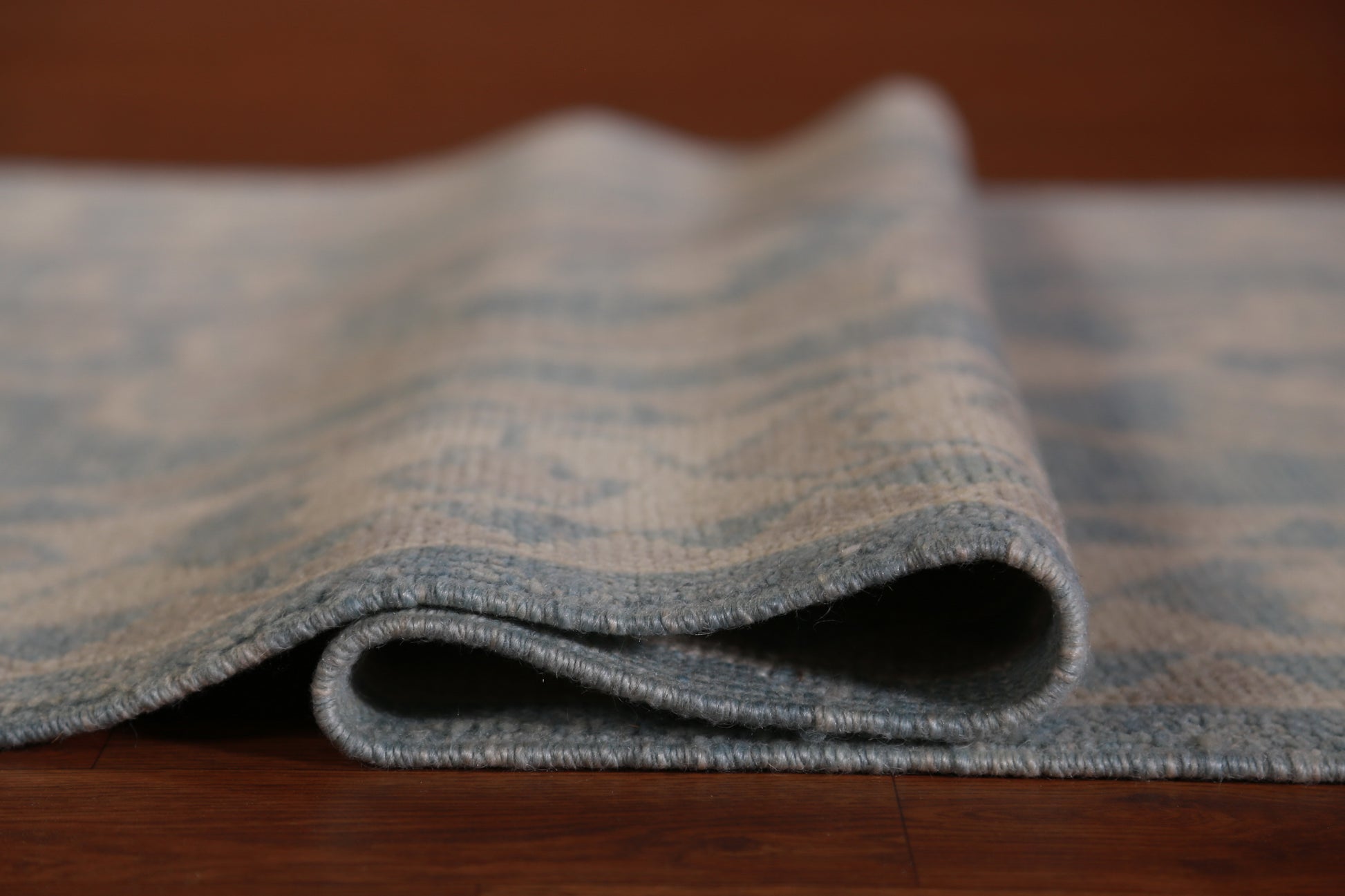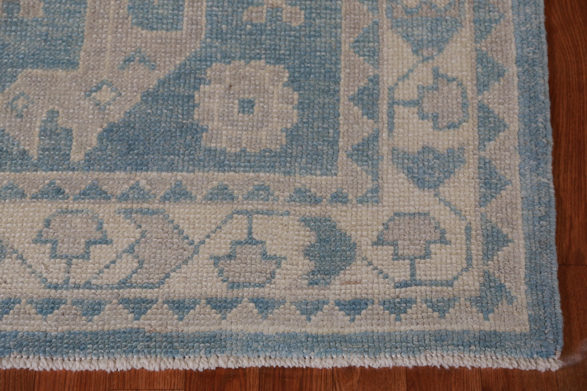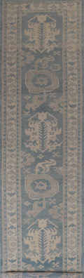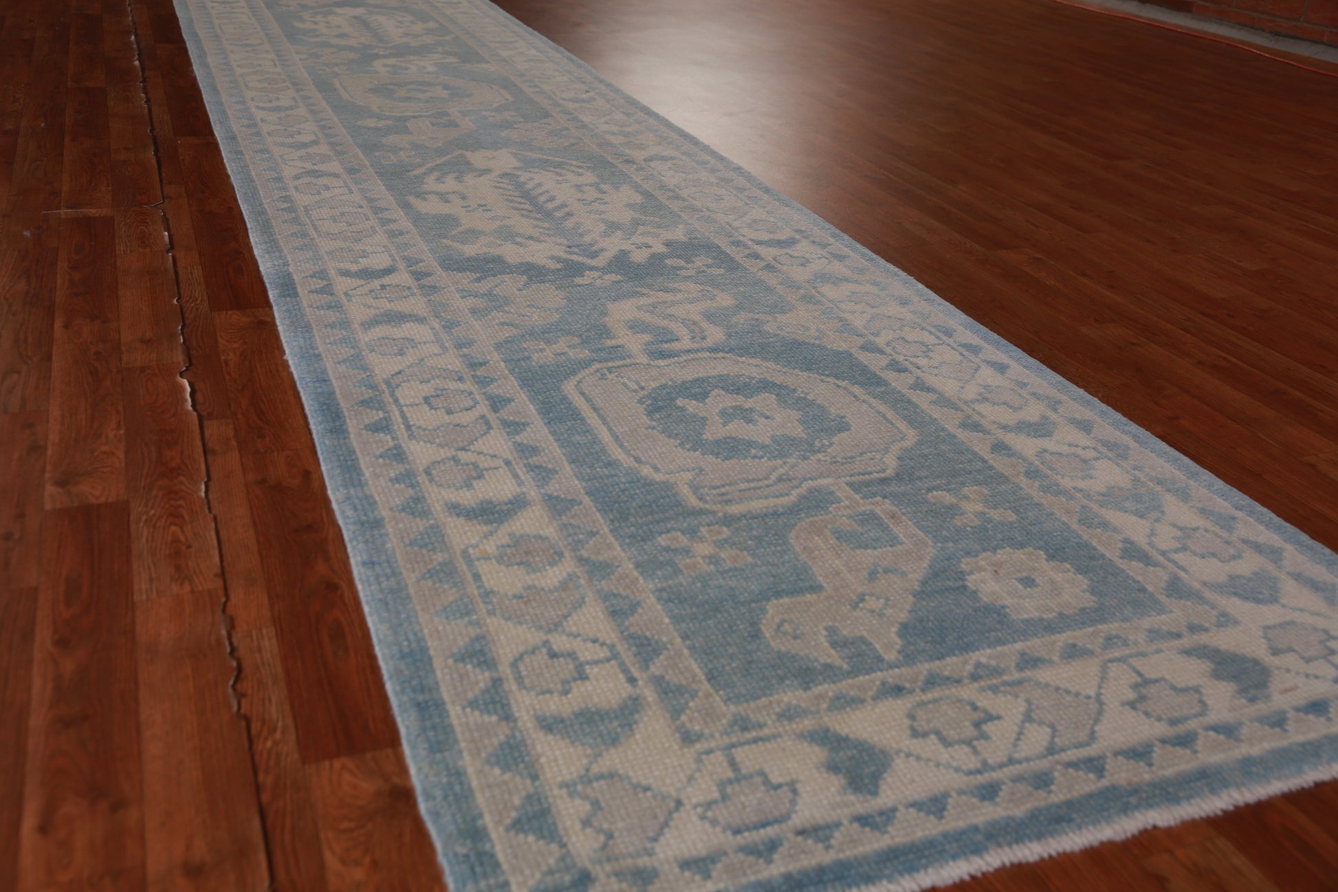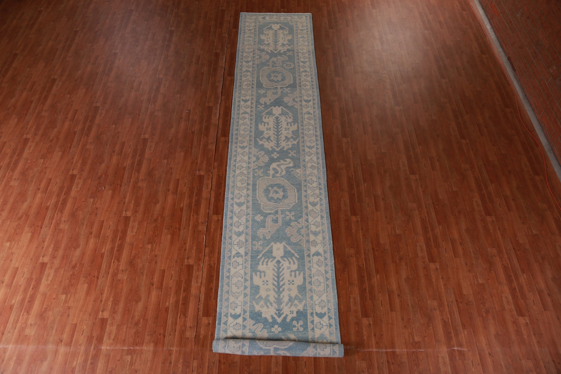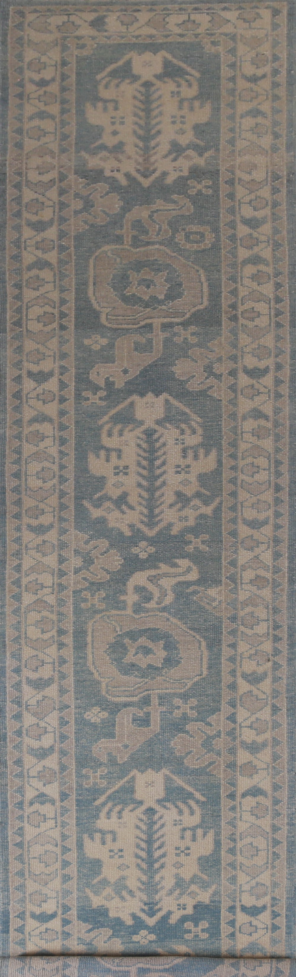 Vegetable Dye Blue Oushak Turkish Runner Rug 3x19