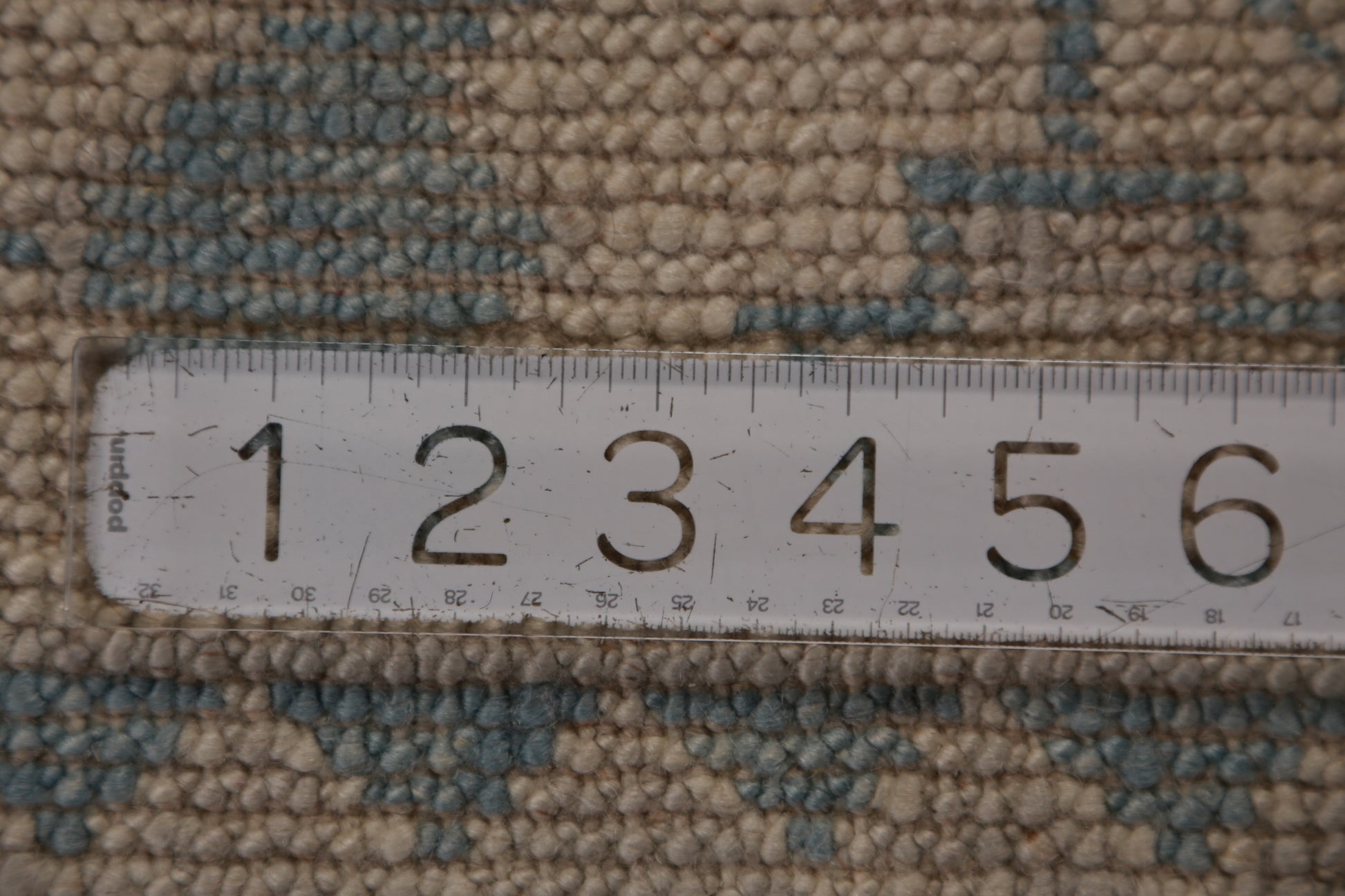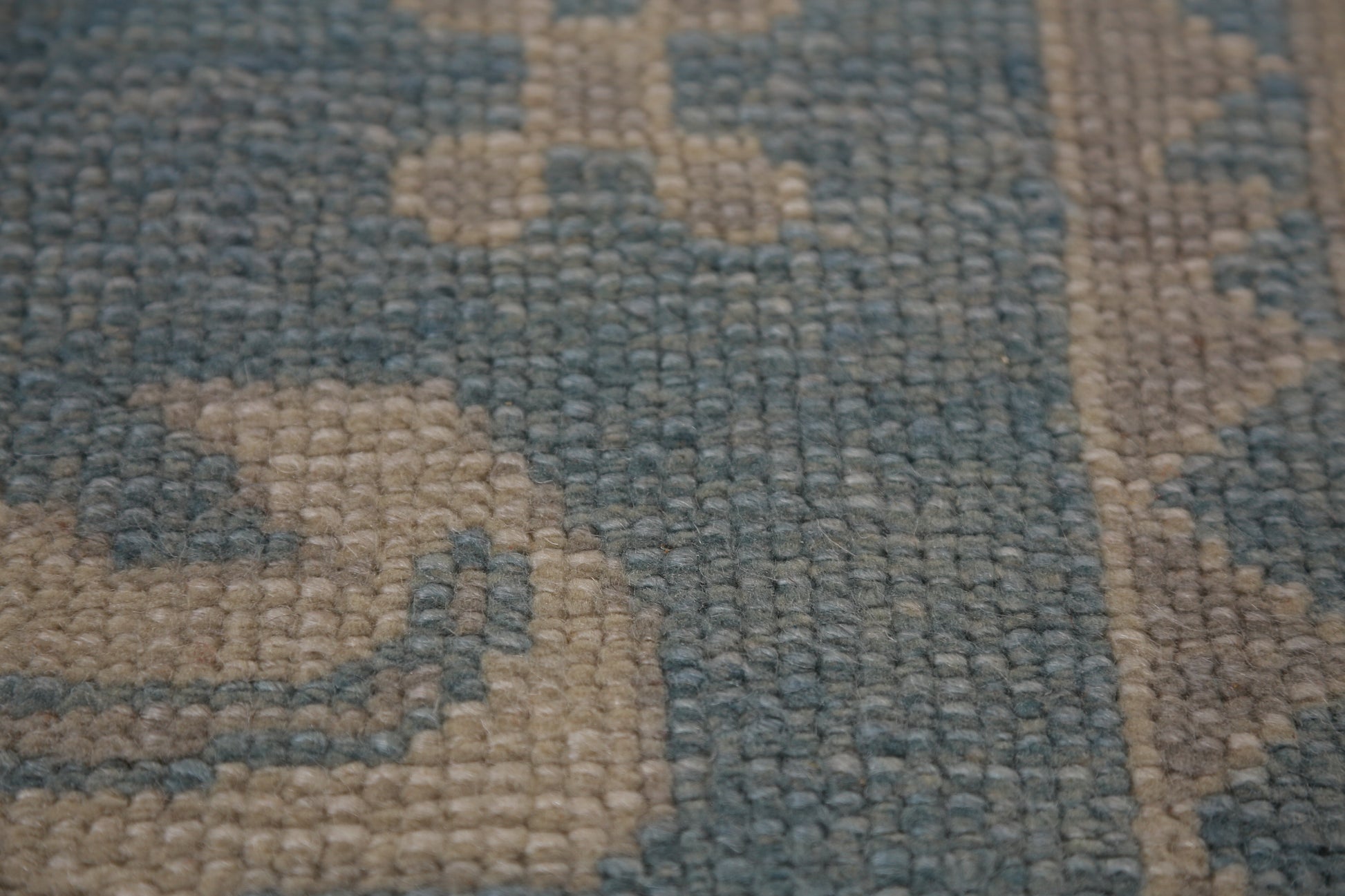 A Beautiful Genuine Turkey Oushak rug is Hand Knotted by skillful weavers in Turkey with 100% Wool Material. This rug is in New, First Quality condition. dimensions are 18' 10'' X 3' 5'' in foot and 574 X 104 in centimeter. the primary color is Navy Blue & Blues.
