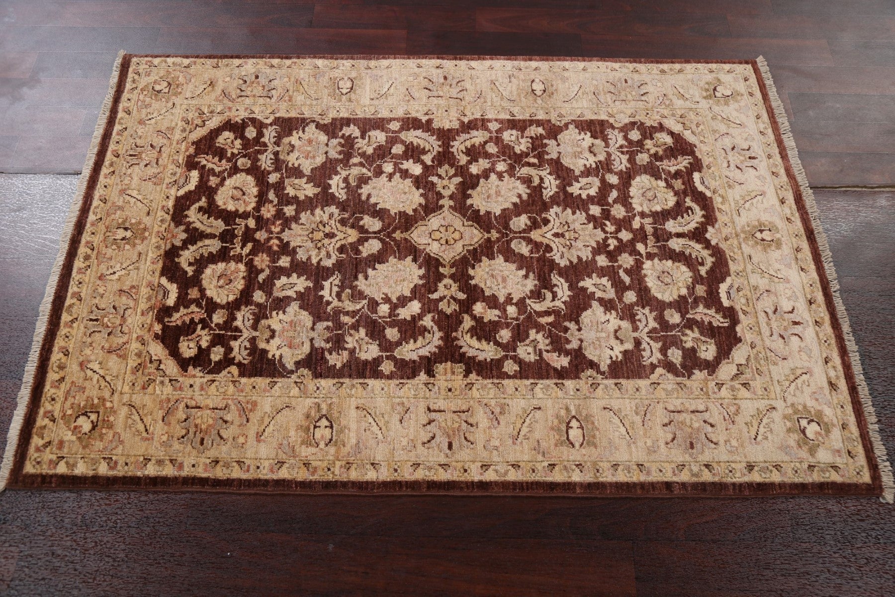 Vegetable Dye Brown Chobi Peshawar Handmade Wool Rug 3x5