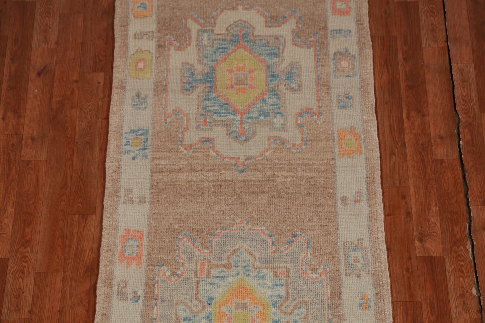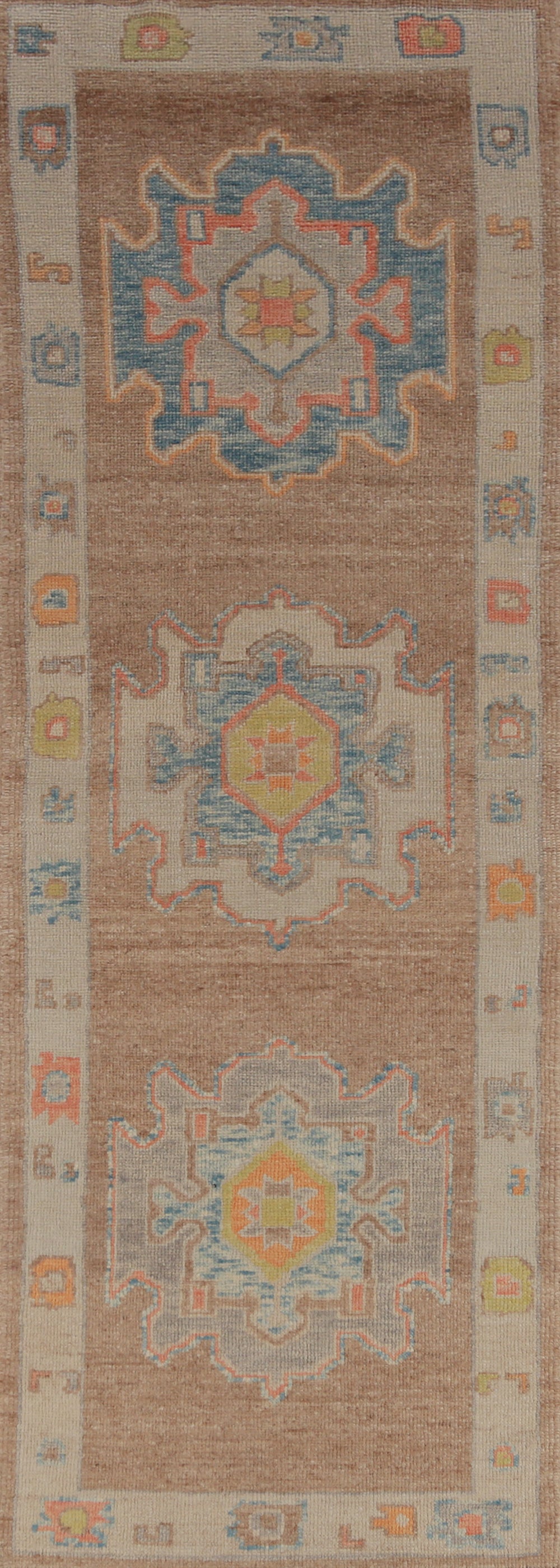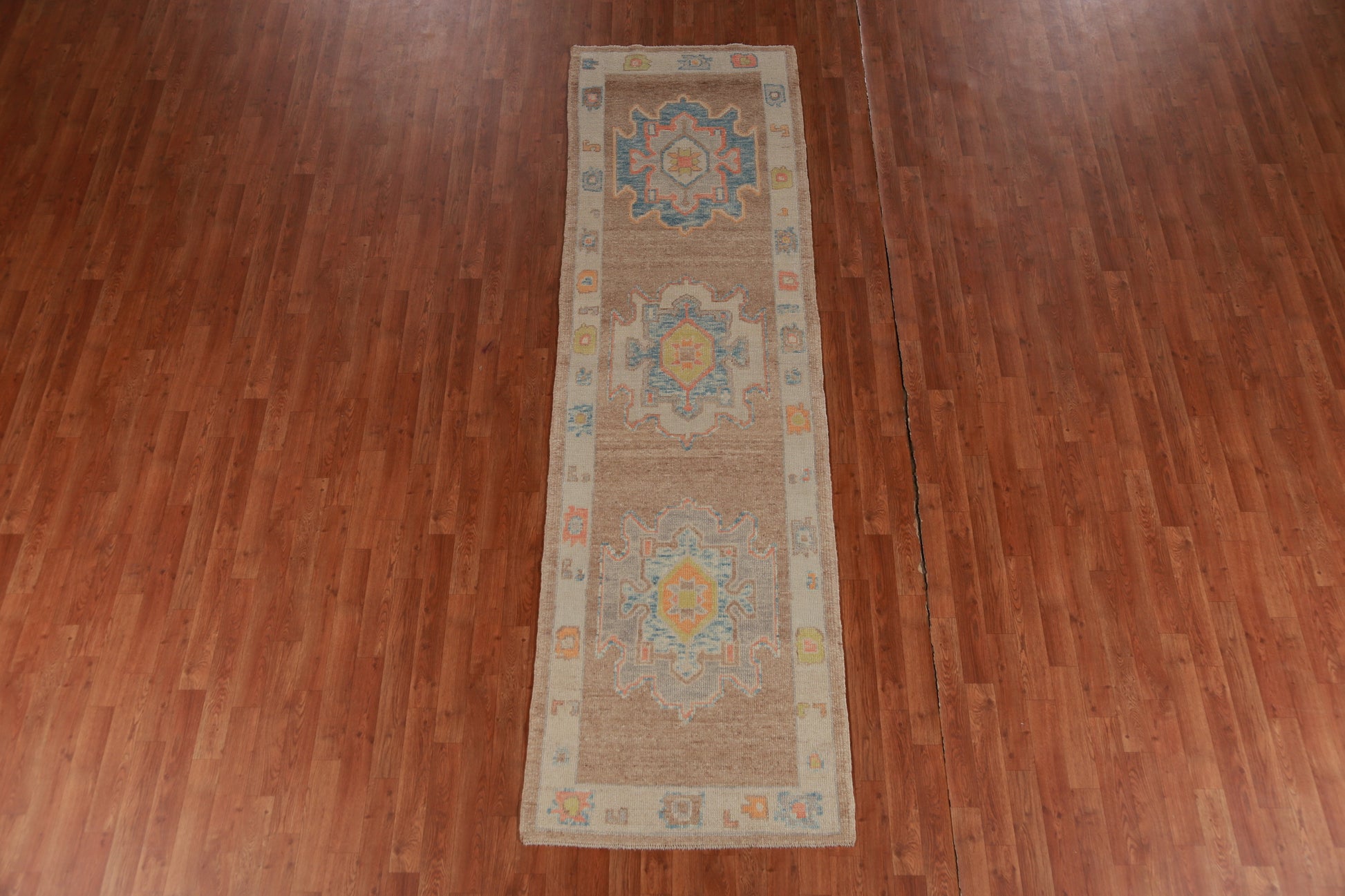 Vegetable Dye Brown Oushak Turkish Runner Rug 3x10