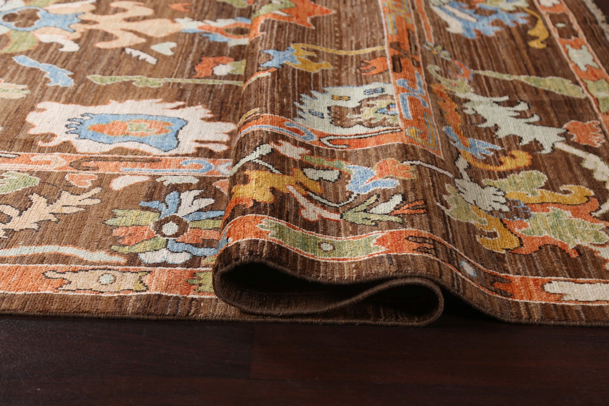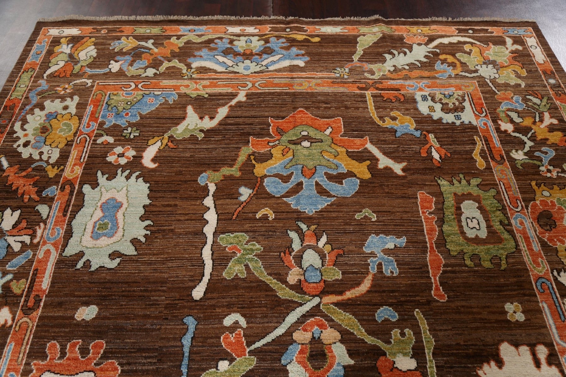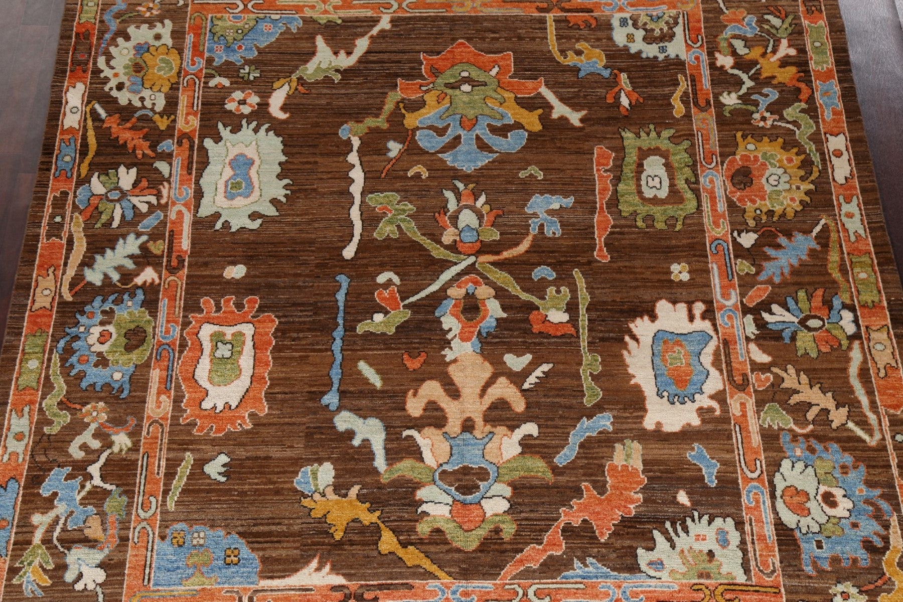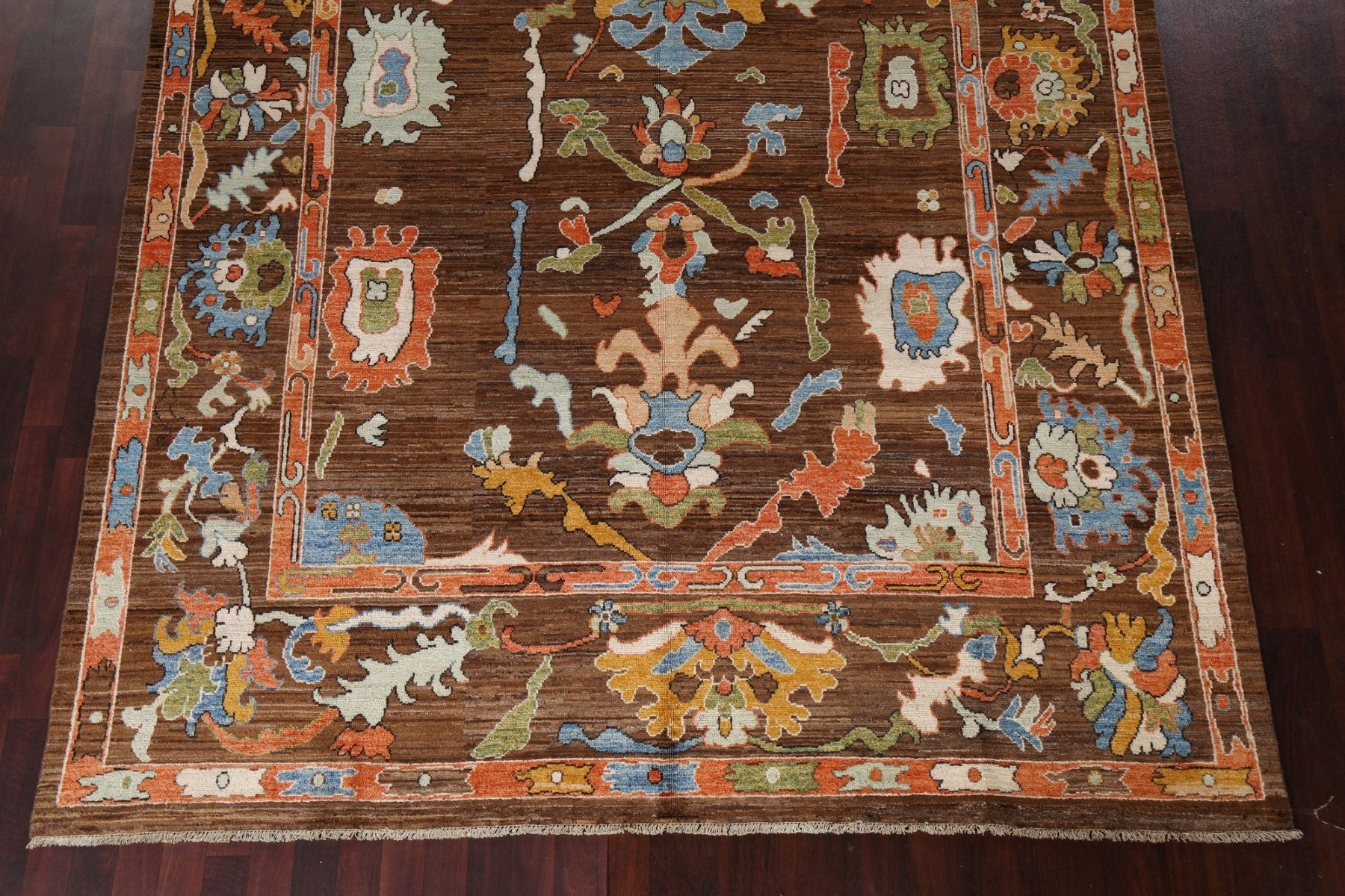 A Beautiful Genuine Pakistan Ziegler rug is Hand Knotted by skillful weavers in Pakistan with 100% Wool Material. This rug is in New, First Quality condition. dimensions are 9' 7'' X 8' 0'' in foot and 292 X 244 in centimeter. the primary color is Brown.