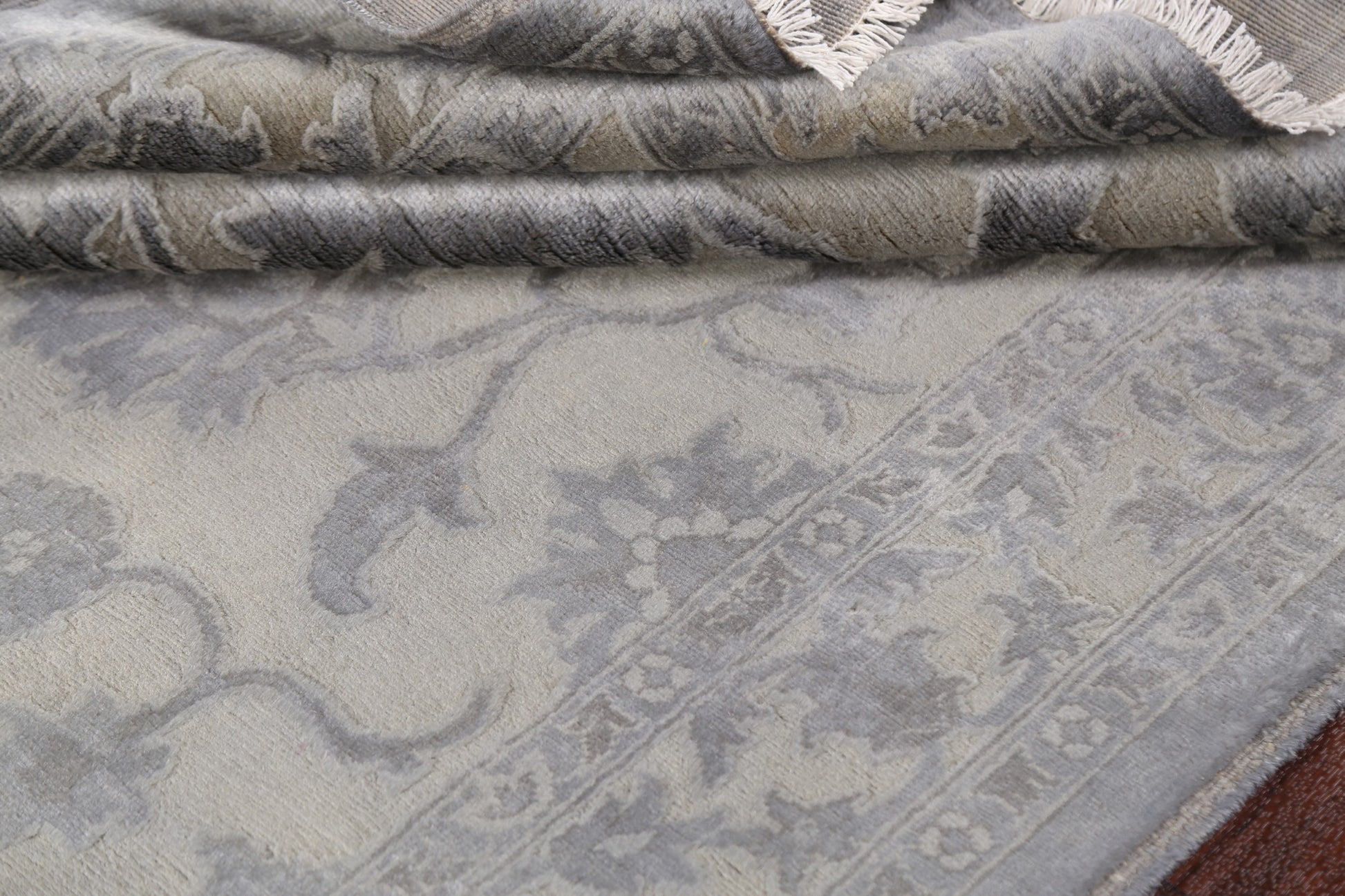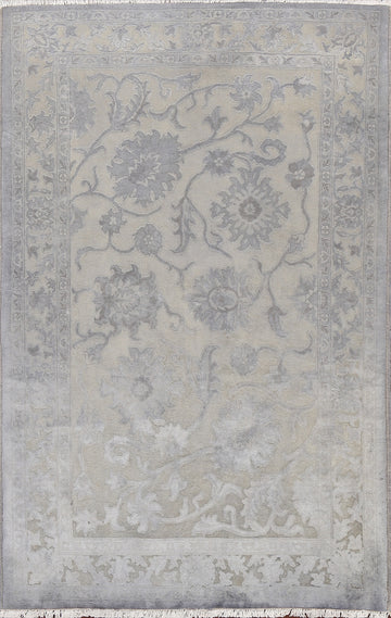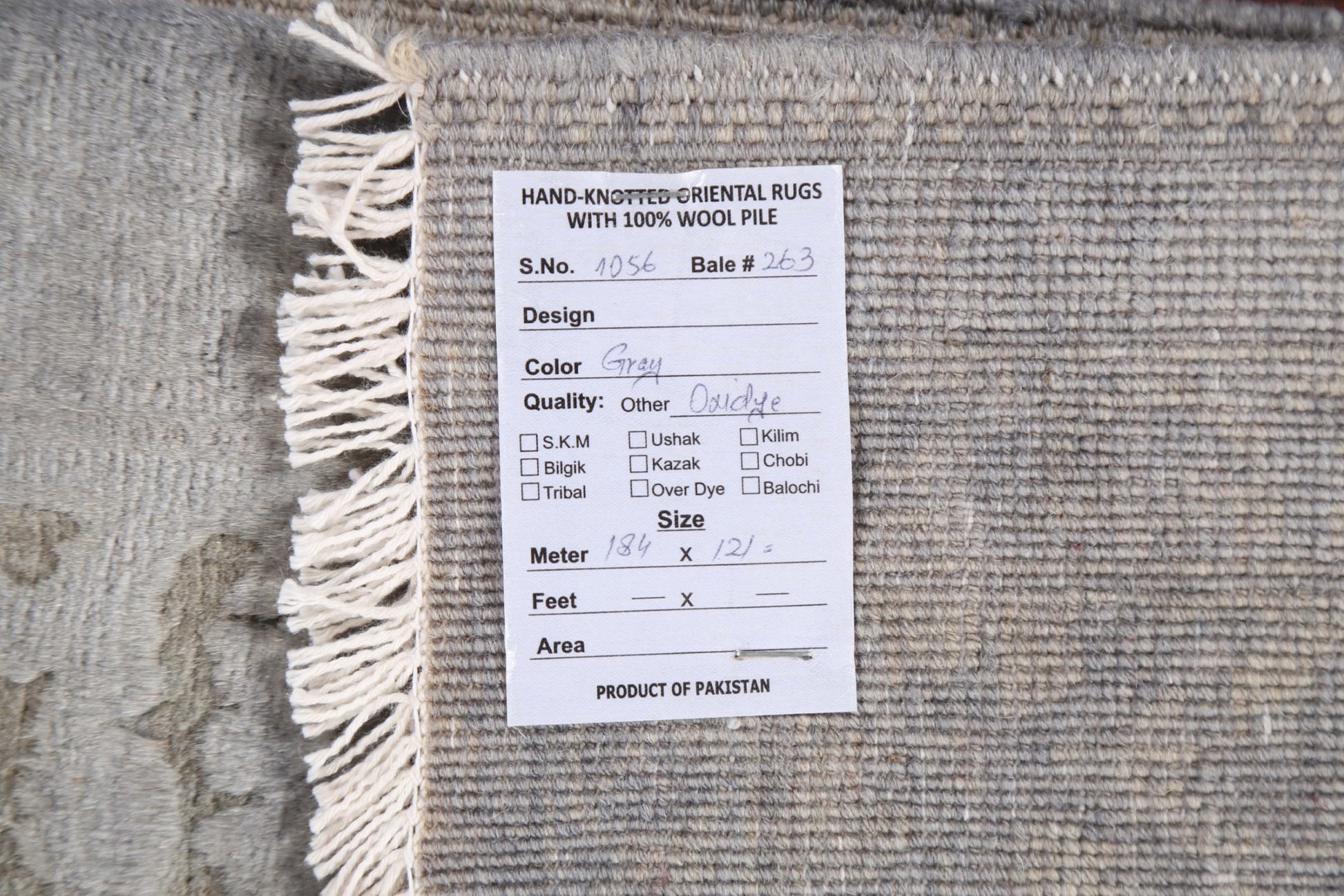 A Beautiful Genuine Pakistan Oushak-Chobi rug is Hand Knotted by skillful weavers in Pakistan with Manchester Wool Material. This rug is in New, First Quality condition. dimensions are 6' 1'' X 4' 0'' in foot and 185 X 122 in centimeter. the primary color is Greys & Charcoal.