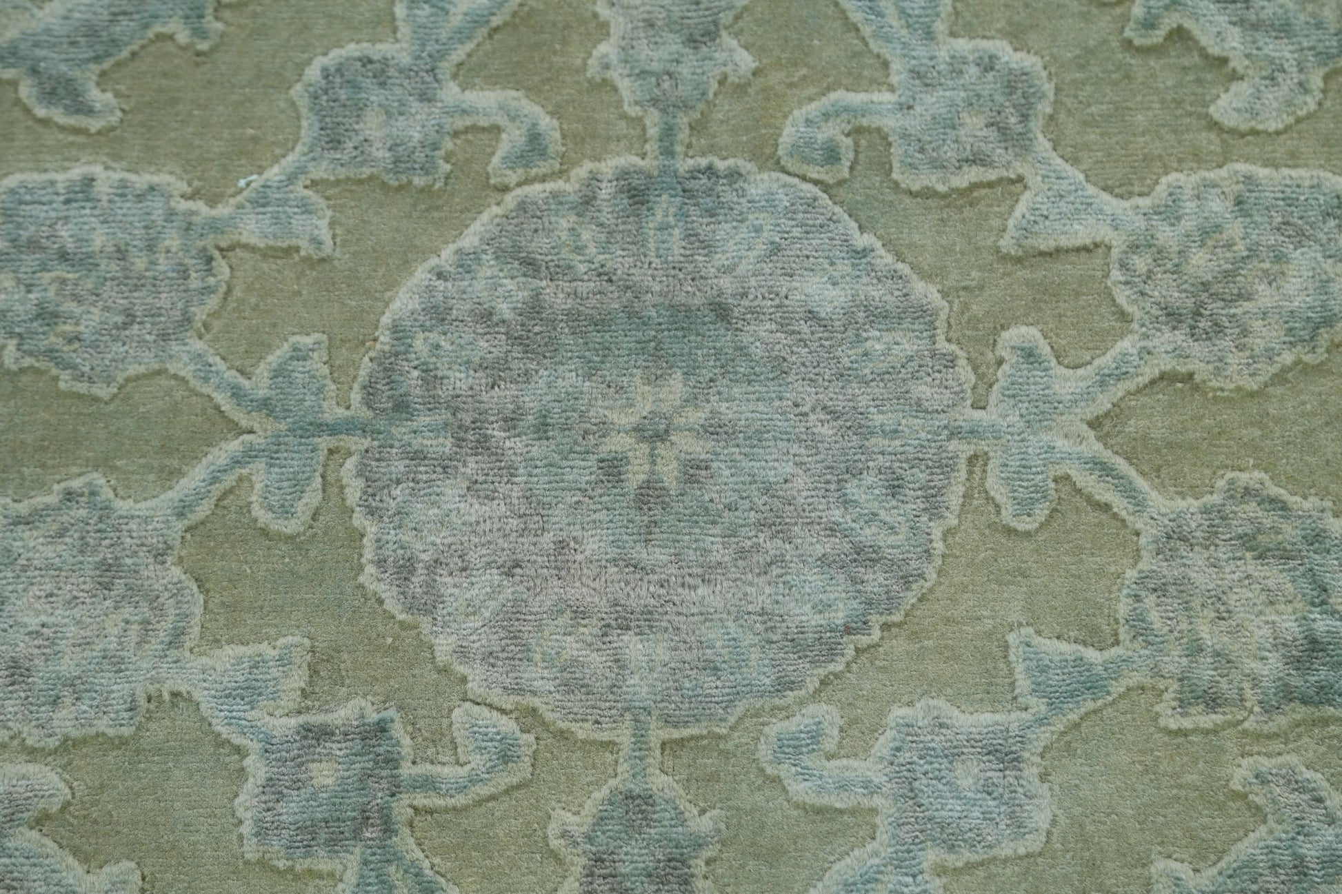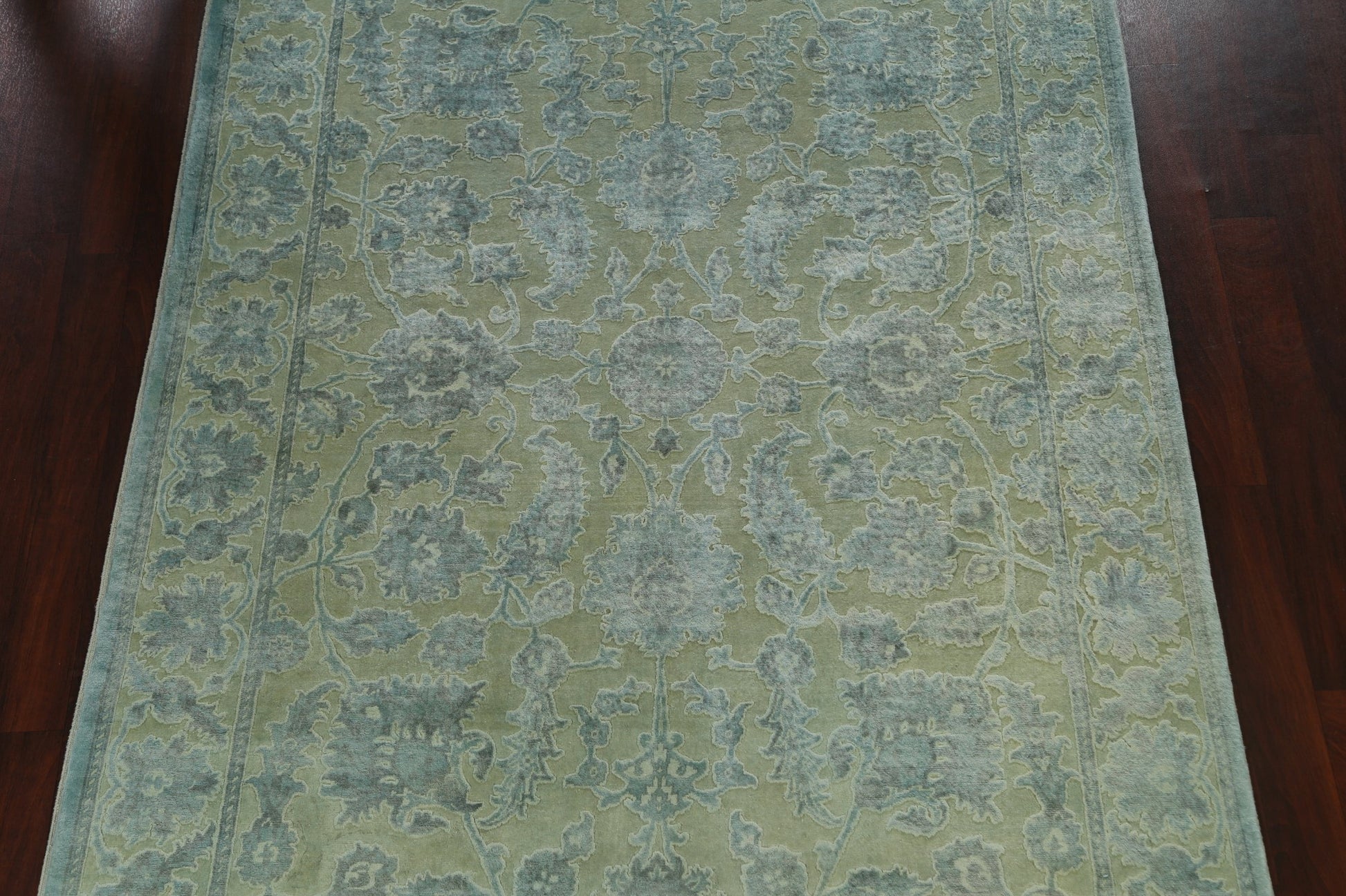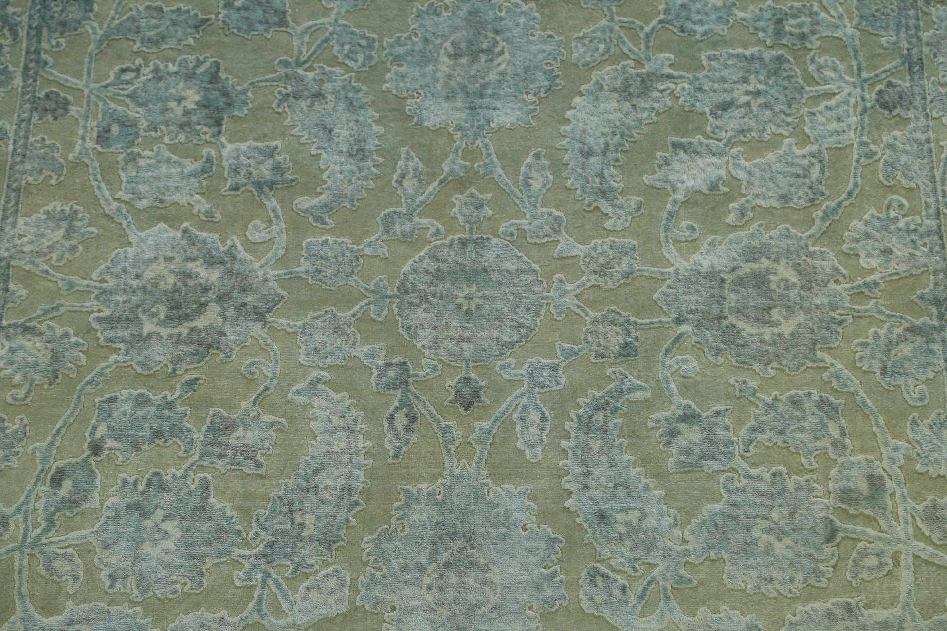 Vegetable Dye Carved Green Oushak Chobi Oriental Area Rug 6x10