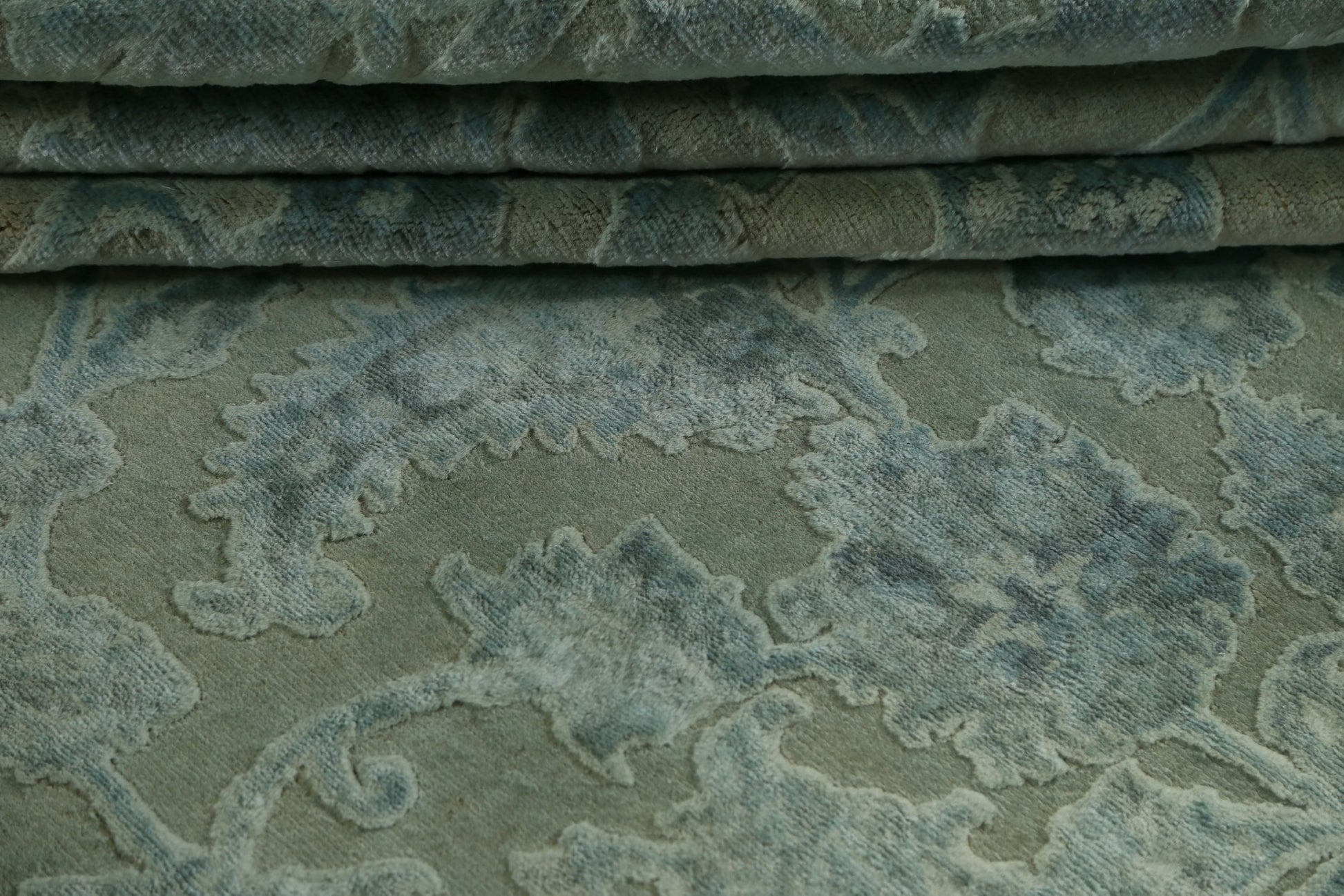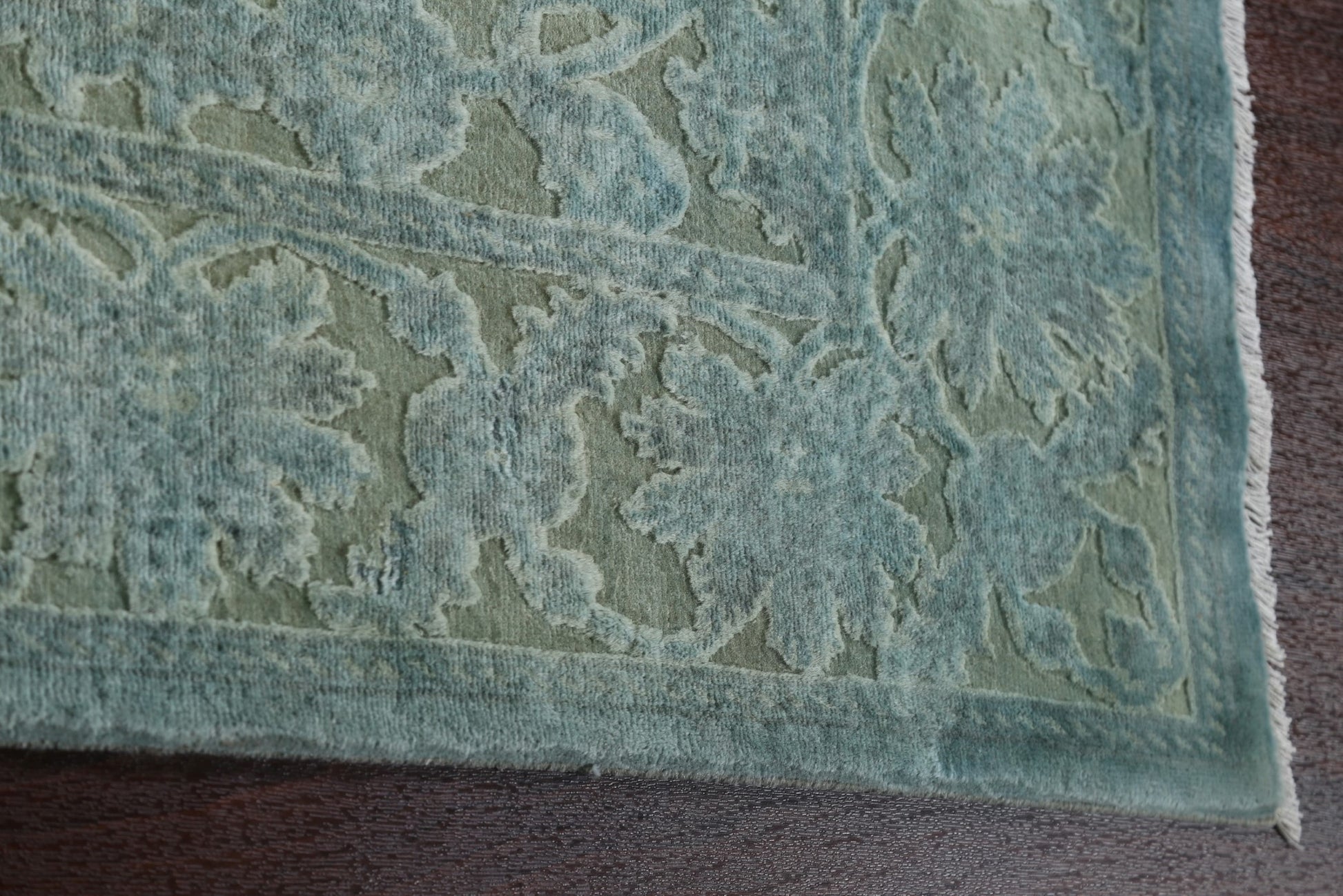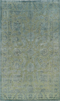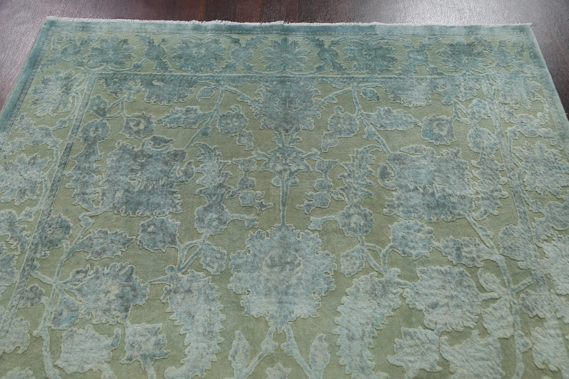 Vegetable Dye Carved Green Oushak Chobi Oriental Area Rug 6x10
