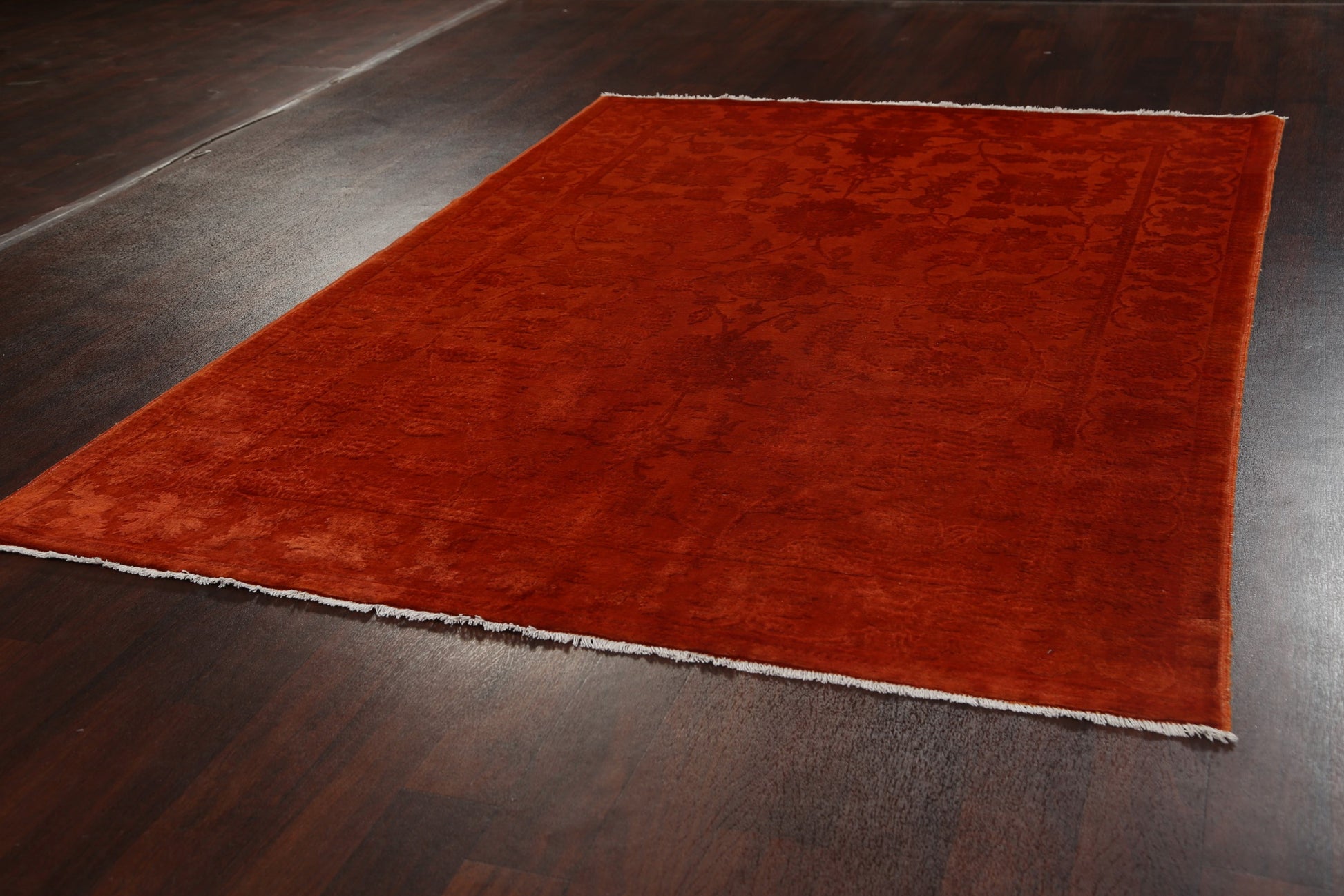 Vegetable Dye Carved Orange Oushak Chobi Oriental Area Rug 6x9