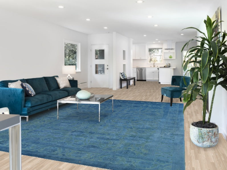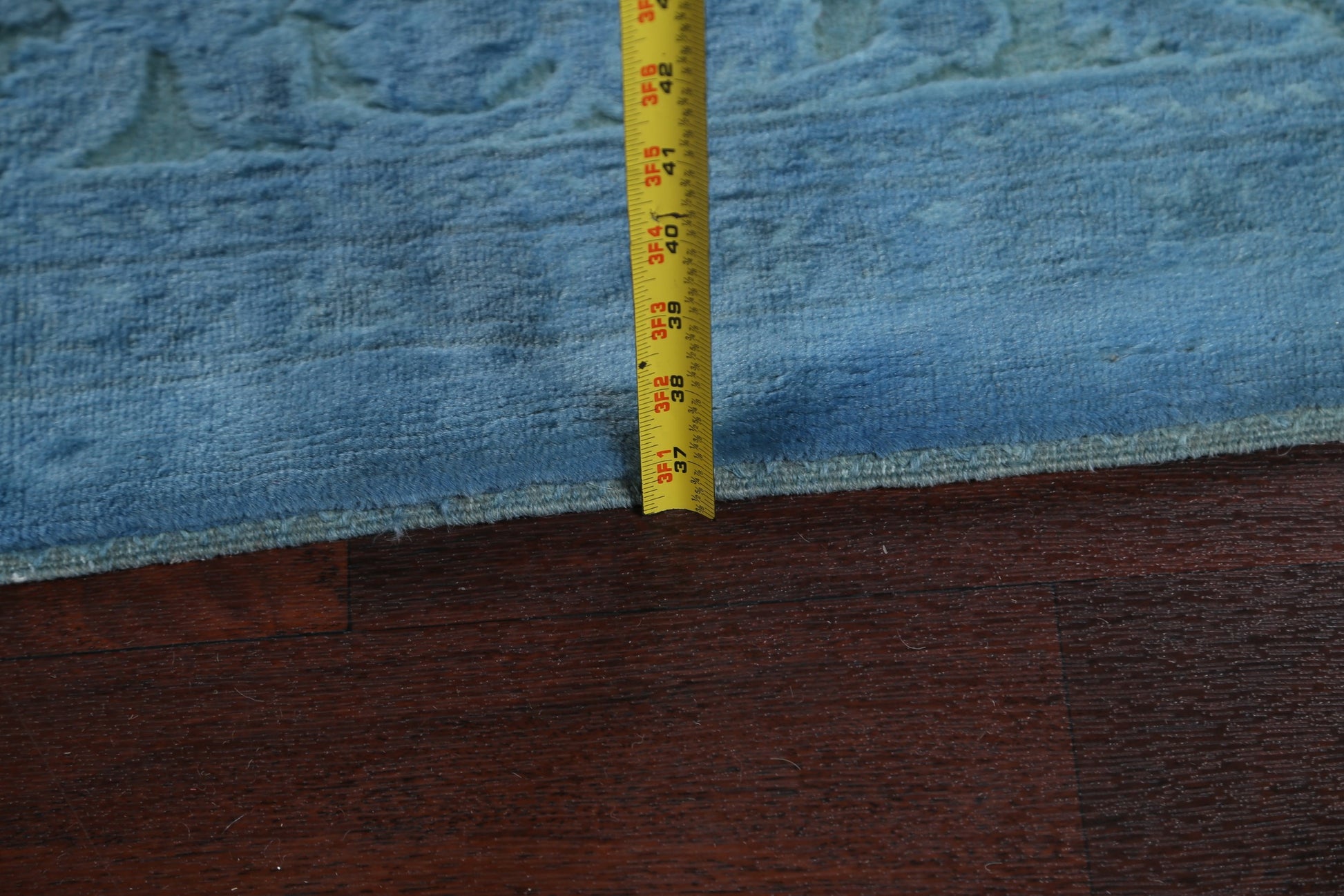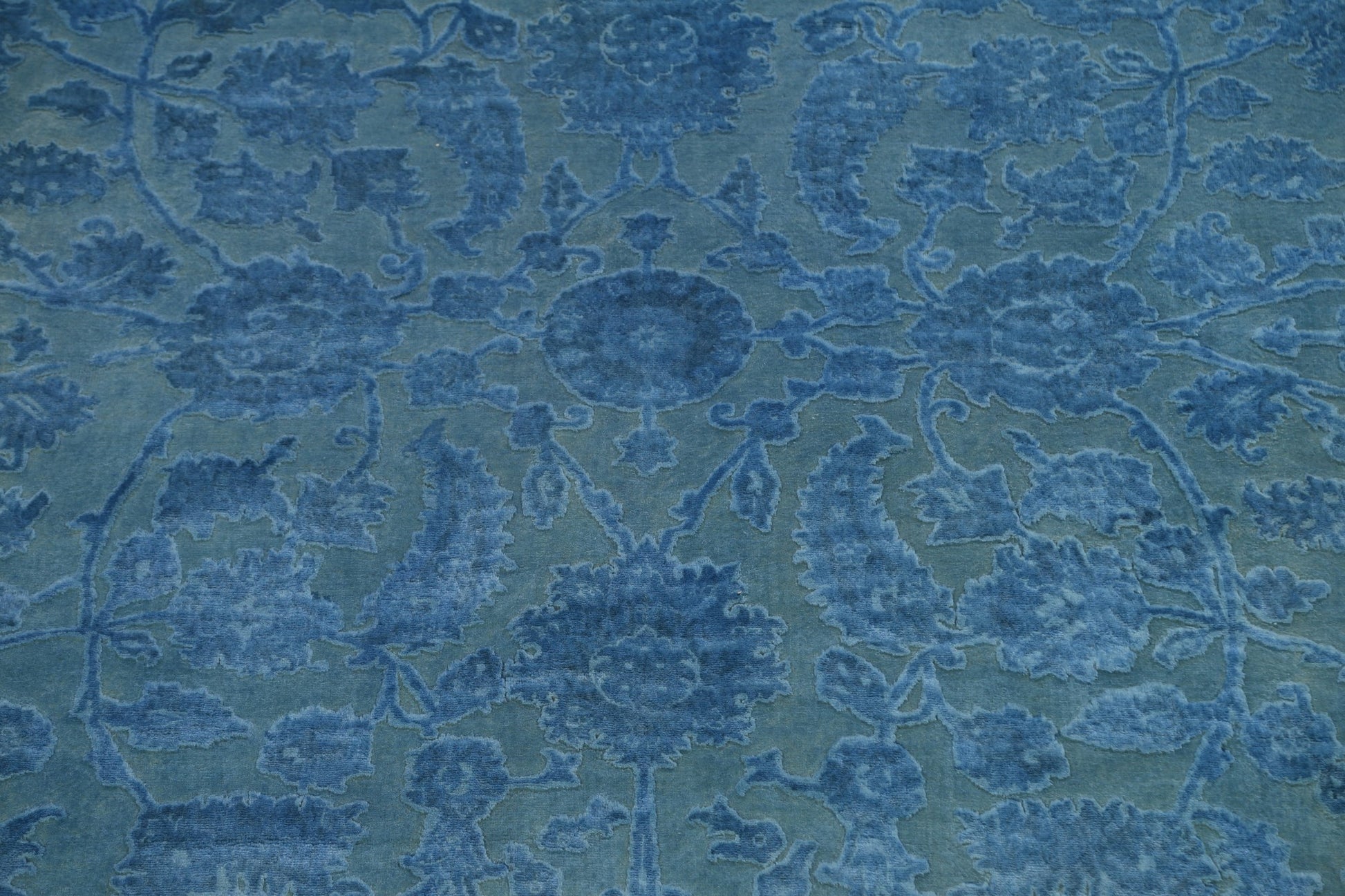 A Beautiful Genuine Pakistan Chobi-Peshawar rug is Hand Knotted by skillful weavers in Pakistan with 100% Wool Material. This rug is in New, First Quality condition. dimensions are 11' 6'' X 9' 0'' in foot and 351 X 274 in centimeter. the primary color is Navy Blue & Blues.