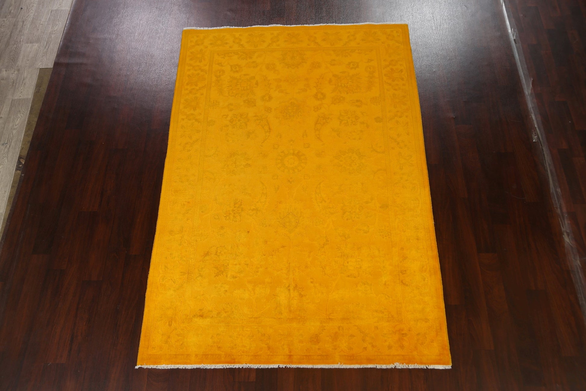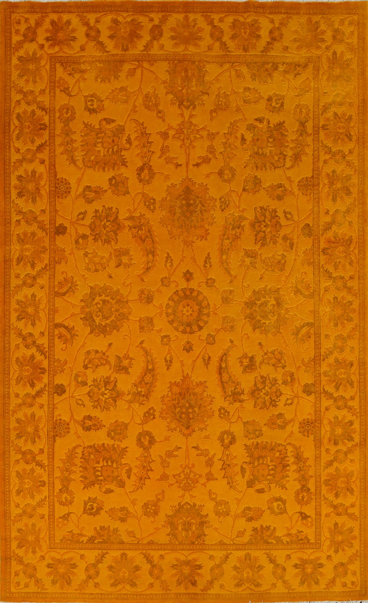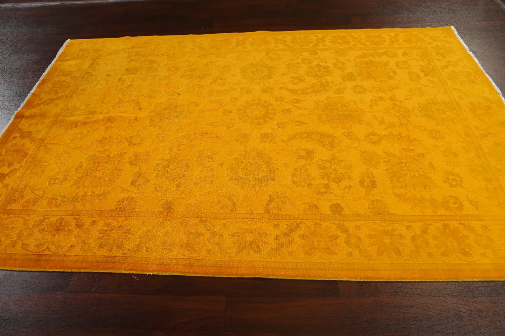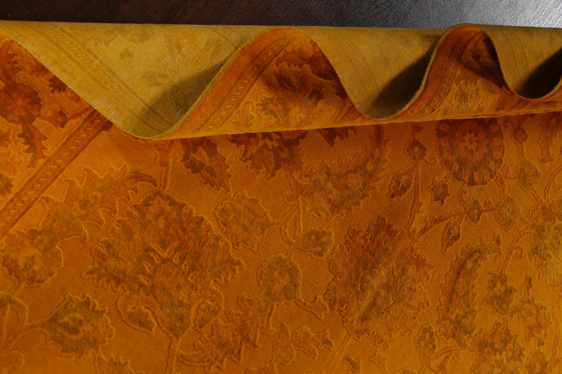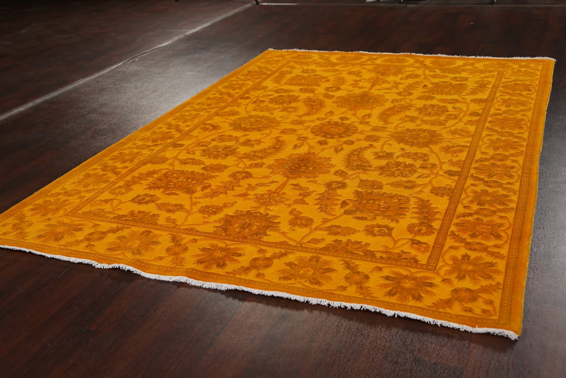 Vegetable Dye Carved Yellow Oushak Chobi Oriental Area Rug 6x9