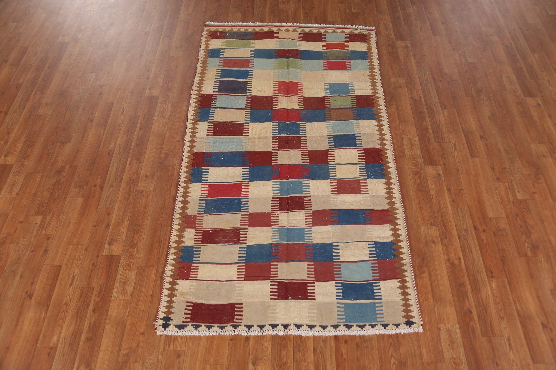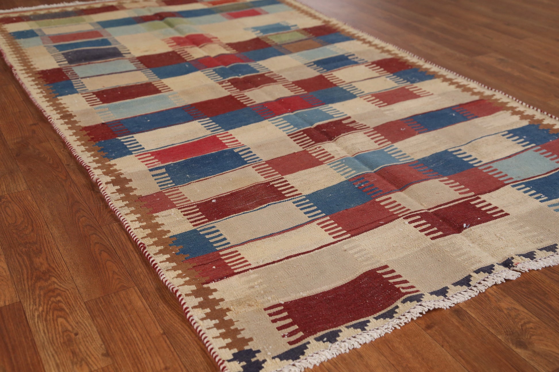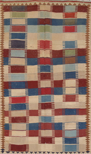 Vegetable Dye Checkered Kilim Persian Rug 4x7