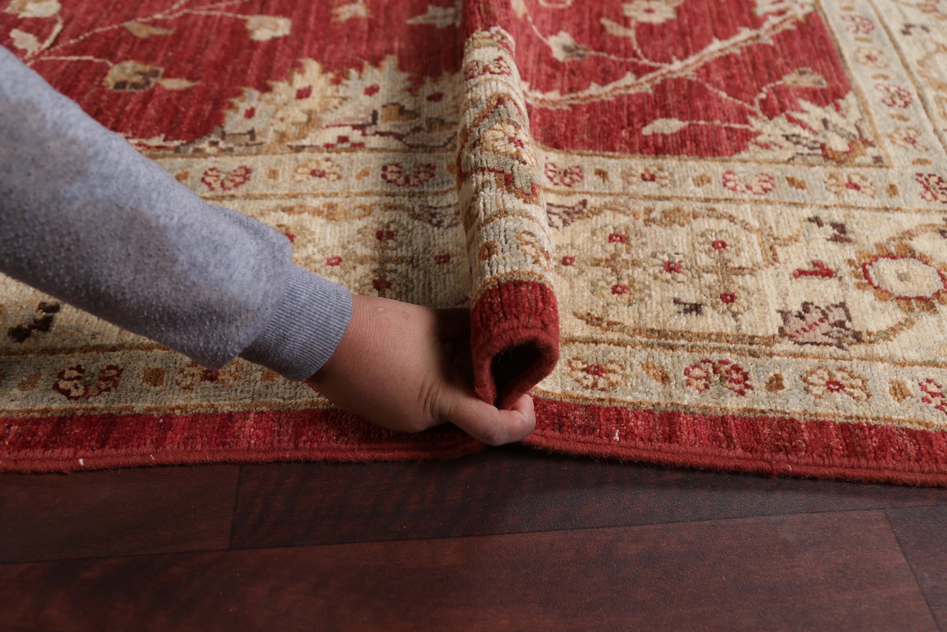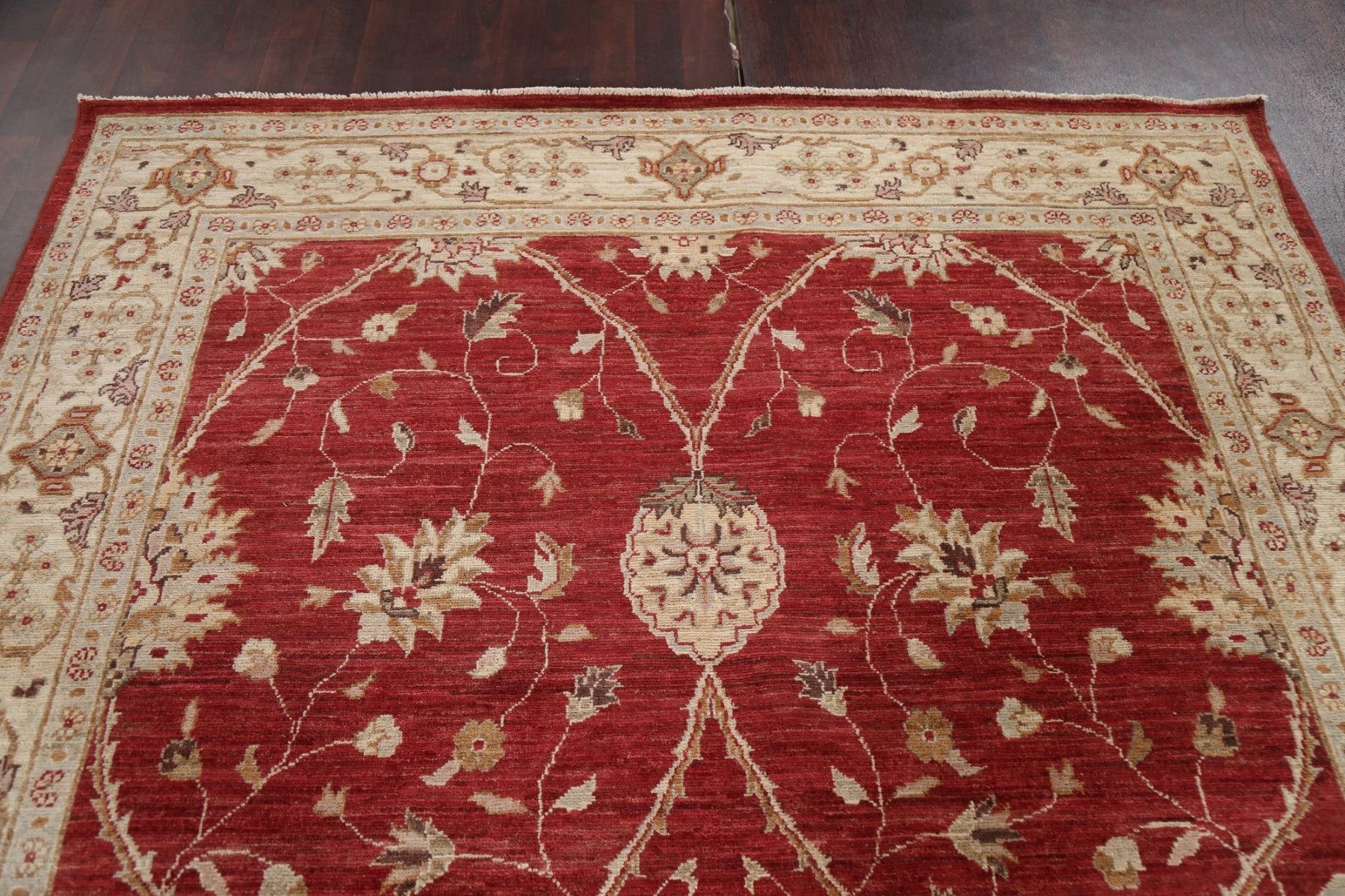 A Beautiful Genuine Pakistan Chobi-Peshawar rug is Hand Knotted by skillful weavers in Pakistan with 100% Wool Material. This rug is in New, First Quality condition. dimensions are 9' 8'' X 6' 8'' in foot and 295 X 203 in centimeter. the primary color is Red.