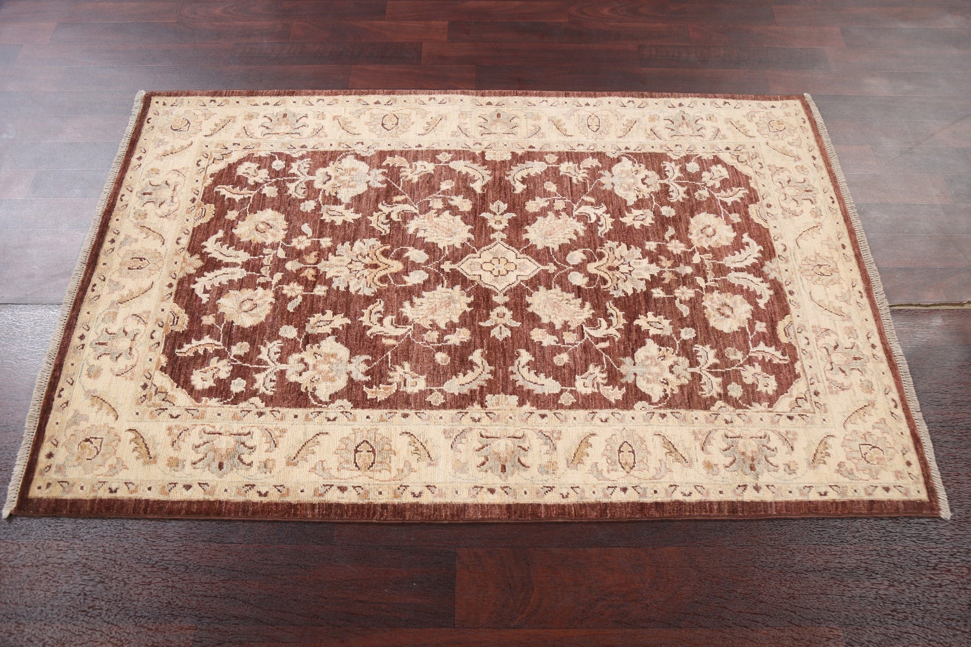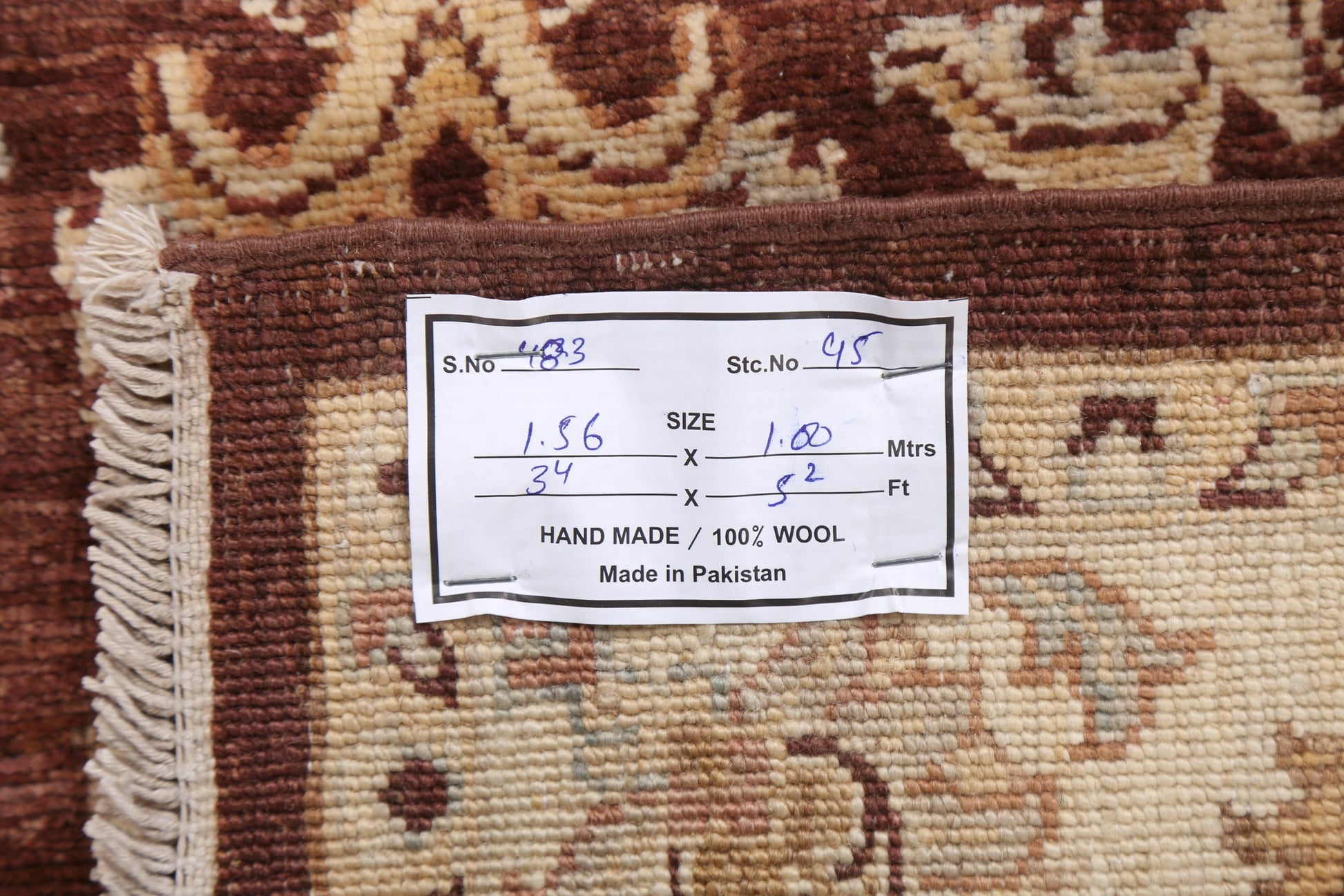 A Beautiful Genuine Pakistan Chobi-Peshawar rug is Hand Knotted by skillful weavers in Pakistan with 100% Wool Material. This rug is in New, First Quality condition. dimensions are 5' 2'' X 3' 4'' in foot and 157 X 102 in centimeter. the primary color is Brown.
