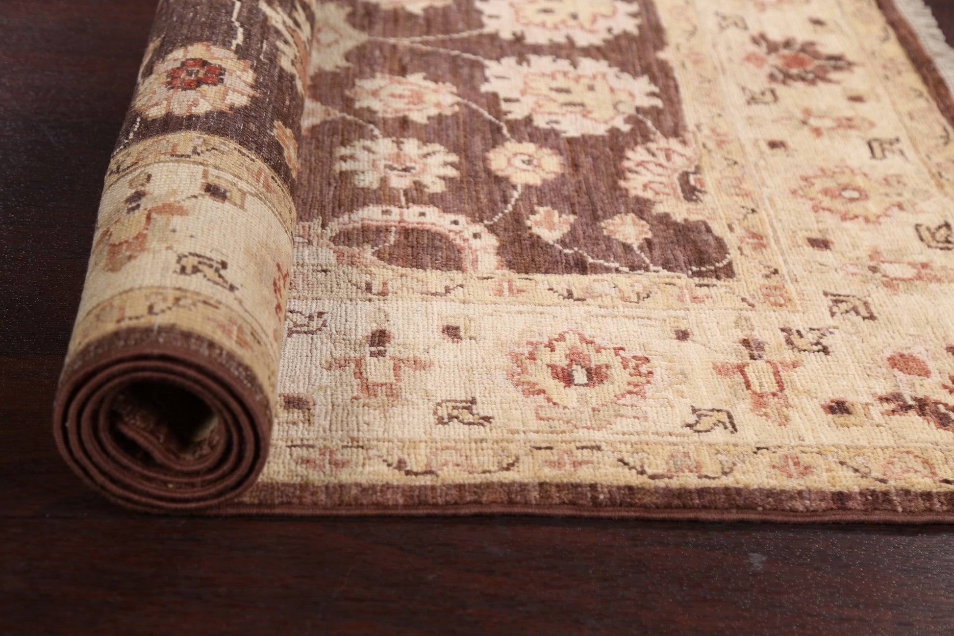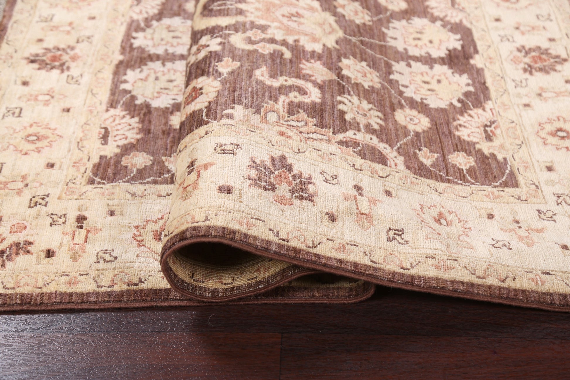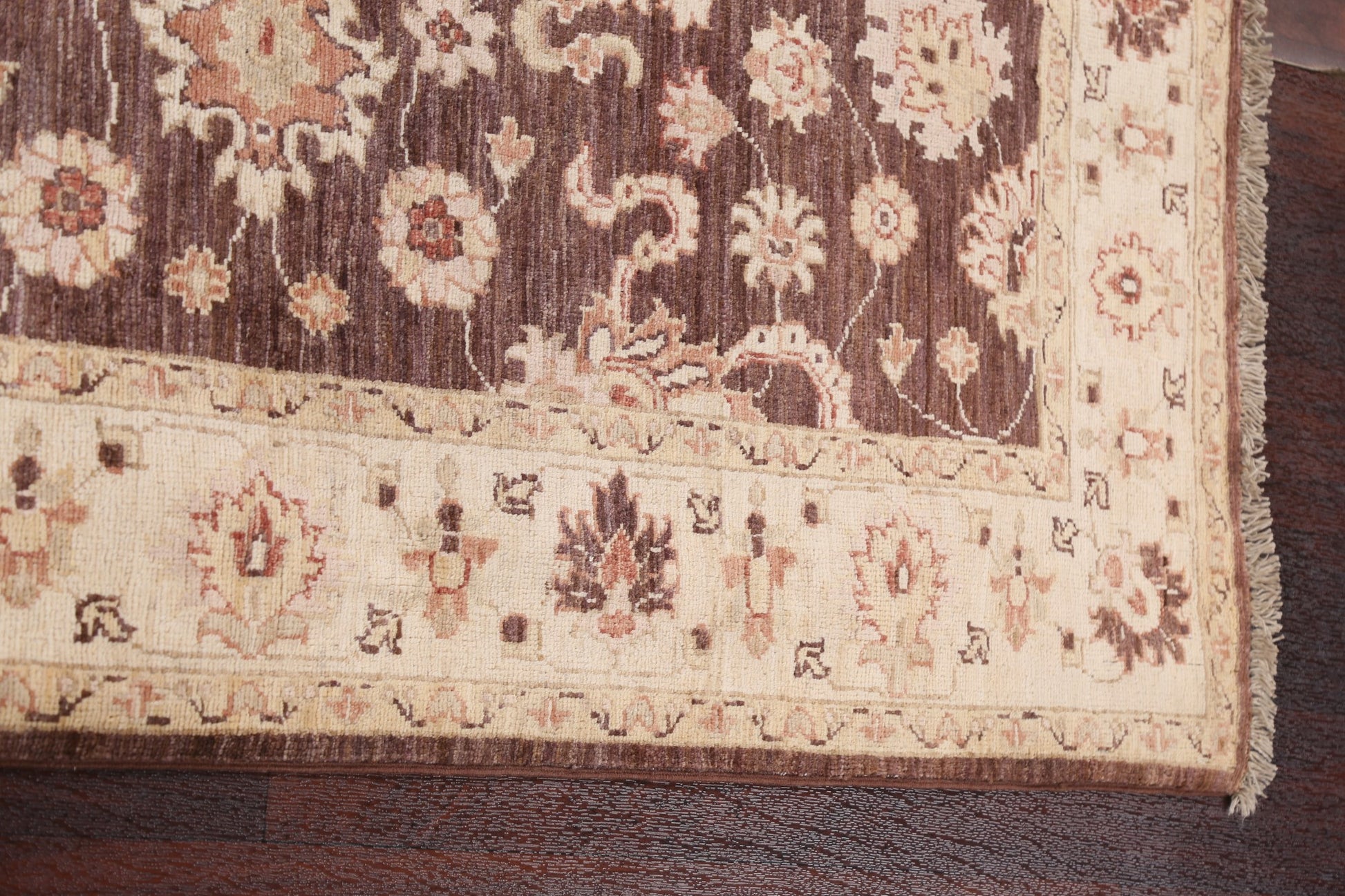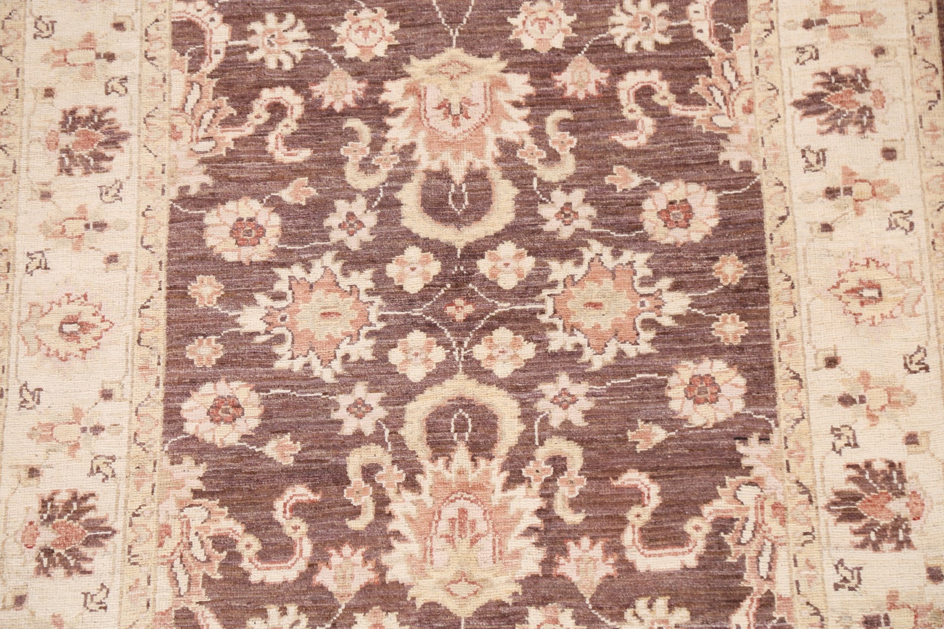 A Beautiful Genuine Pakistan Chobi-Peshawar rug is Hand Knotted by skillful weavers in Pakistan with 100% Wool Material. This rug is in New, First Quality condition. dimensions are 4' 10'' X 3' 5'' in foot and 147 X 104 in centimeter. the primary color is Brown.