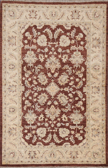 A Beautiful Genuine Pakistan Chobi-Peshawar rug is Hand Knotted by skillful weavers in Pakistan with 100% Wool Material. This rug is in New, First Quality condition. dimensions are 4' 8'' X 3' 1'' in foot and 142 X 94 in centimeter. the primary color is Brown.