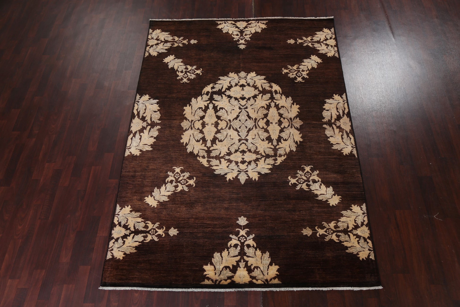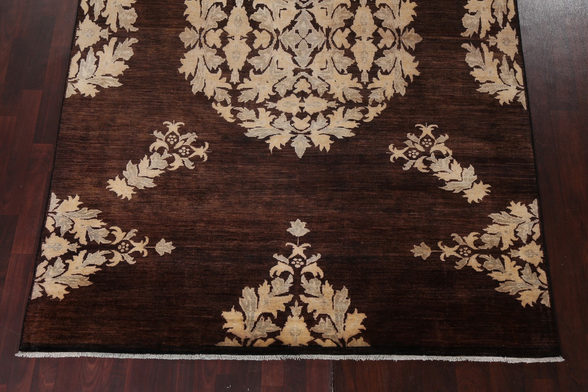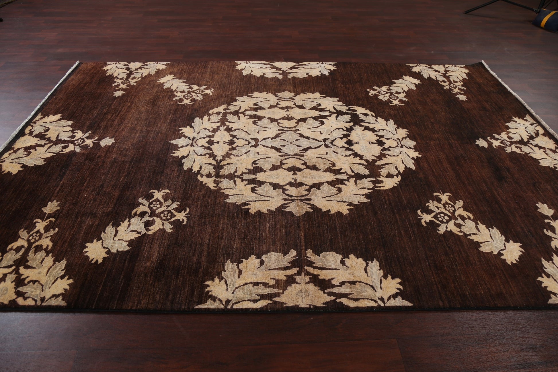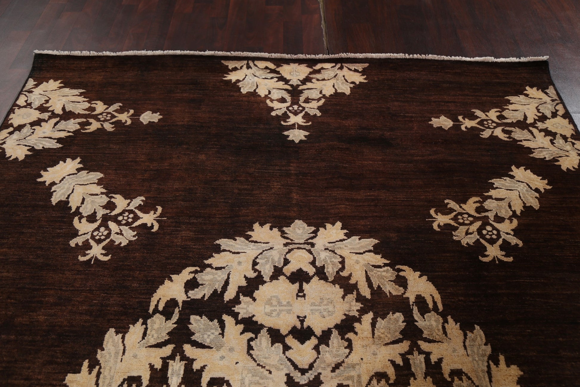 A Beautiful Genuine Pakistan Chobi-Peshawar rug is Hand Knotted by skillful weavers in Pakistan with 100% Wool Material. This rug is in New, First Quality condition. dimensions are 9' 7'' X 6' 9'' in foot and 292 X 206 in centimeter. the primary color is Brown.