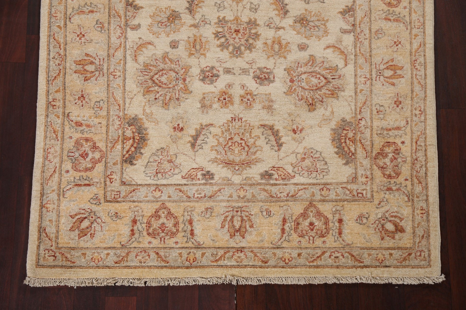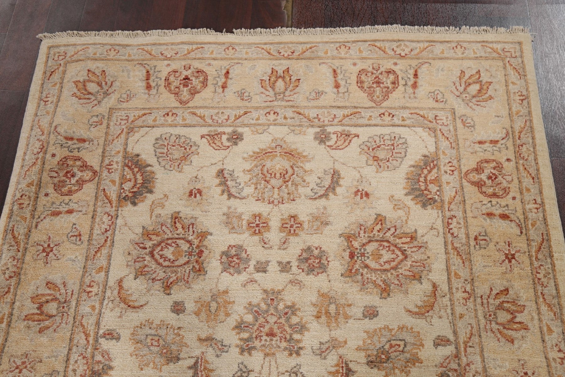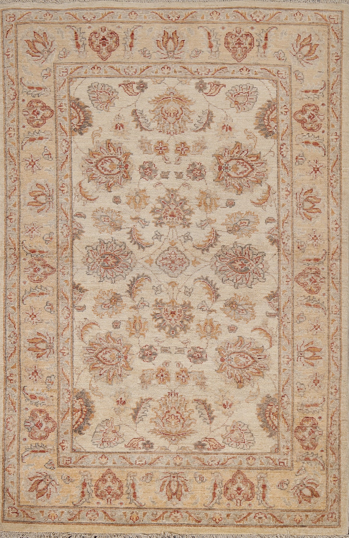 A Beautiful Genuine Pakistan Chobi-Peshawar rug is Hand Knotted by skillful weavers in Pakistan with 100% Wool Material. This rug is in New, First Quality condition. dimensions are 5' 11'' X 3' 9'' in foot and 180 X 114 in centimeter. the primary color is Beige & Ivories.