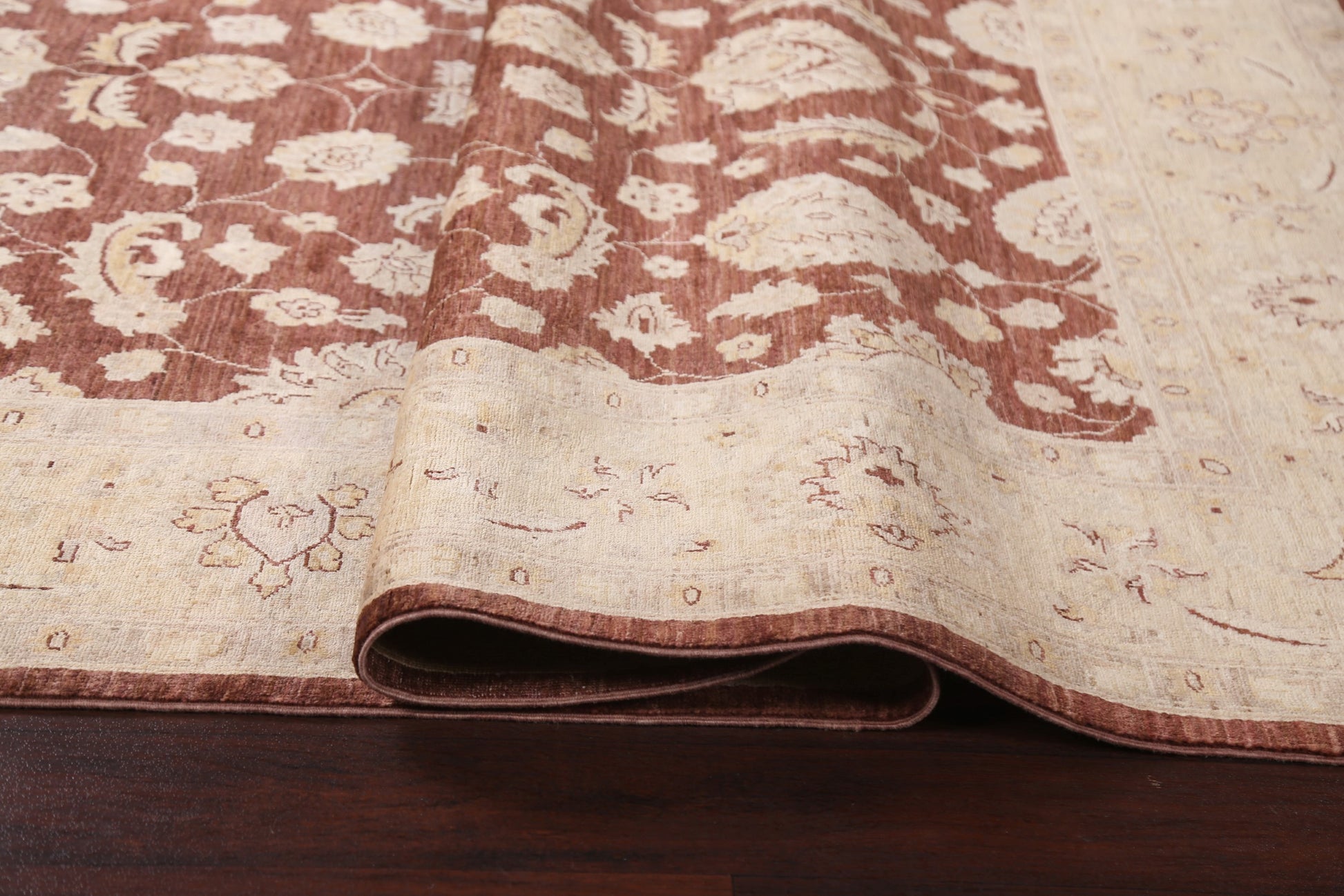 A Beautiful Genuine Pakistan Chobi-Peshawar rug is Hand Knotted by skillful weavers in Pakistan with 100% Wool Material. This rug is in New, First Quality condition. dimensions are 9' 3'' X 6' 5'' in foot and 282 X 196 in centimeter. the primary color is Brown.