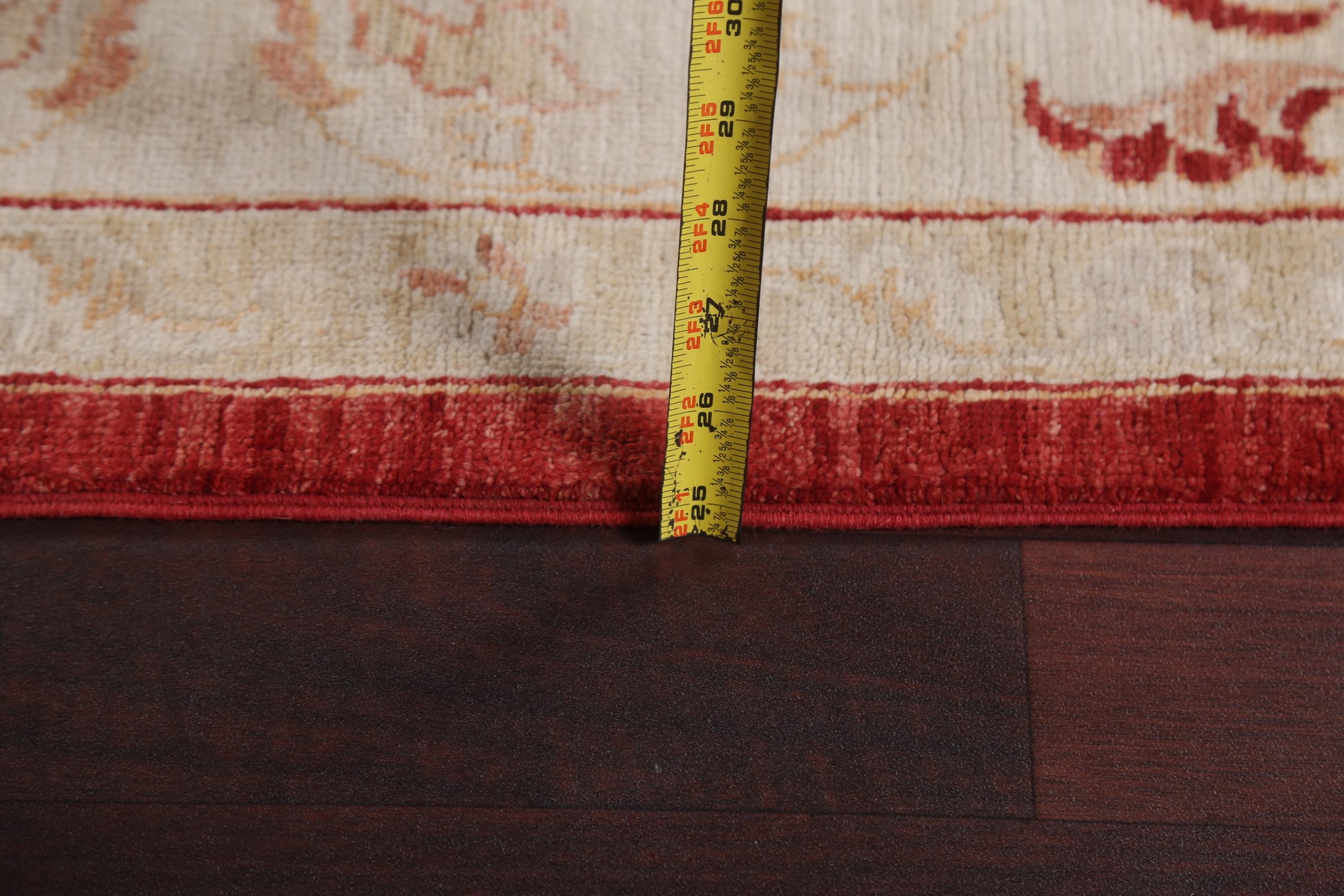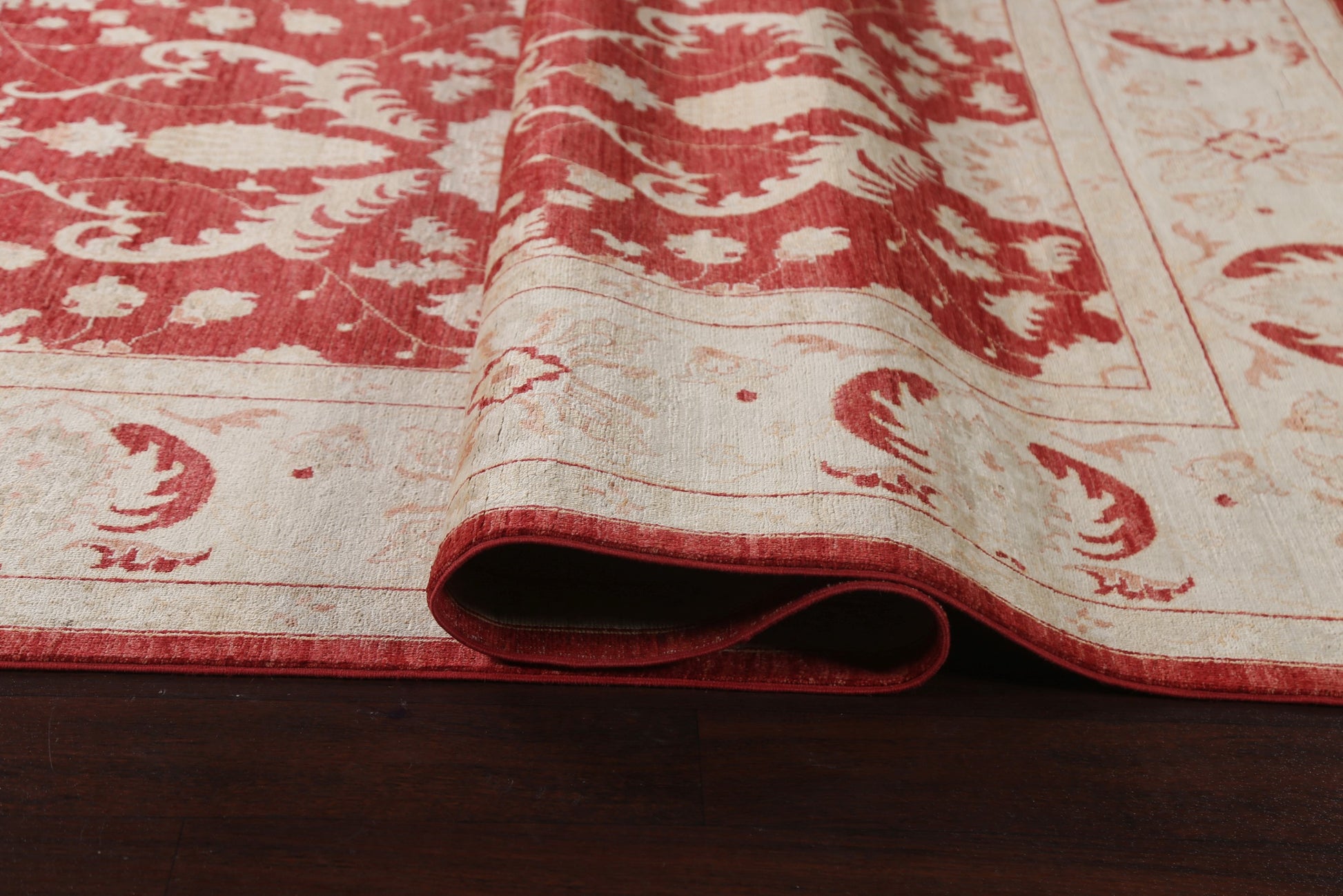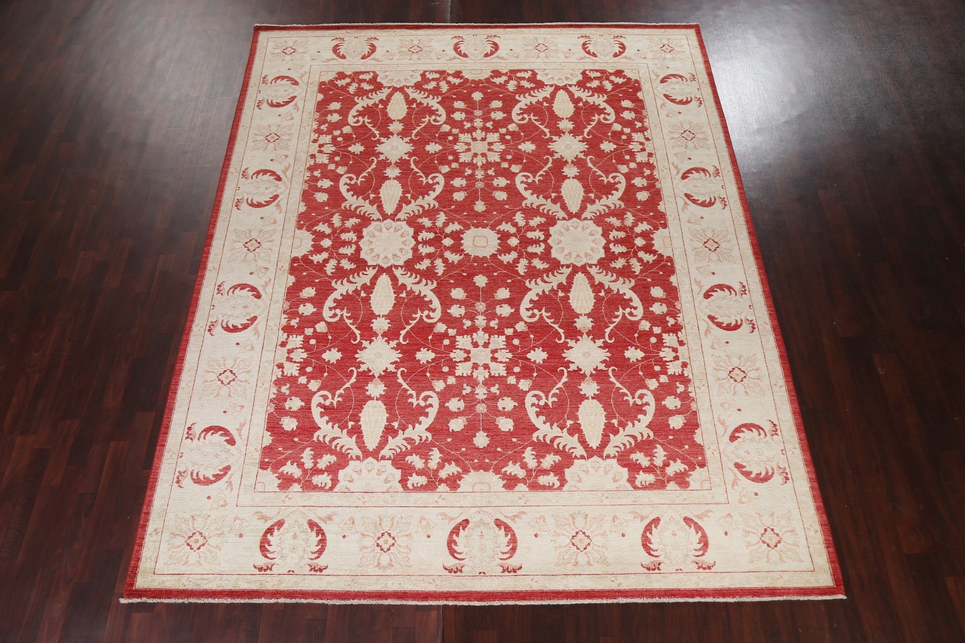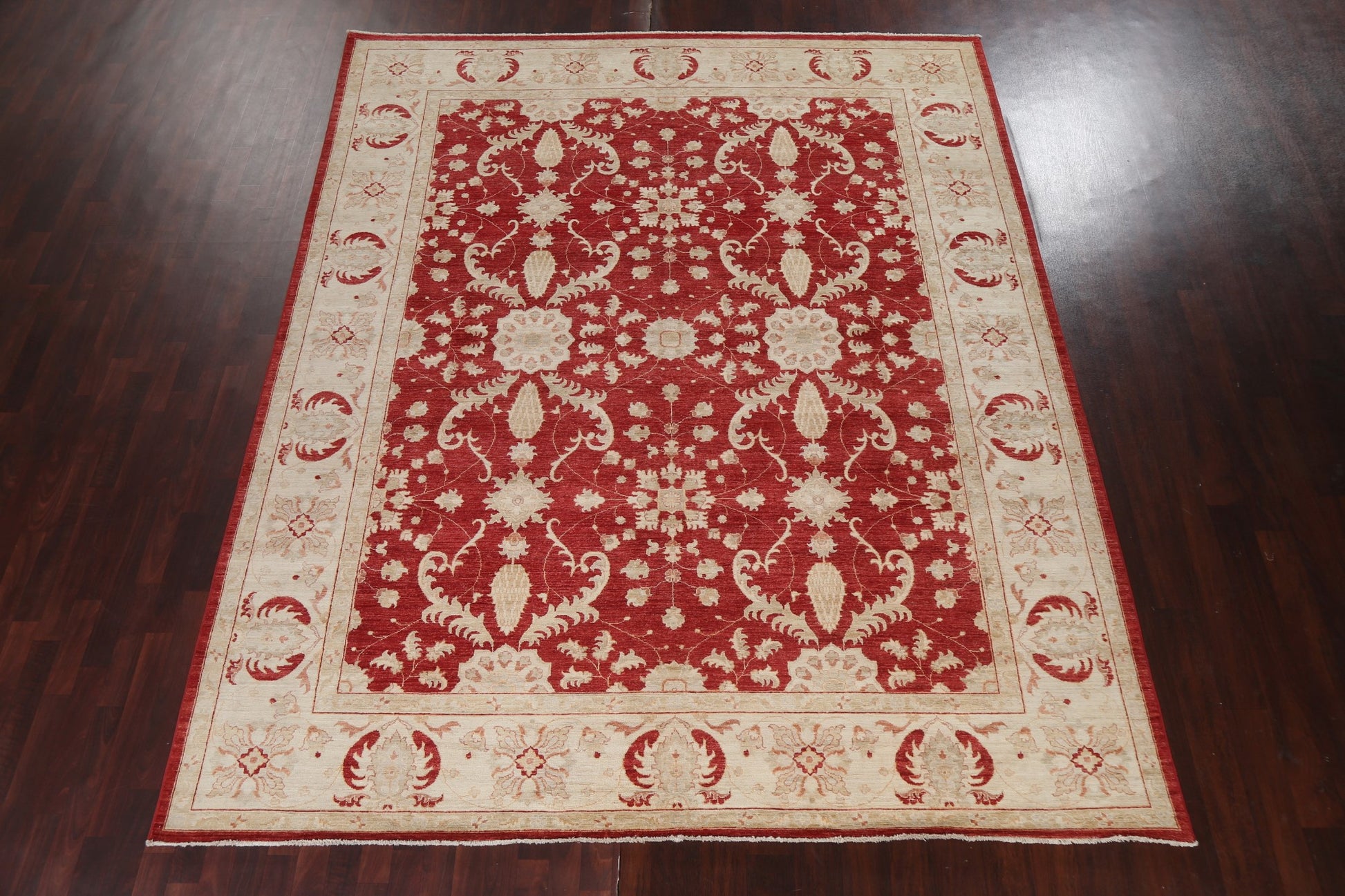 A Beautiful Genuine Pakistan Chobi-Peshawar rug is Hand Knotted by skillful weavers in Pakistan with 100% Wool Material. This rug is in New, First Quality condition. dimensions are 11' 2'' X 9' 1'' in foot and 340 X 277 in centimeter. the primary color is Red.
