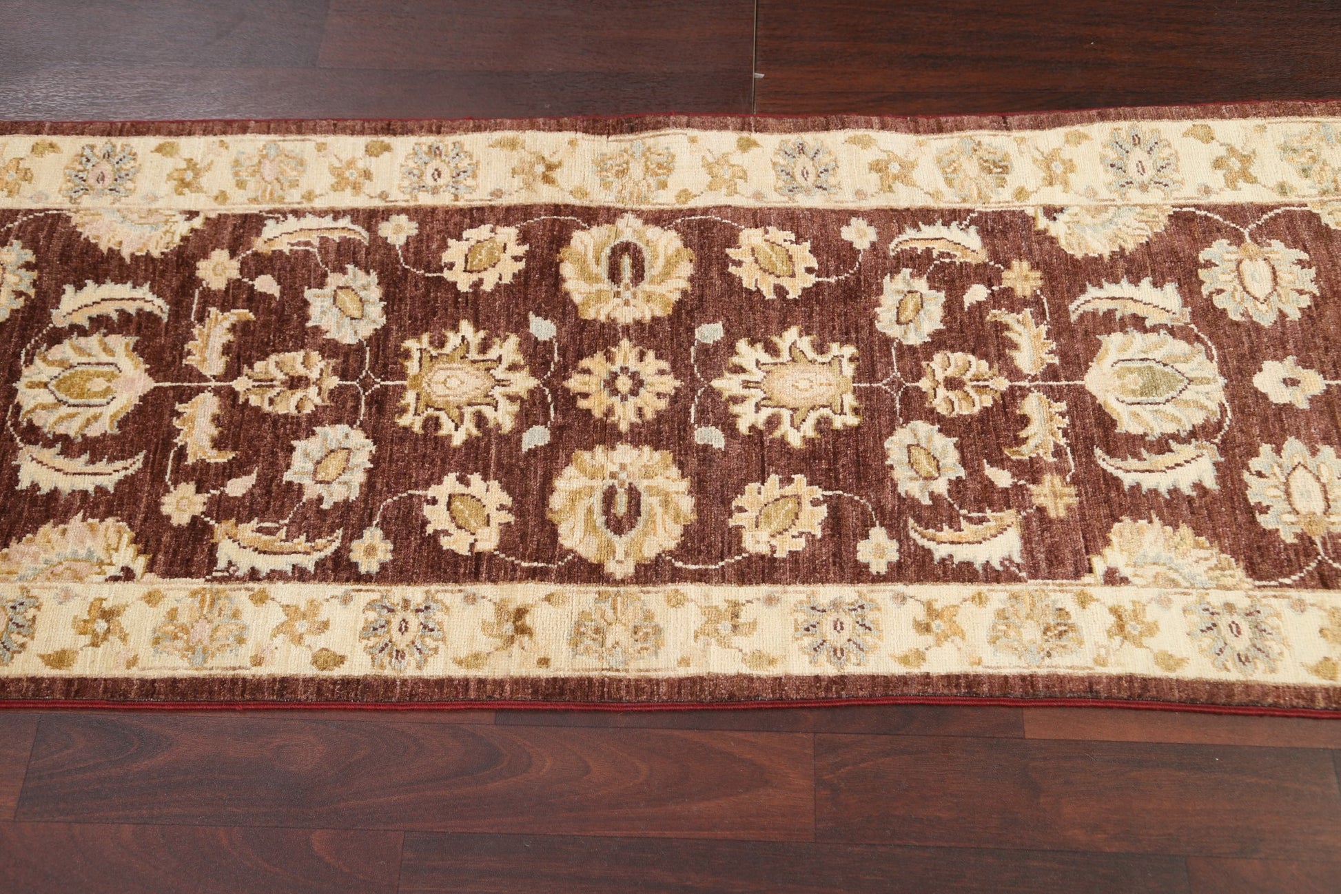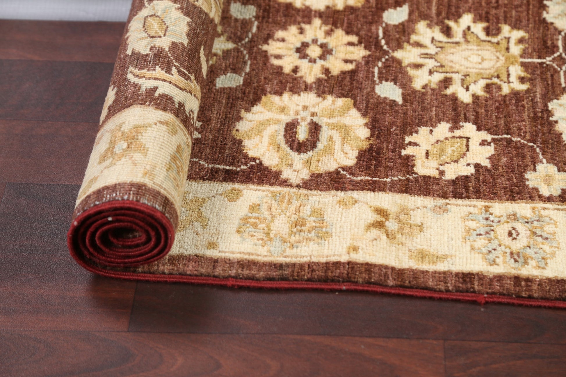 A Beautiful Genuine Pakistan Chobi-Peshawar rug is Hand Knotted by skillful weavers in Pakistan with 100% Wool Material. This rug is in New, First Quality condition. dimensions are 5' 11'' X 1' 11'' in foot and 180 X 58 in centimeter. the primary color is Brown.