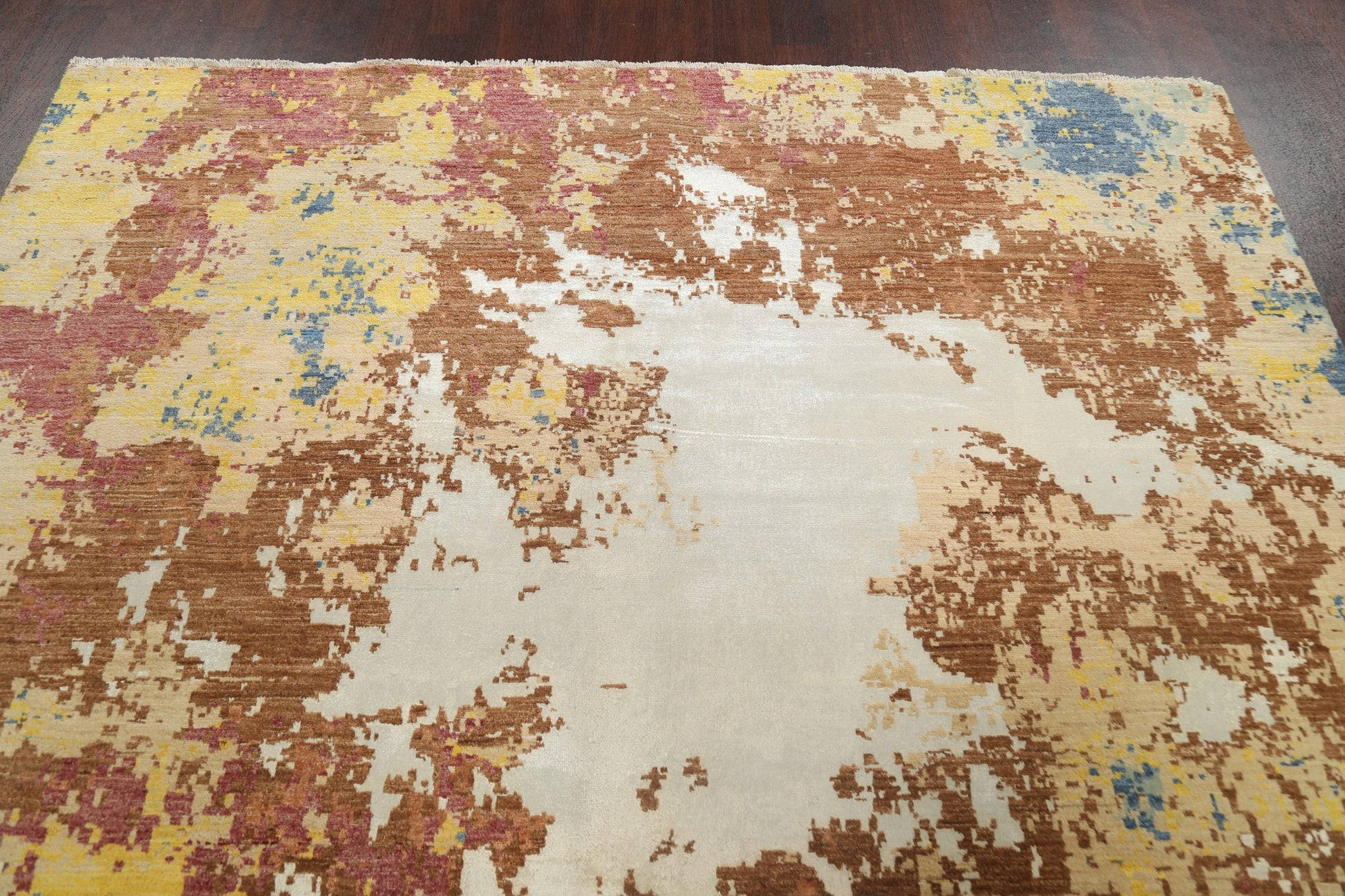 A Beautiful Genuine Pakistan Abstract rug is Hand Knotted by skillful weavers in Pakistan with Wool & Silk Material. This rug is in New, First Quality condition. dimensions are 10' 5'' X 8' 0'' in foot and 318 X 244 in centimeter. the primary color is Multi-Colored.