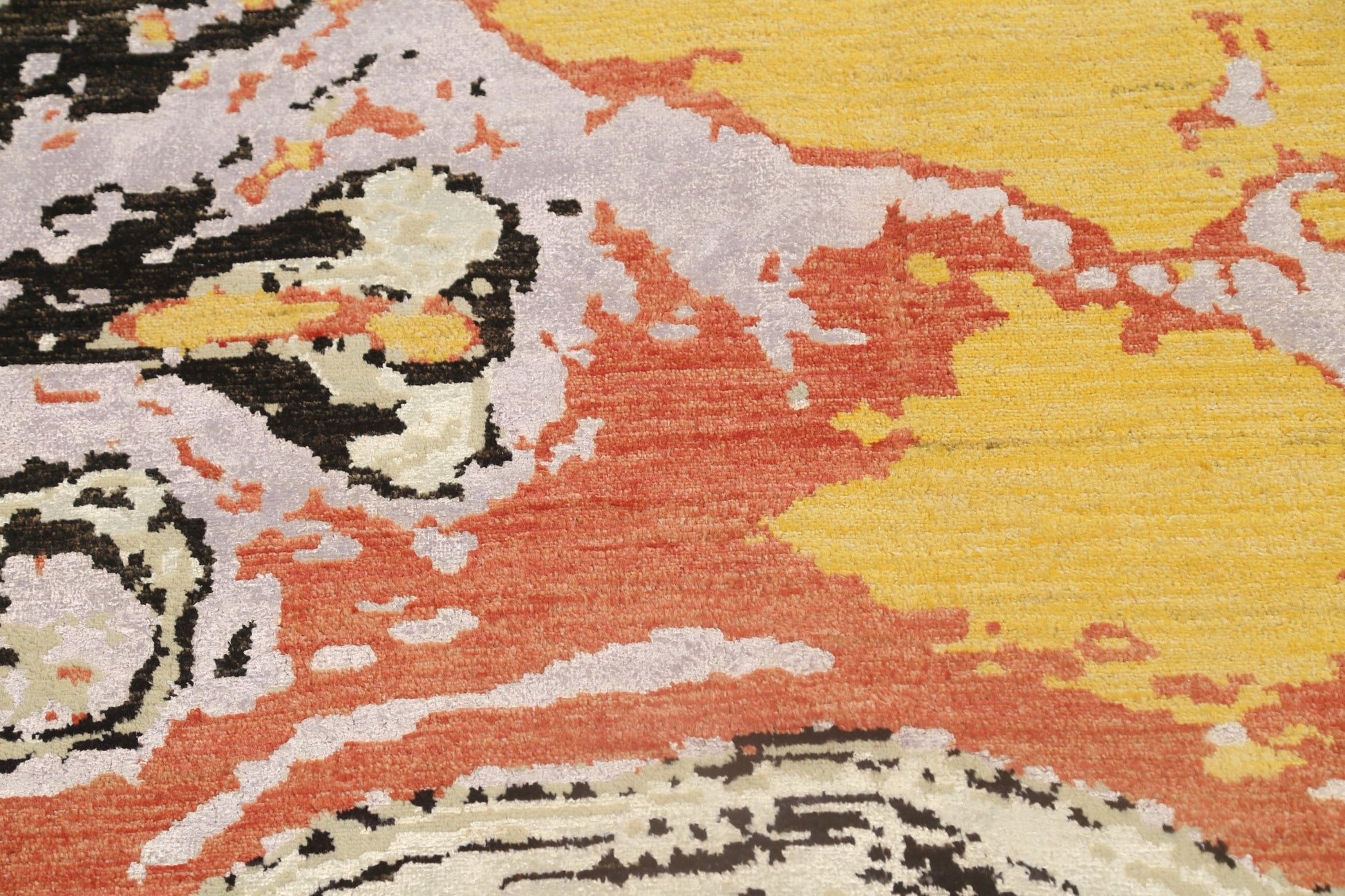 A Beautiful Genuine Pakistan Abstract rug is Hand Knotted by skillful weavers in Pakistan with Wool & Silk Material. This rug is in New, First Quality condition. dimensions are 9' 9'' X 6' 2'' in foot and 297 X 188 in centimeter. the primary color is Multi-Colored.