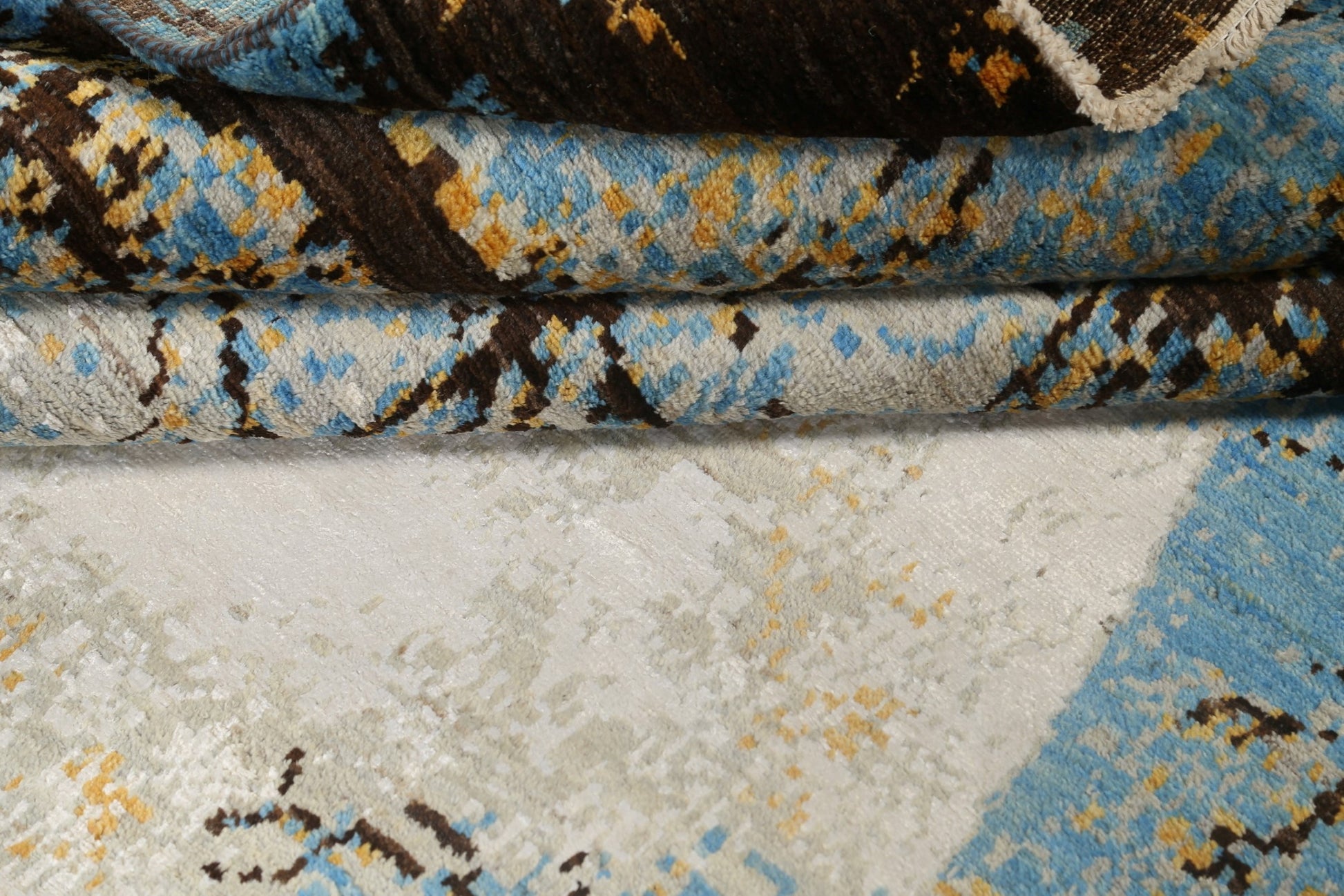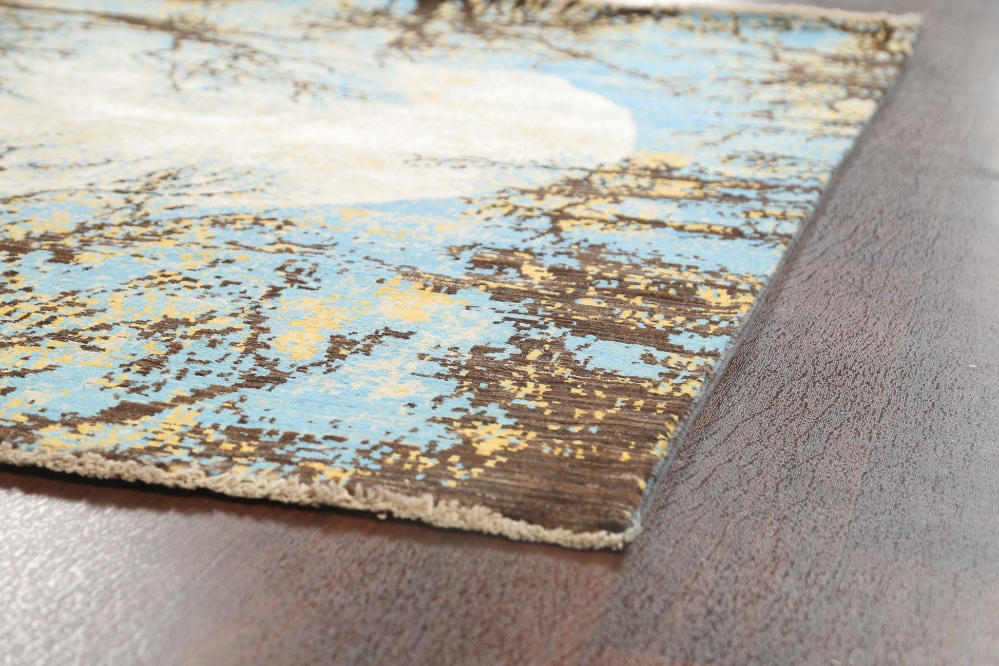 A Beautiful Genuine Pakistan Abstract rug is Hand Knotted by skillful weavers in Pakistan with Wool & Silk Material. This rug is in New, First Quality condition. dimensions are 8' 2'' X 5' 6'' in foot and  249 X 168 in centimeter. the primary color is Beige & Ivories.