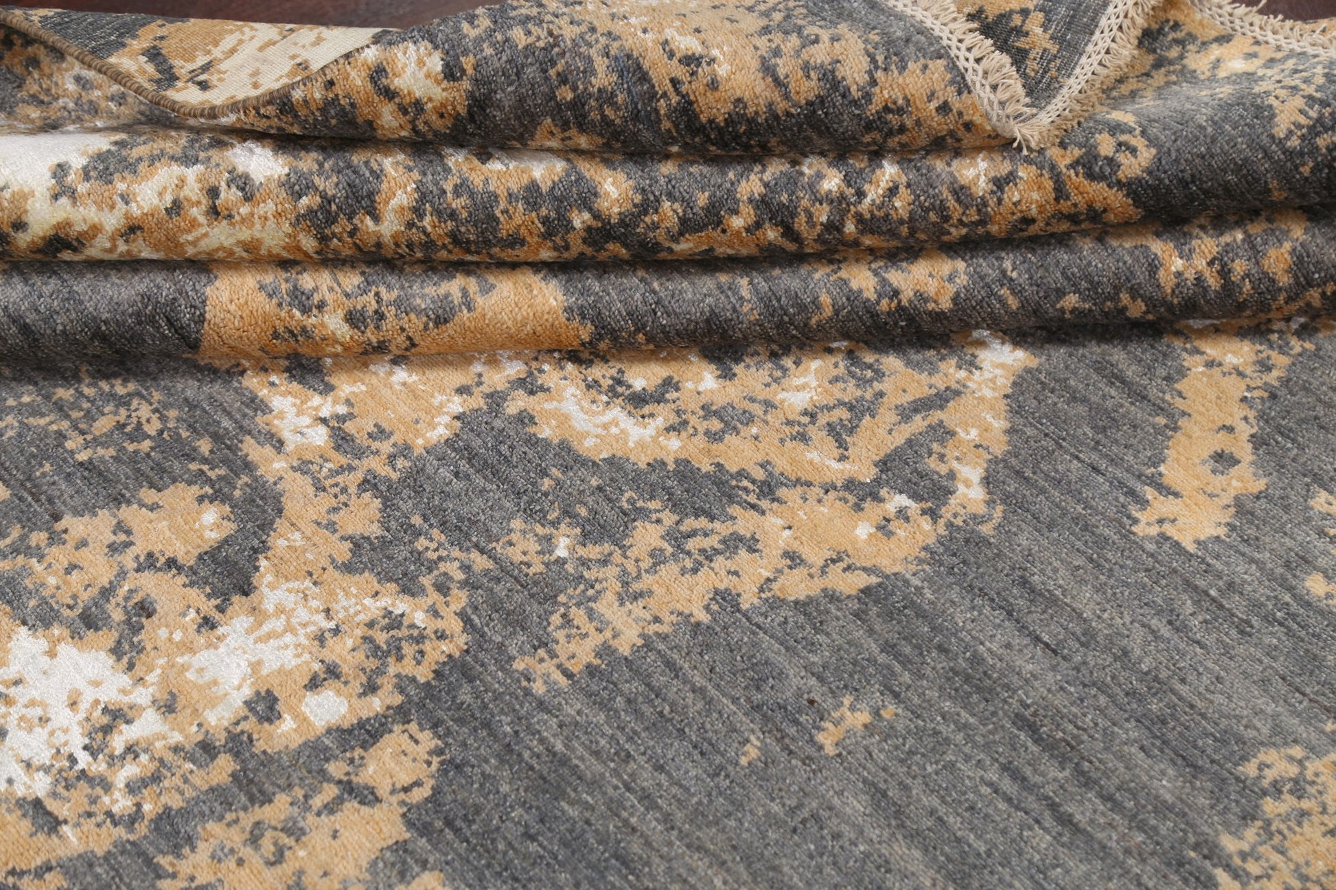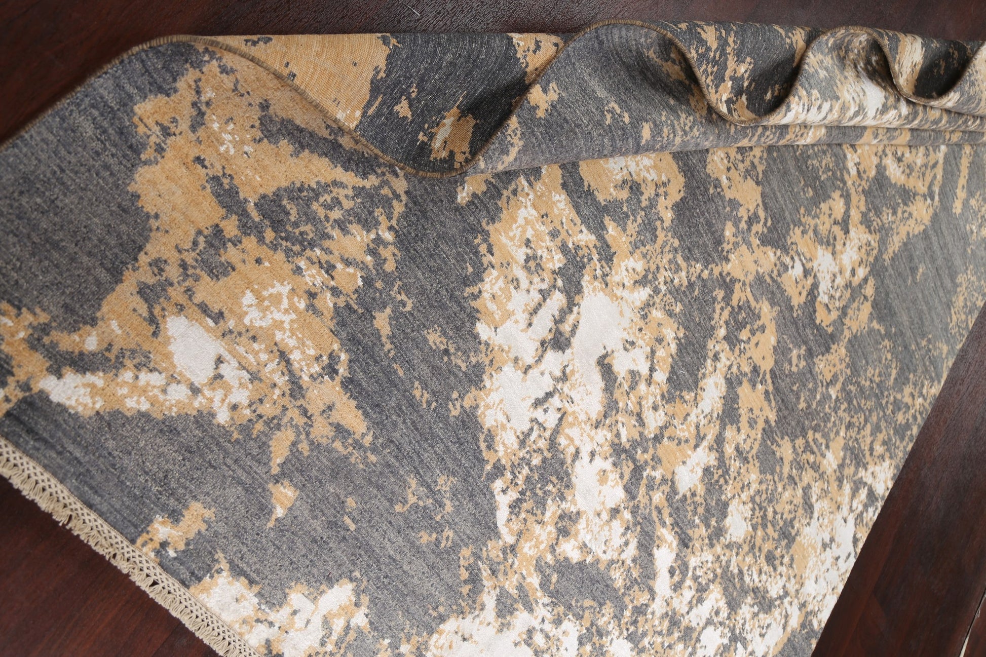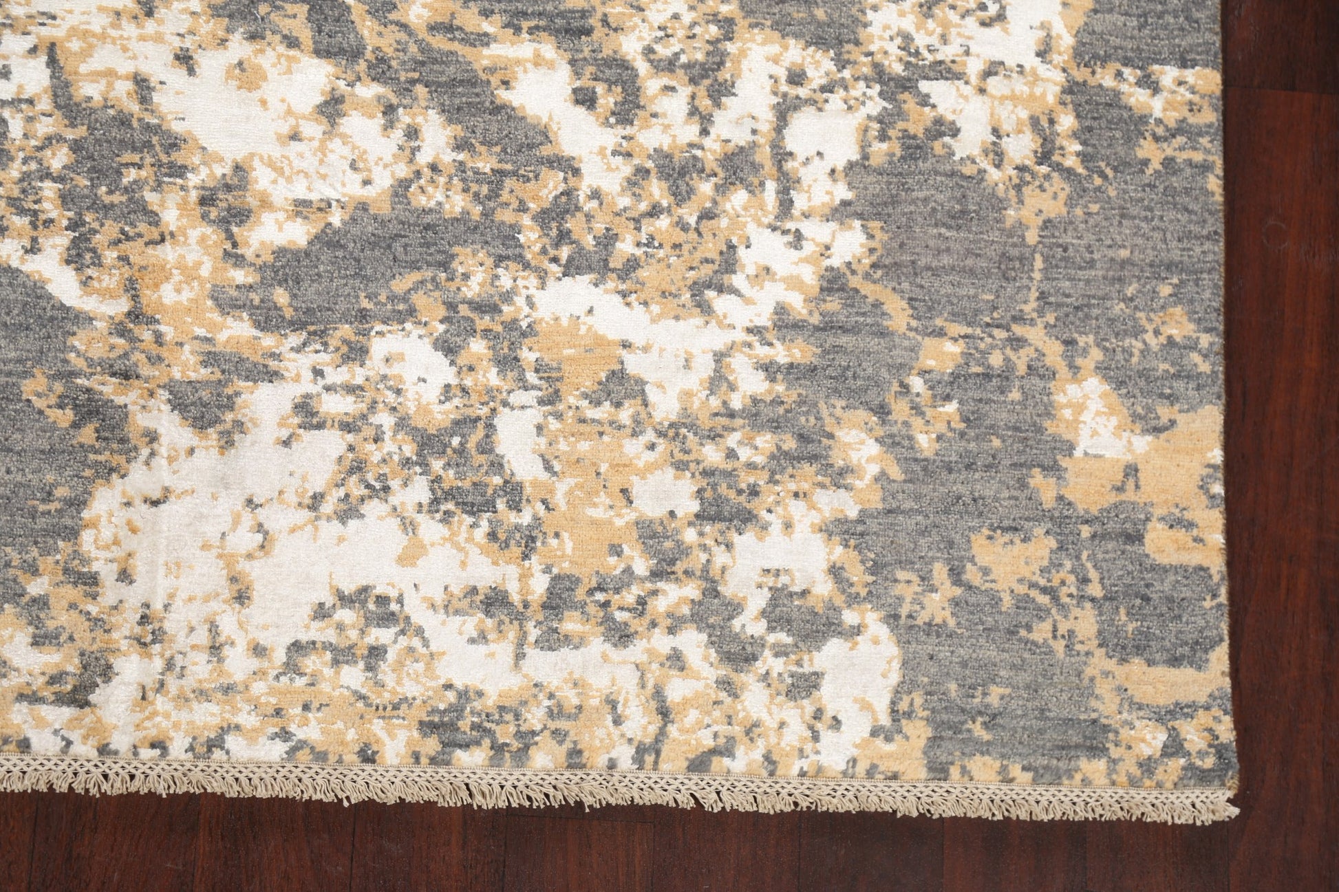 A Beautiful Genuine Pakistan Abstract rug is Hand Knotted by skillful weavers in Pakistan with Wool & Silk Material. This rug is in New, First Quality condition. dimensions are 9' 2'' X 6' 2'' in foot and  279 X 188 in centimeter. the primary color is Greys & Charcoal.