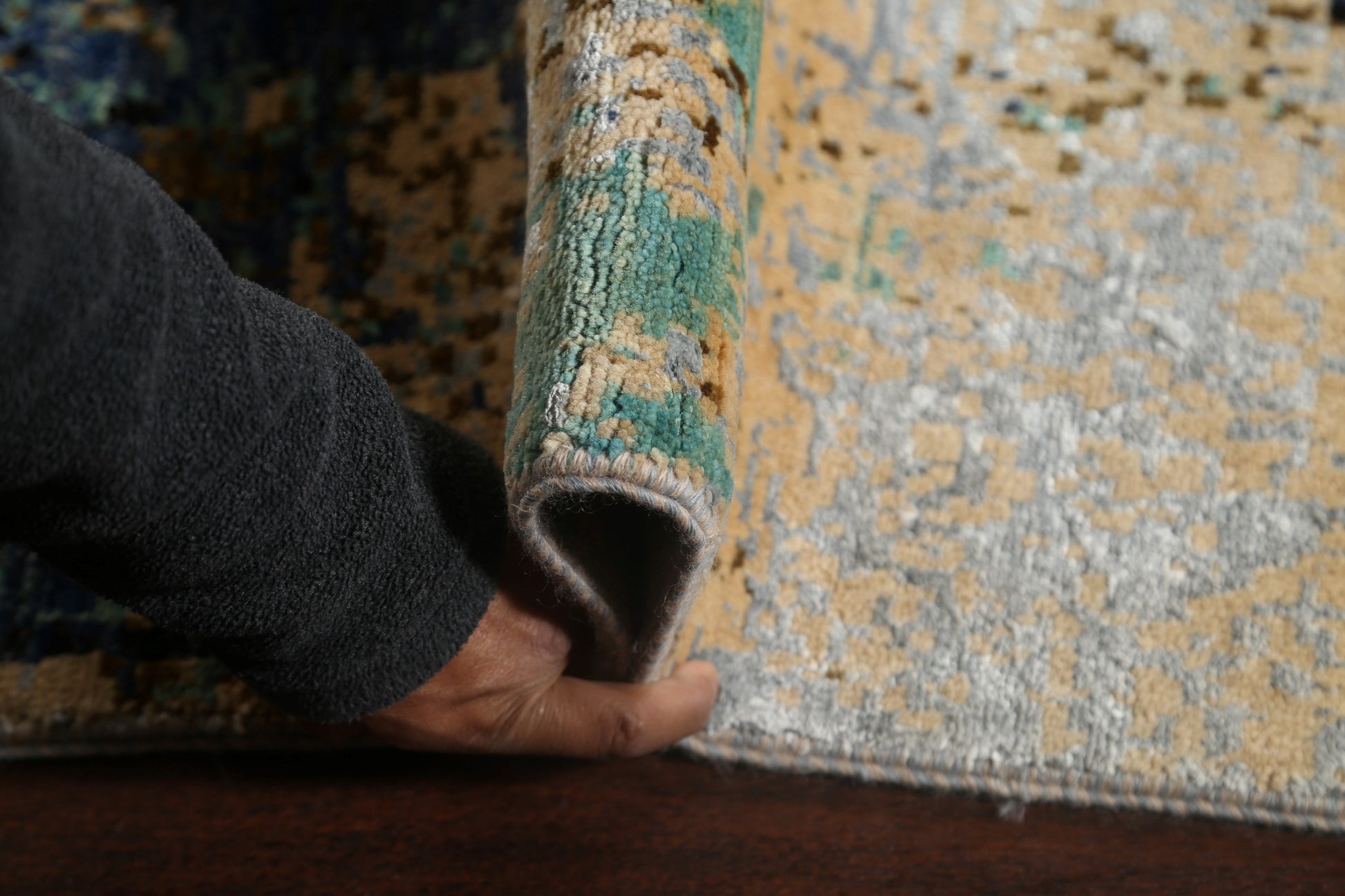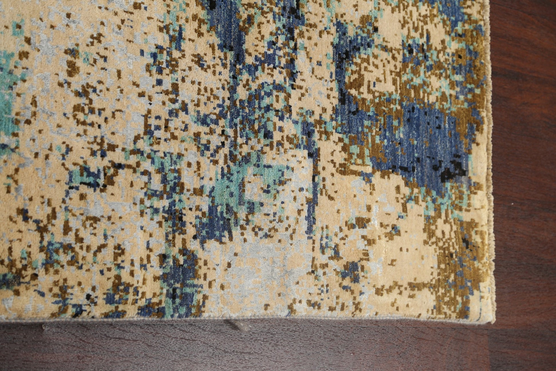 A Beautiful Genuine Pakistan Abstract rug is Hand Knotted by skillful weavers in Pakistan with Wool & Silk Material. This rug is in New, First Quality condition. dimensions are 9' 3'' X 5' 11'' in foot and  282 X 180 in centimeter. the primary color is Multi-Colored.