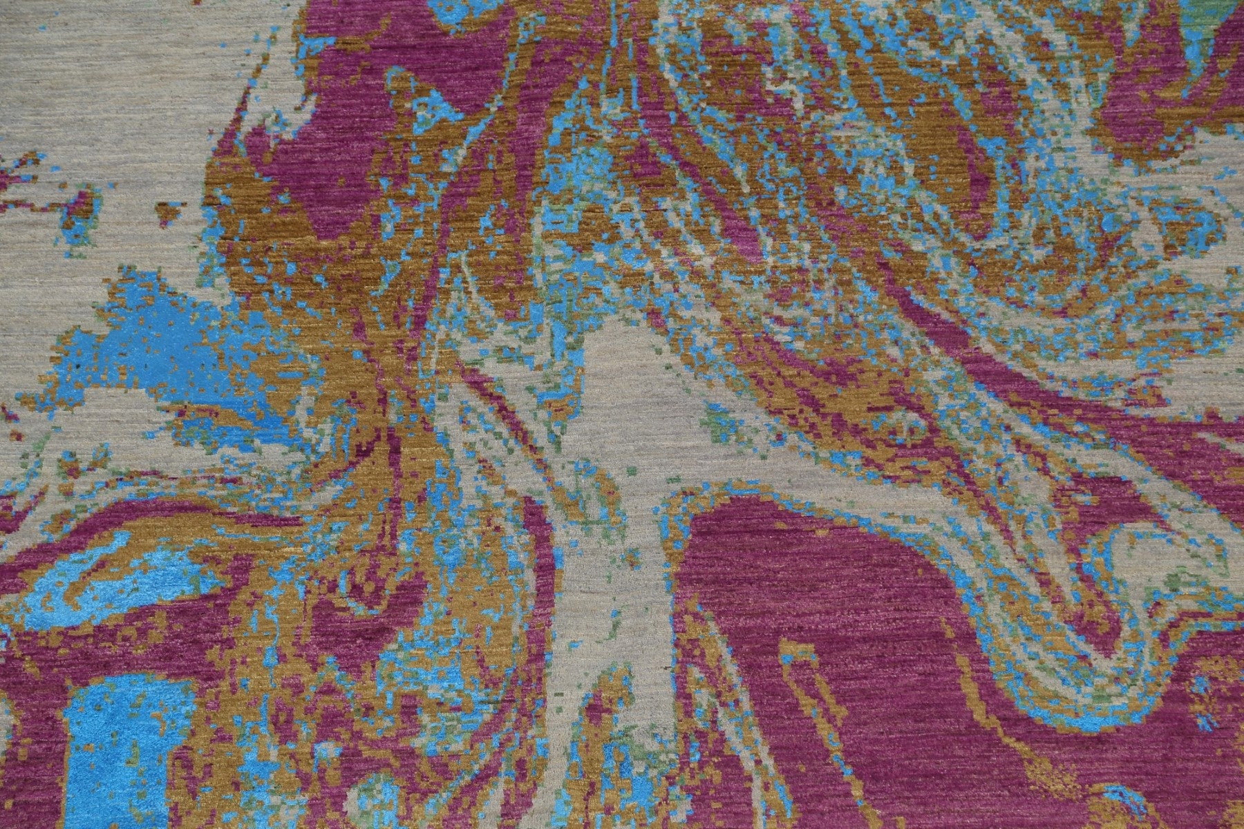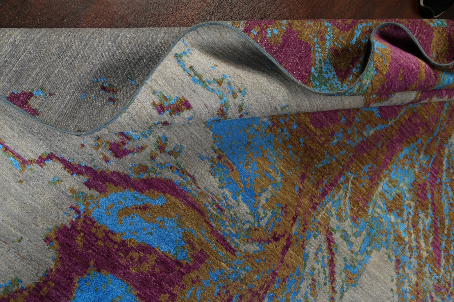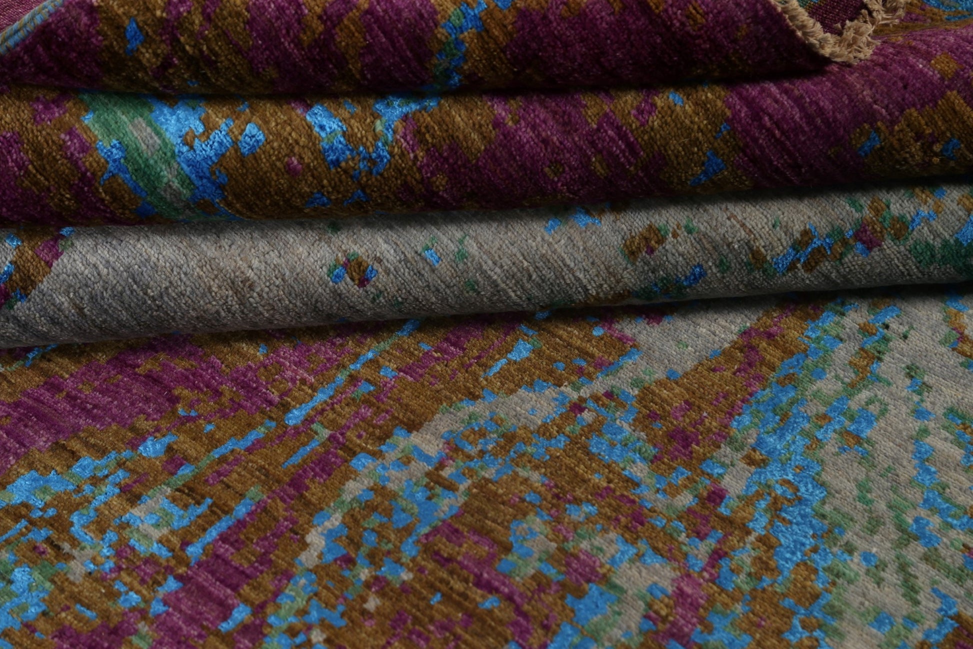 A Beautiful Genuine Pakistan Abstract rug is Hand Knotted by skillful weavers in Pakistan with Wool & Silk Material. This rug is in New, First Quality condition. dimensions are 12' 4'' X 8' 1'' in foot and 376 X 246 in centimeter. the primary color is Purples.