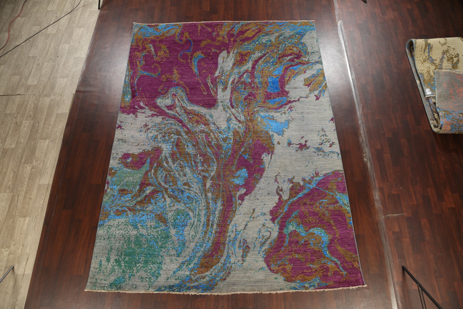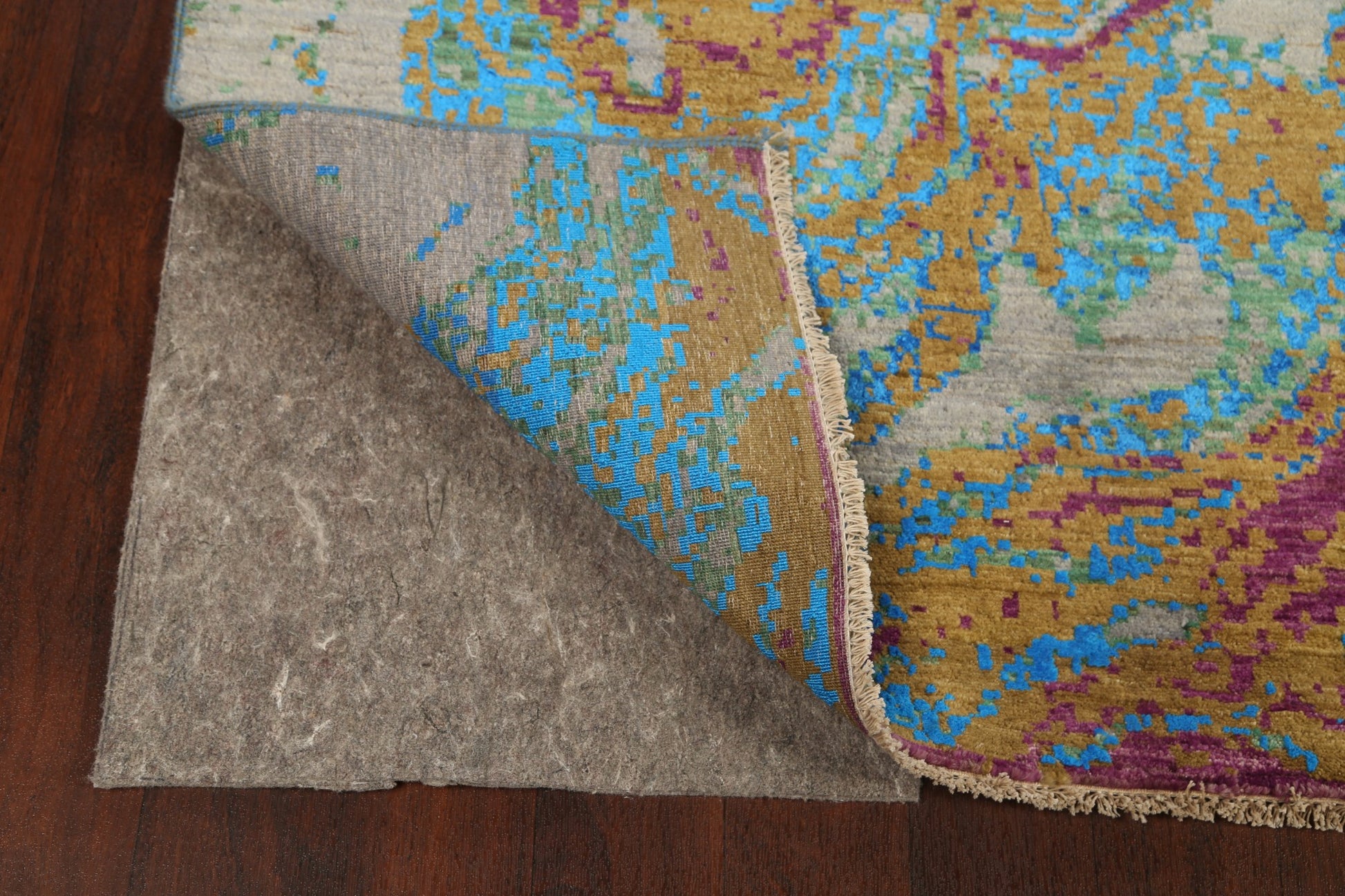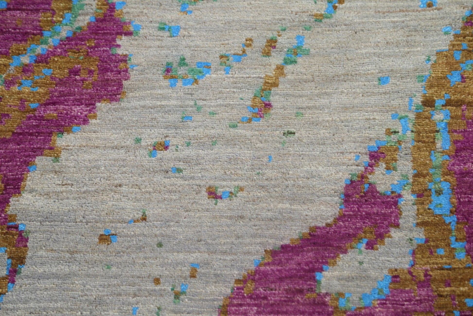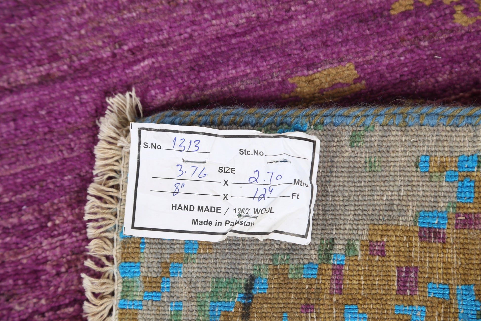 A Beautiful Genuine Pakistan Abstract rug is Hand Knotted by skillful weavers in Pakistan with Wool & Silk Material. This rug is in New, First Quality condition. dimensions are 12' 4'' X 8' 1'' in foot and 376 X 246 in centimeter. the primary color is Purples.