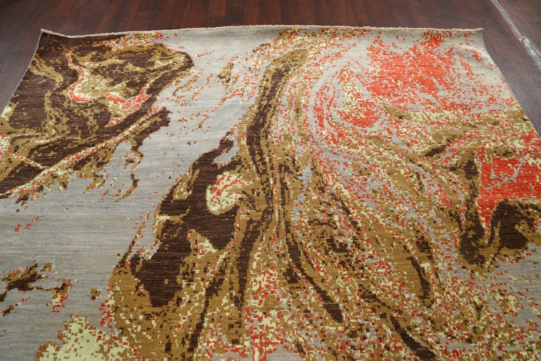 A Beautiful Genuine Pakistan Abstract rug is Hand Knotted by skillful weavers in Pakistan with Wool & Silk Material. This rug is in New, First Quality condition. dimensions are 12' 4'' X 9' 0'' in foot and 376 X 274 in centimeter. the primary color is Multi-Colored.