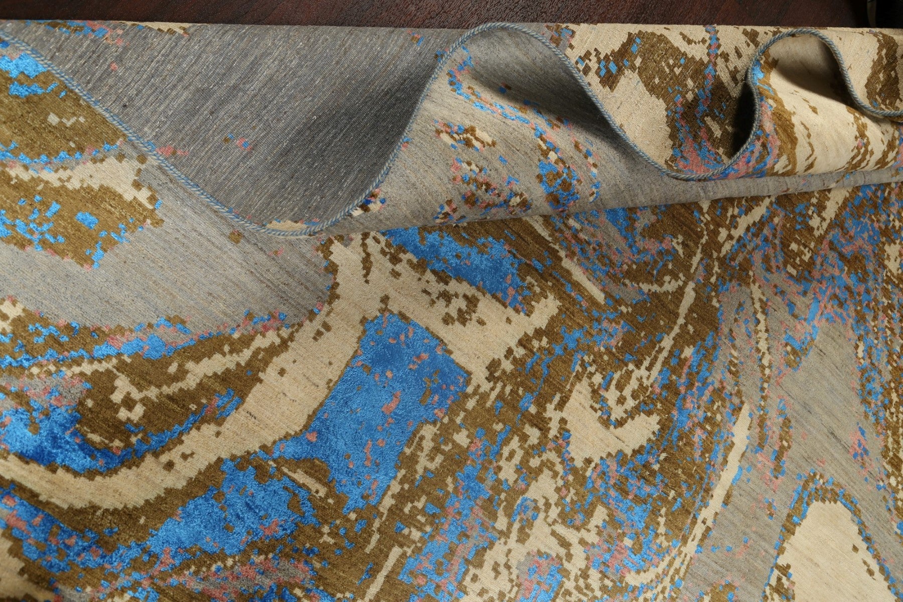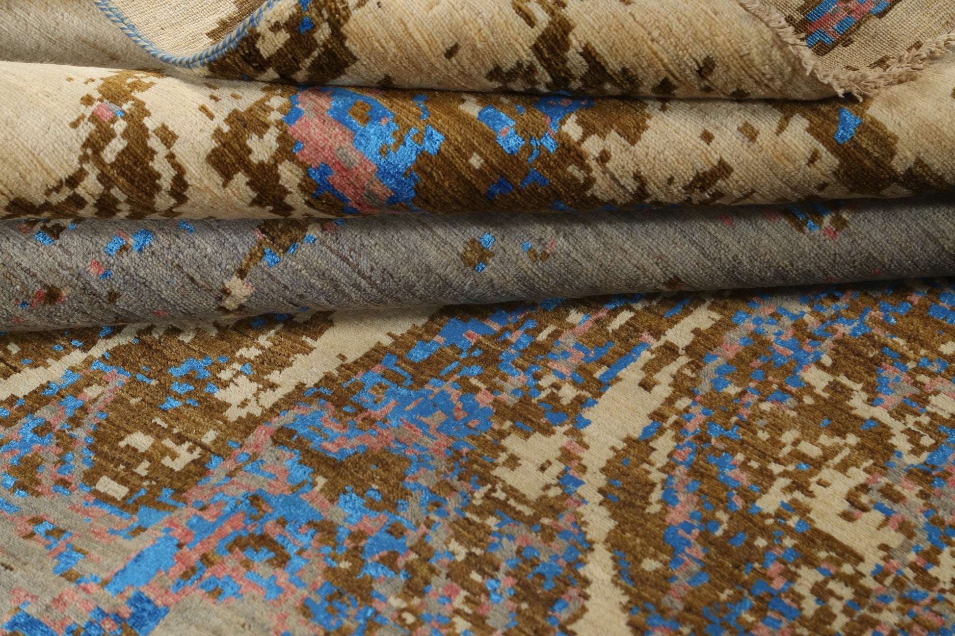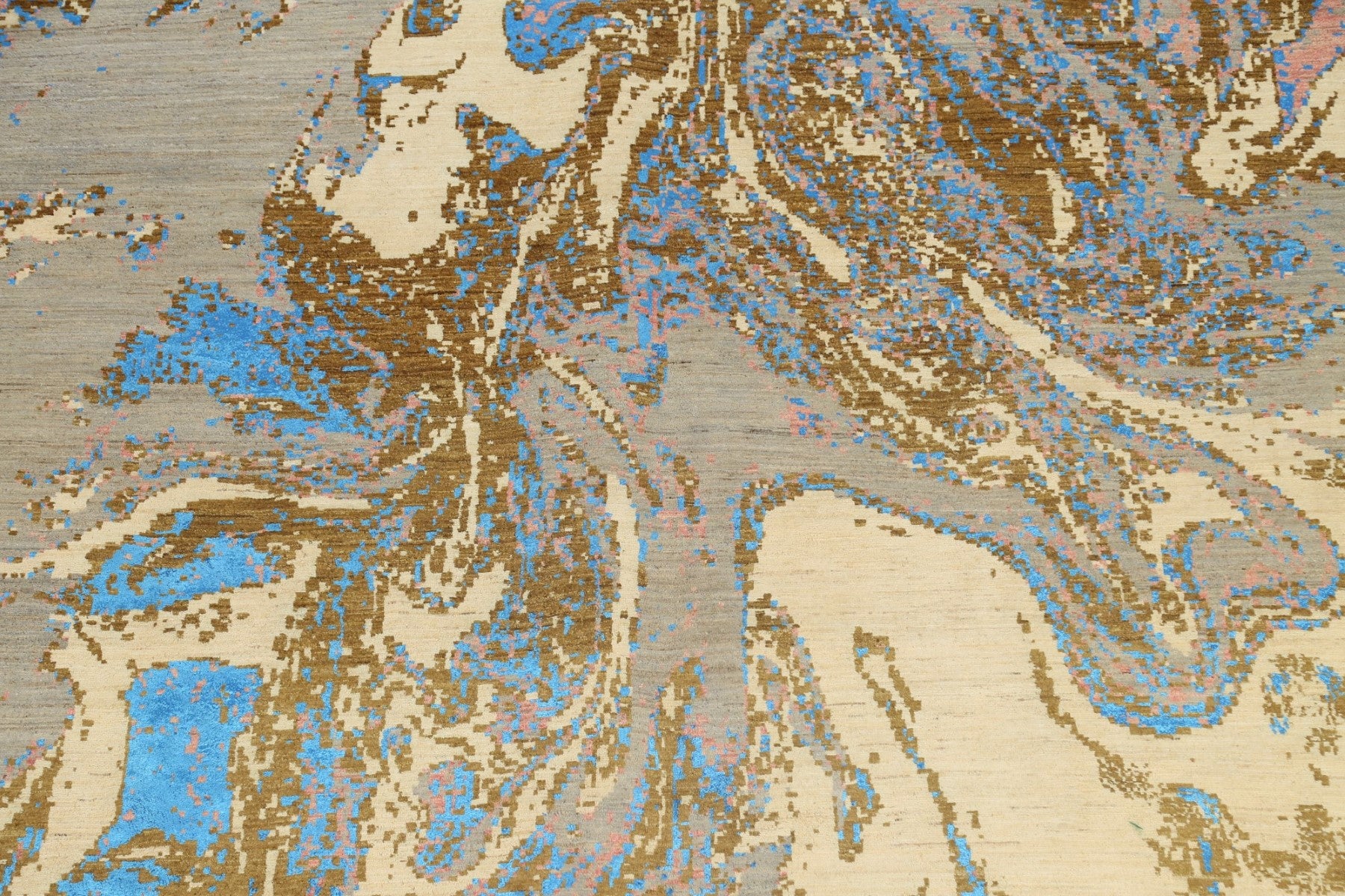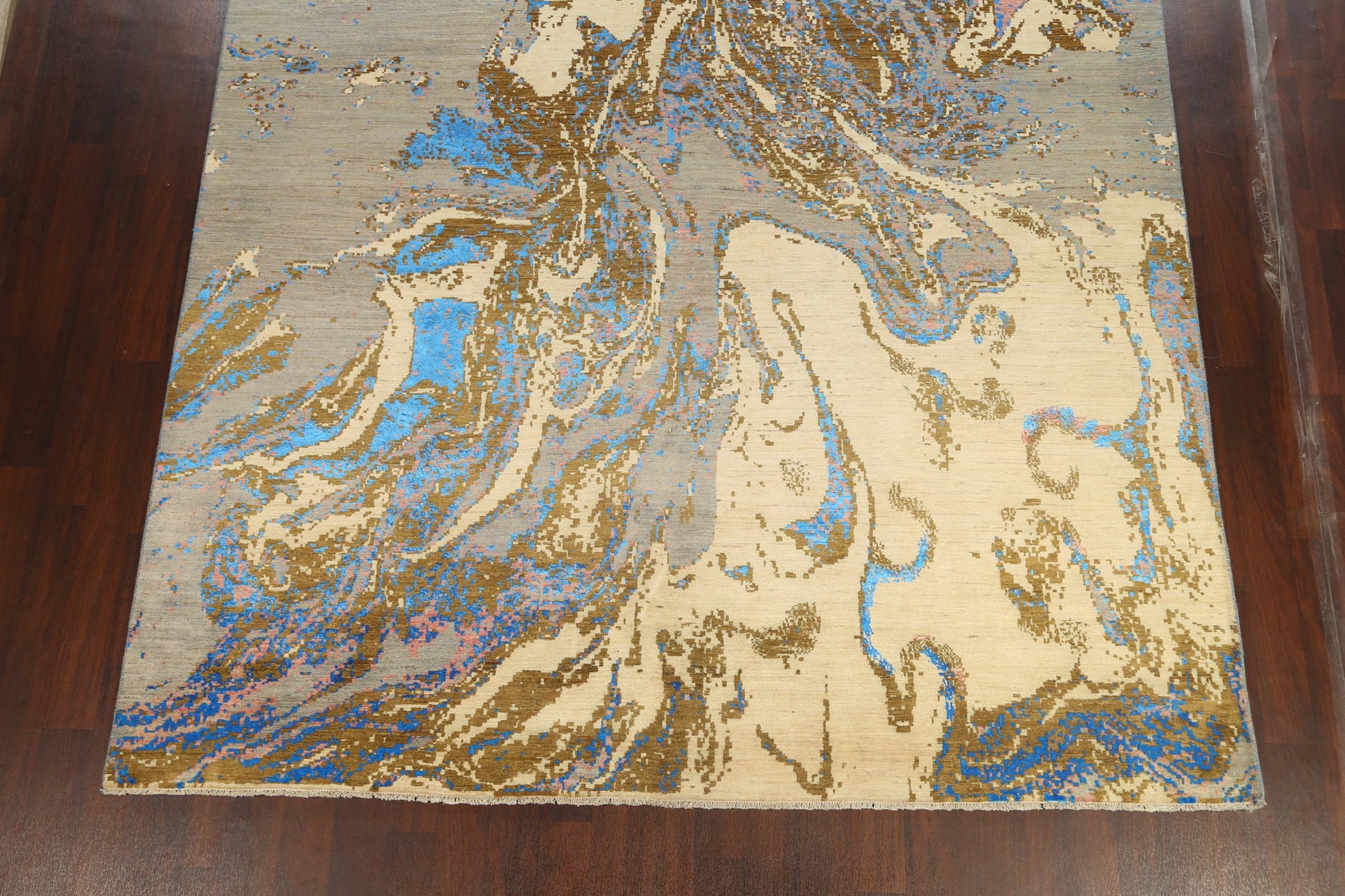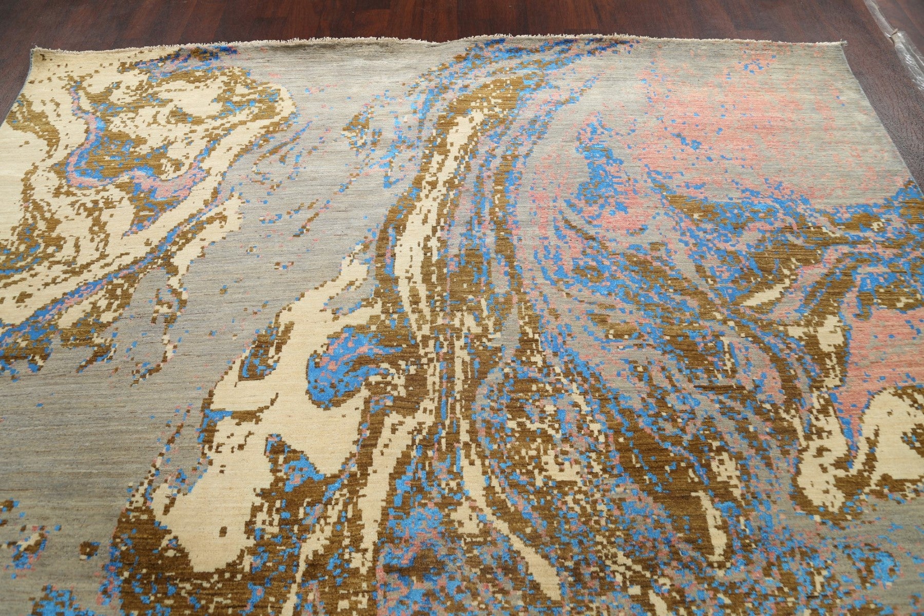 A Beautiful Genuine Pakistan Abstract rug is Hand Knotted by skillful weavers in Pakistan with Wool & Silk Material. This rug is in New, First Quality condition. dimensions are 12' 1'' X 9' 2'' in foot and 368 X 279 in centimeter. the primary color is Multi-Colored.