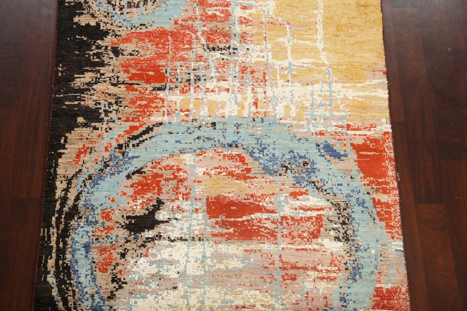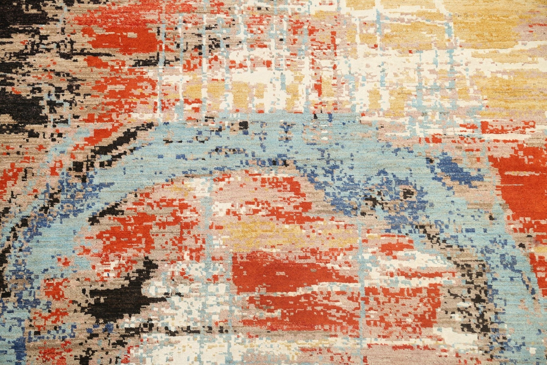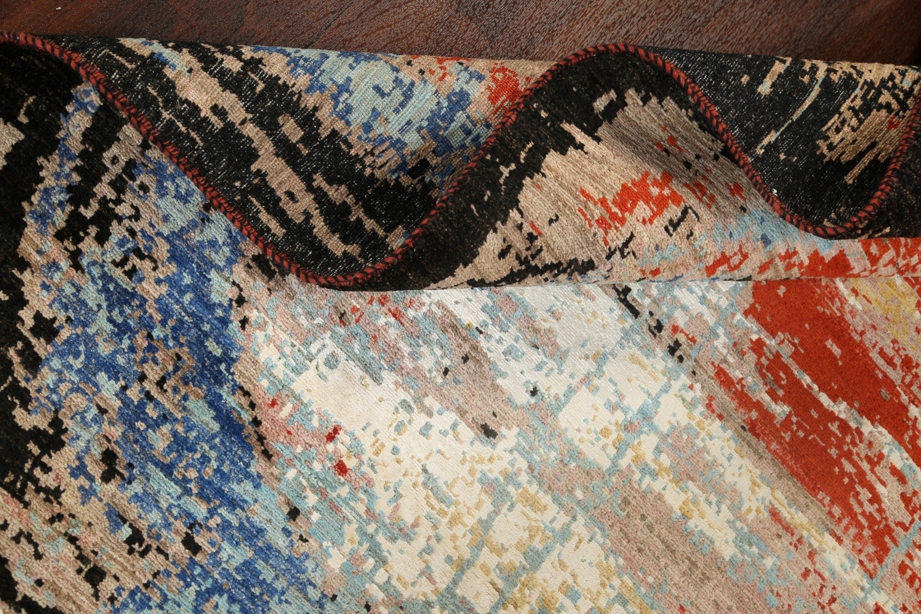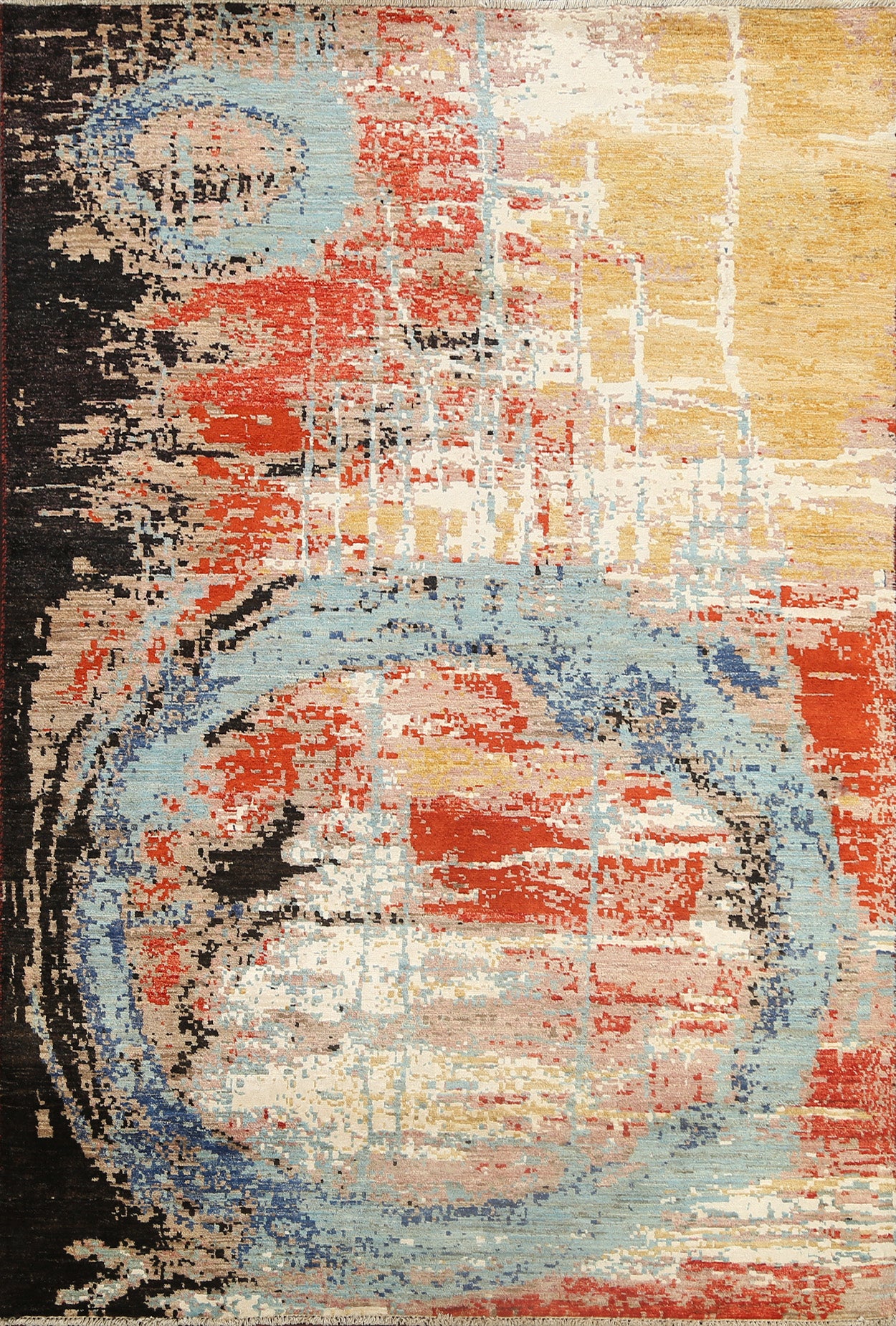 A Beautiful Genuine Pakistan Abstract rug is Hand Knotted by skillful weavers in Pakistan with Wool & Silk Material. This rug is in New, First Quality condition. dimensions are 6' 11'' X 5' 0'' in foot and 211 X 152 in centimeter. the primary color is Multi-Colored.