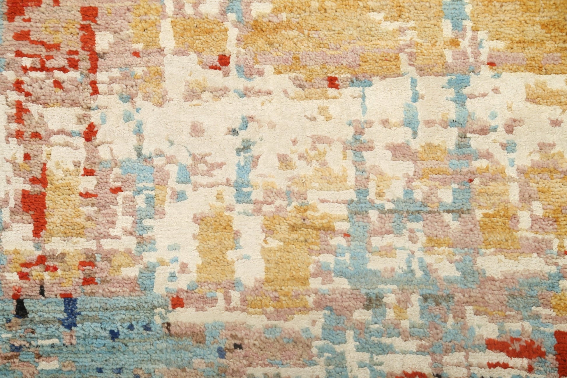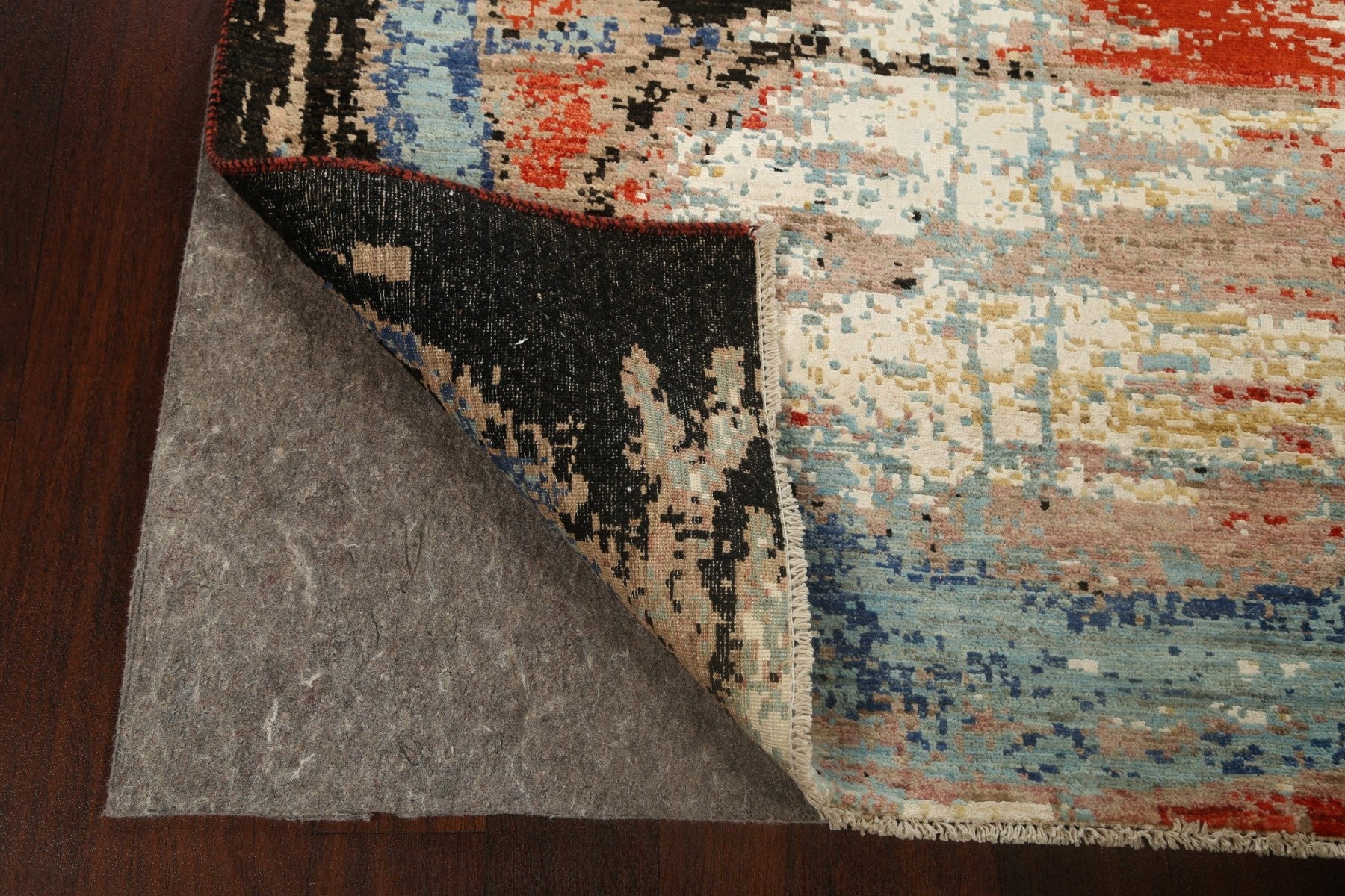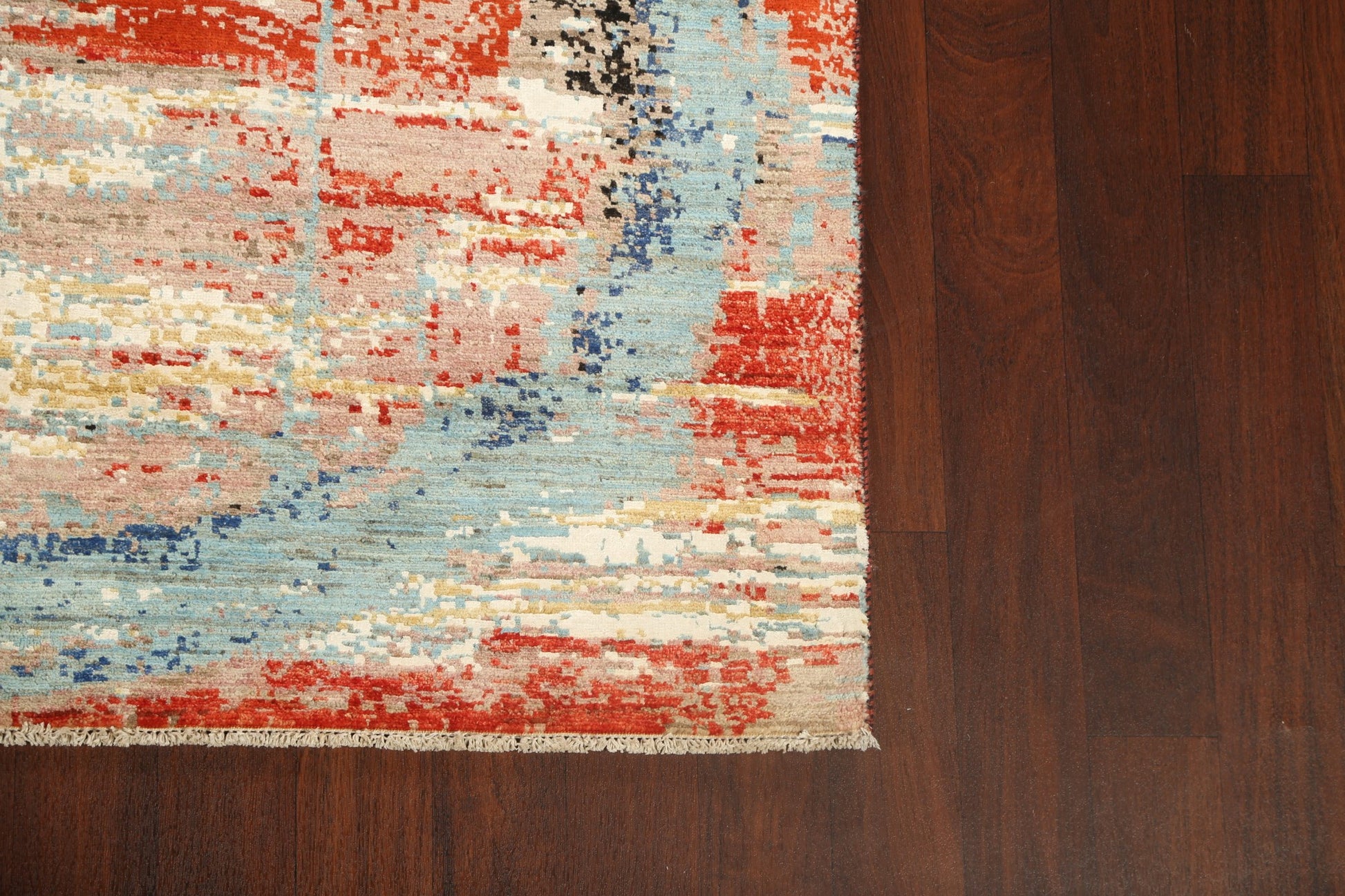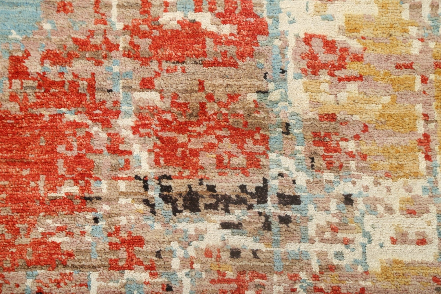 A Beautiful Genuine Pakistan Abstract rug is Hand Knotted by skillful weavers in Pakistan with Wool & Silk Material. This rug is in New, First Quality condition. dimensions are 6' 11'' X 5' 0'' in foot and 211 X 152 in centimeter. the primary color is Multi-Colored.