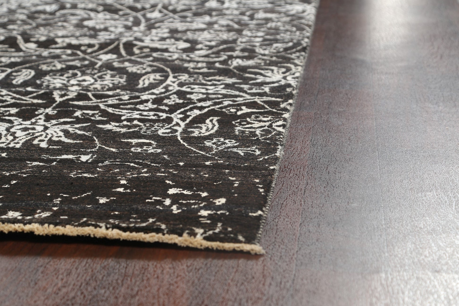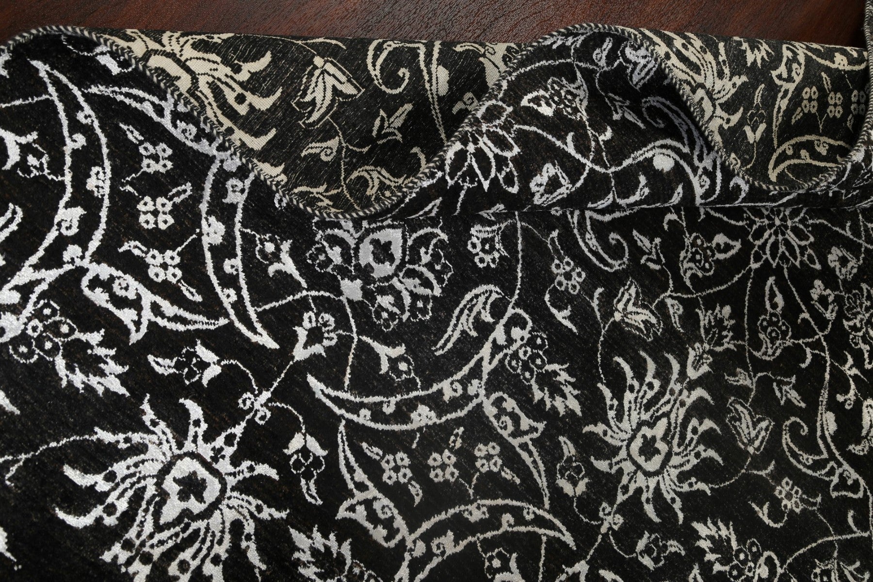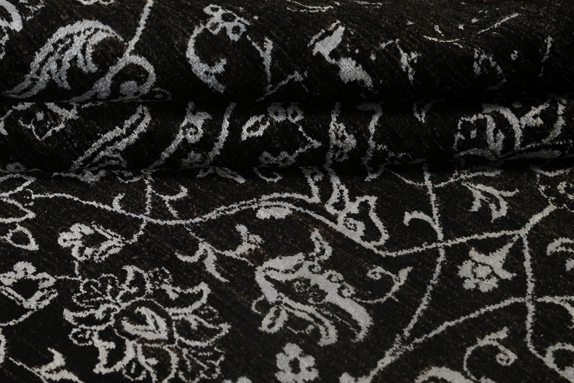 A Beautiful Genuine Pakistan Versace rug is Hand Knotted by skillful weavers in Pakistan with Wool & Silk Material. This rug is in New, First Quality condition. dimensions are 9' 9'' X 6' 8'' in foot and 297 X 203 in centimeter. the primary color is Black.