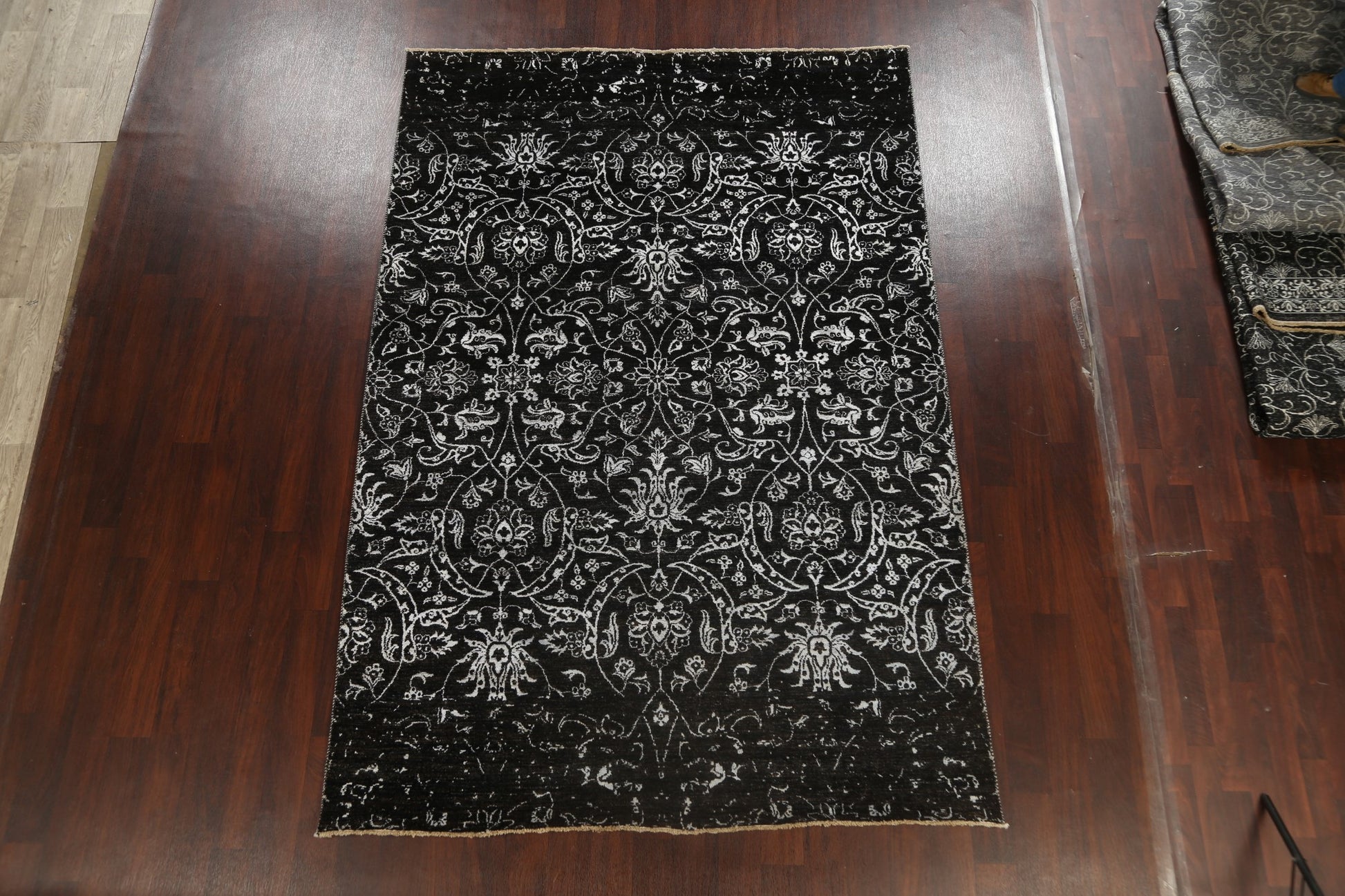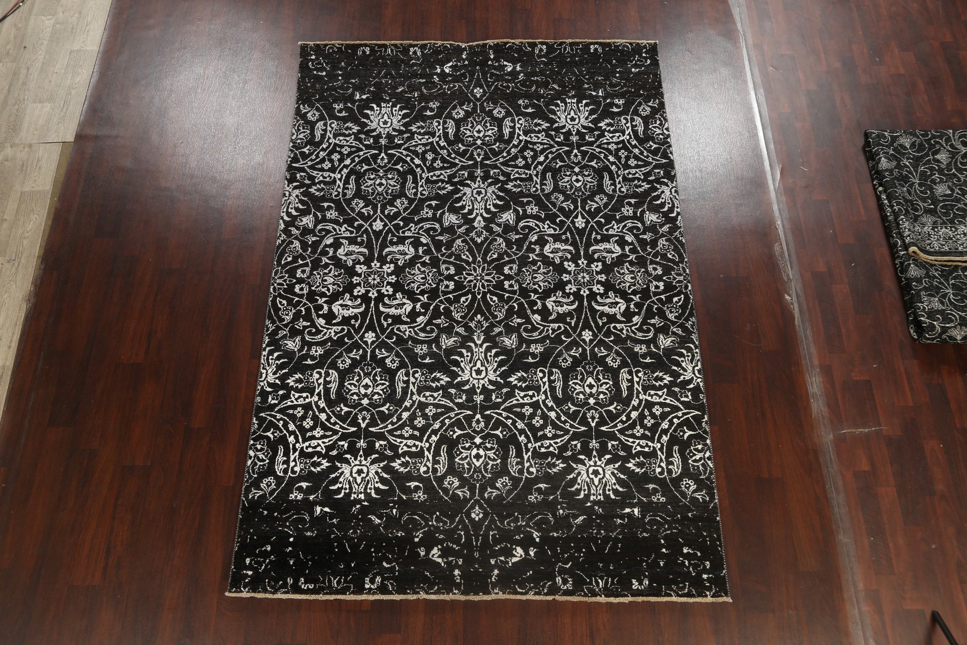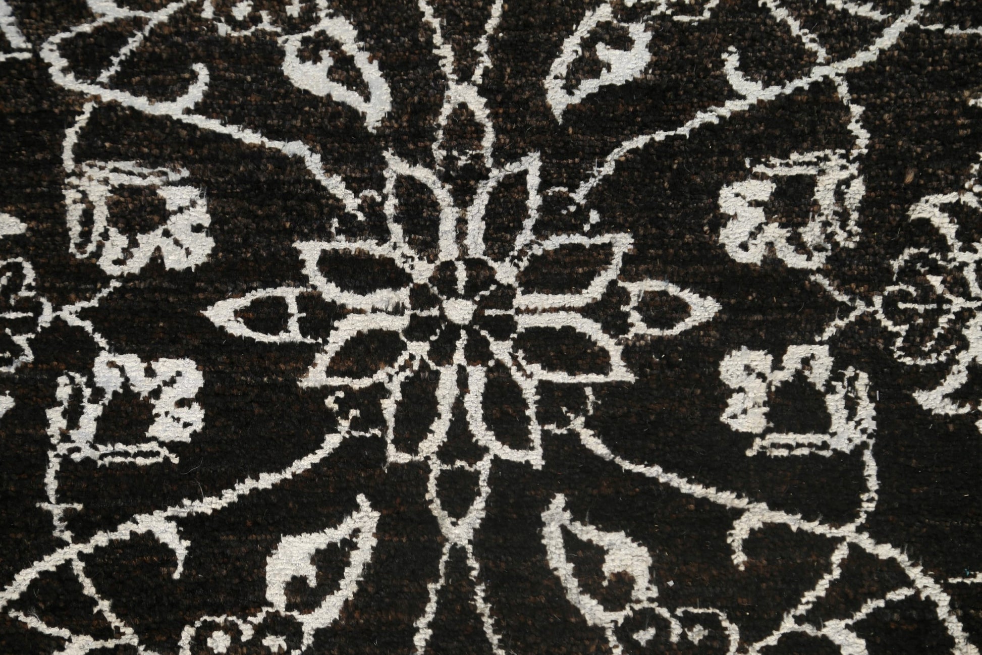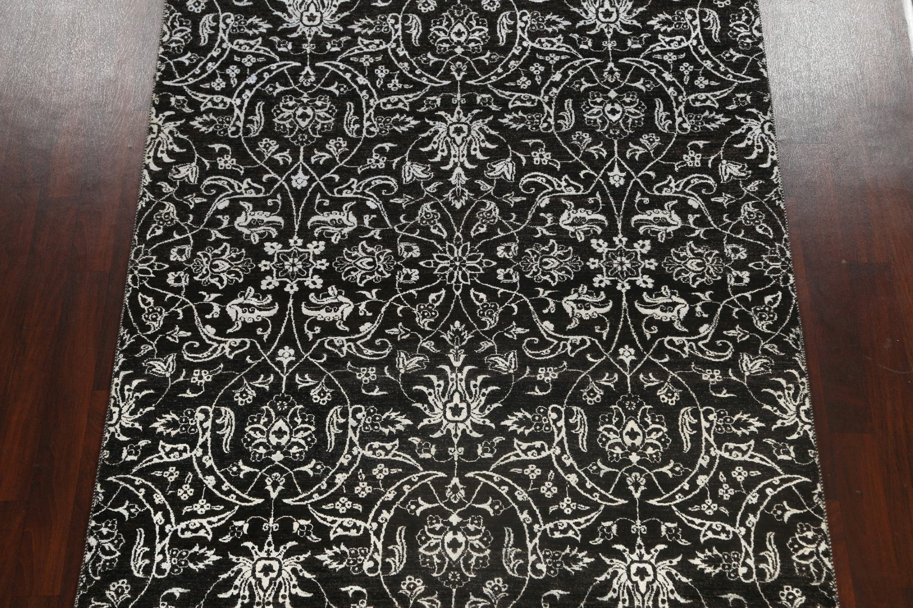 A Beautiful Genuine Pakistan Versace rug is Hand Knotted by skillful weavers in Pakistan with Wool & Silk Material. This rug is in New, First Quality condition. dimensions are 9' 9'' X 6' 8'' in foot and 297 X 203 in centimeter. the primary color is Black.