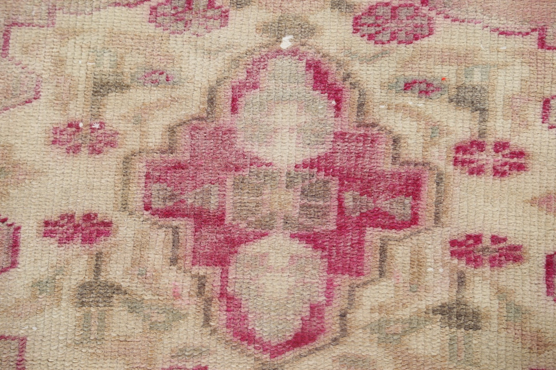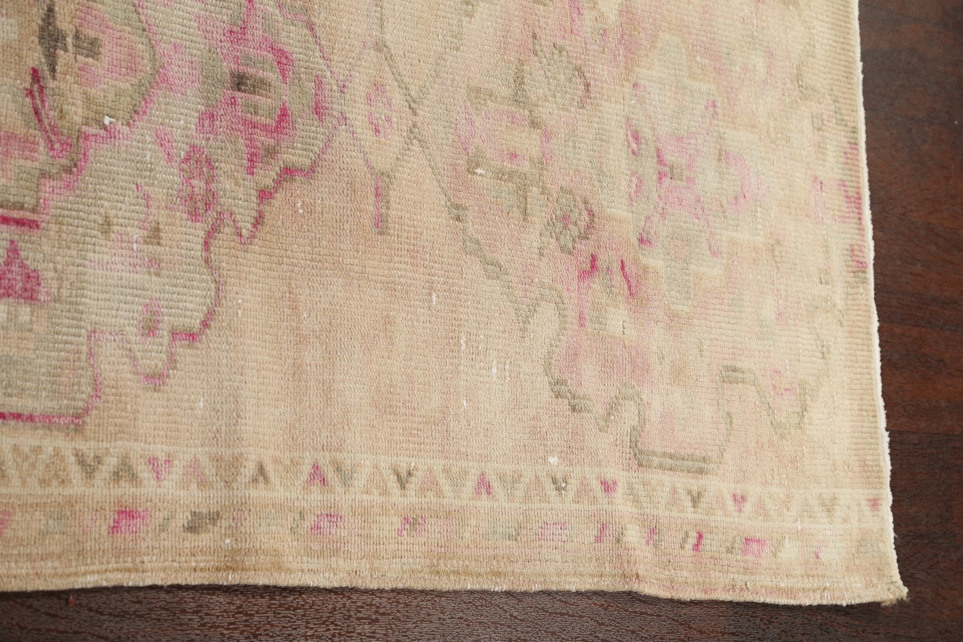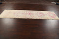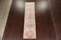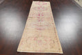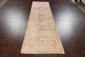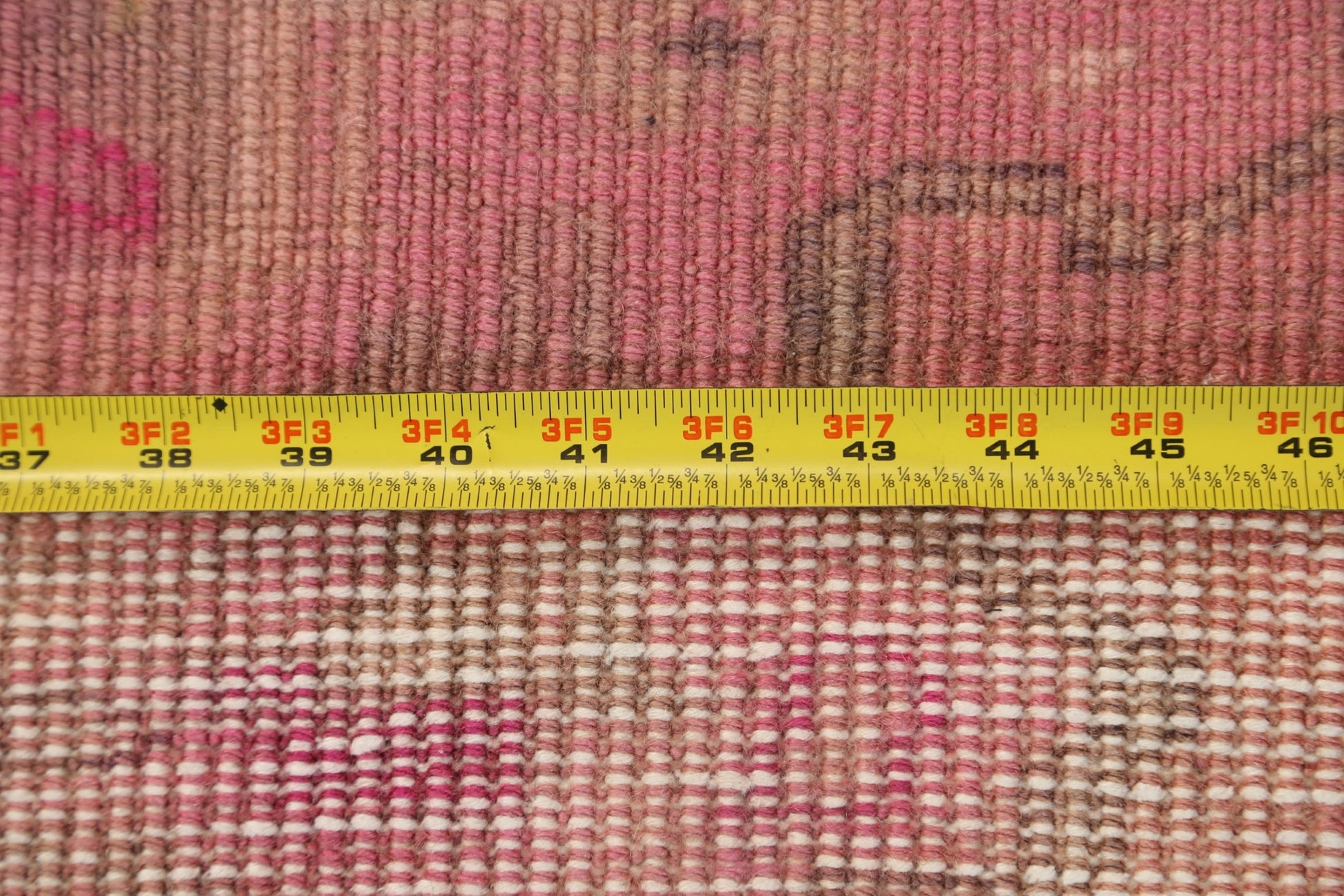 A Beautiful Genuine Turkey Oushak rug is Hand Knotted by skillful weavers in Turkey with 100% Wool Material. This rug is in Very Good (Abrash) condition. dimensions are 11' 0'' X 2' 10'' in foot and 335 X 86 in centimeter. the primary color is Pink.