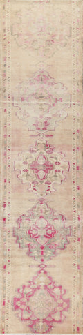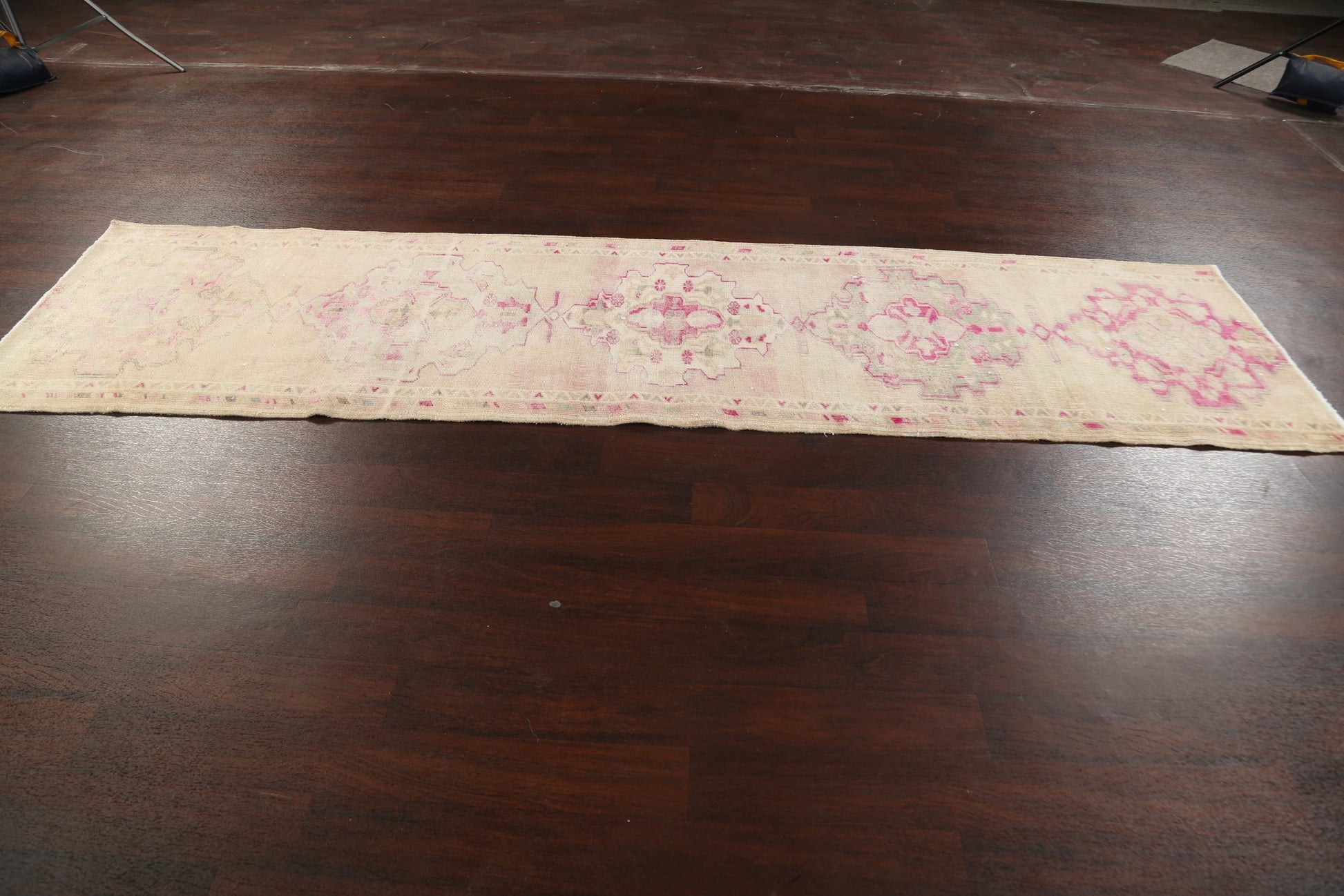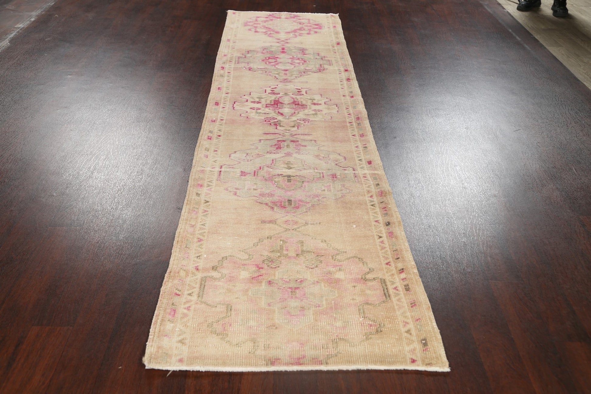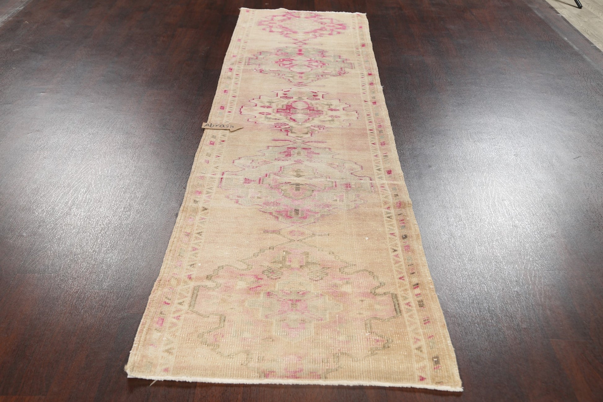 Vegetable Dye Distressed Oushak Oriental Runner Rug 3x11