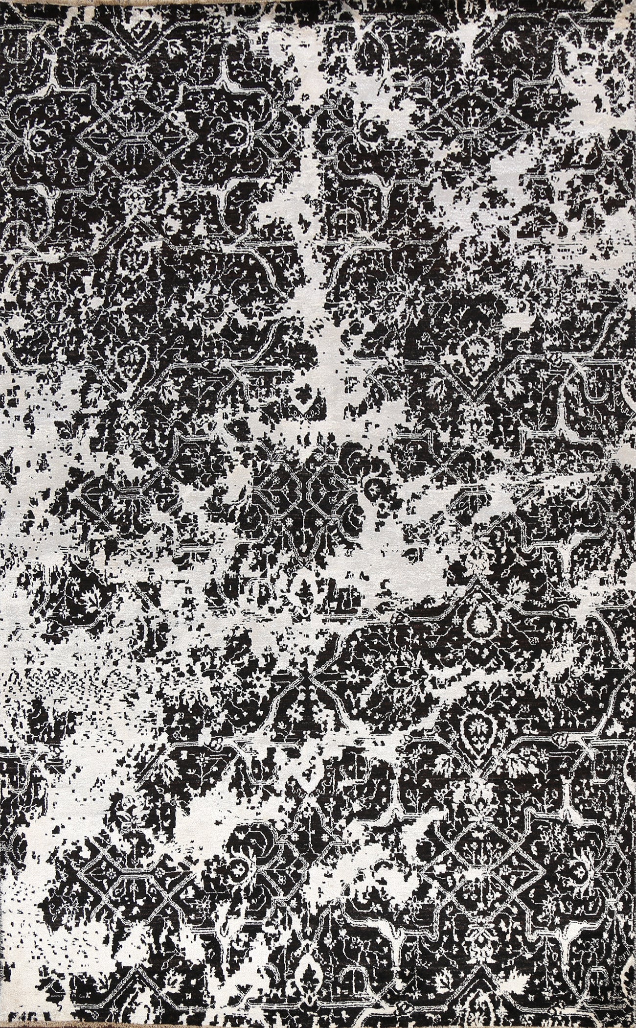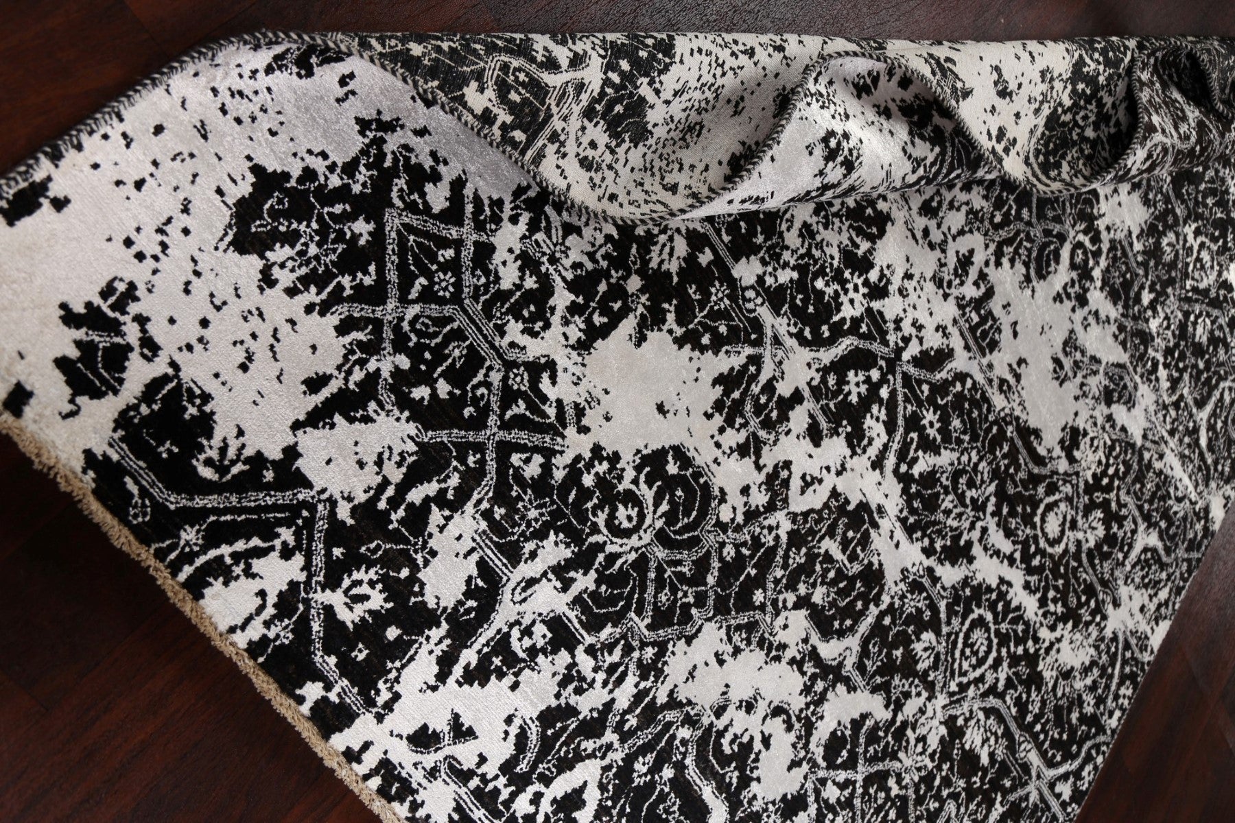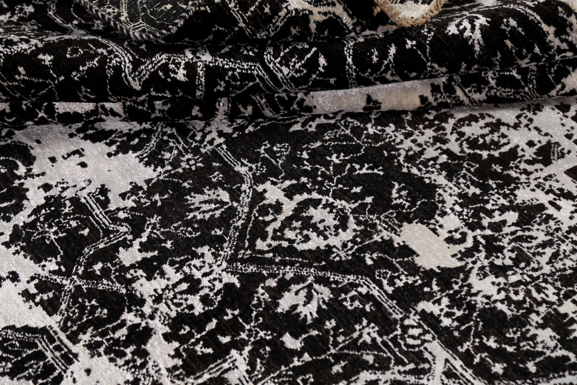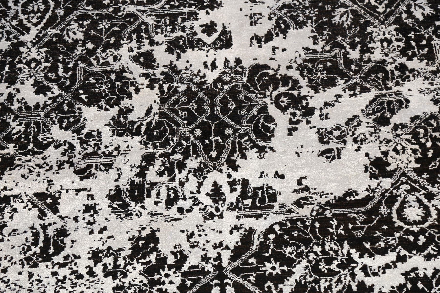 A Beautiful Genuine Pakistan Versace rug is Hand Knotted by skillful weavers in Pakistan with Wool & Silk Material. This rug is in New, First Quality condition. dimensions are 9' 0'' X 6' 0'' in foot and 274 X 183 in centimeter. the primary color is Black.