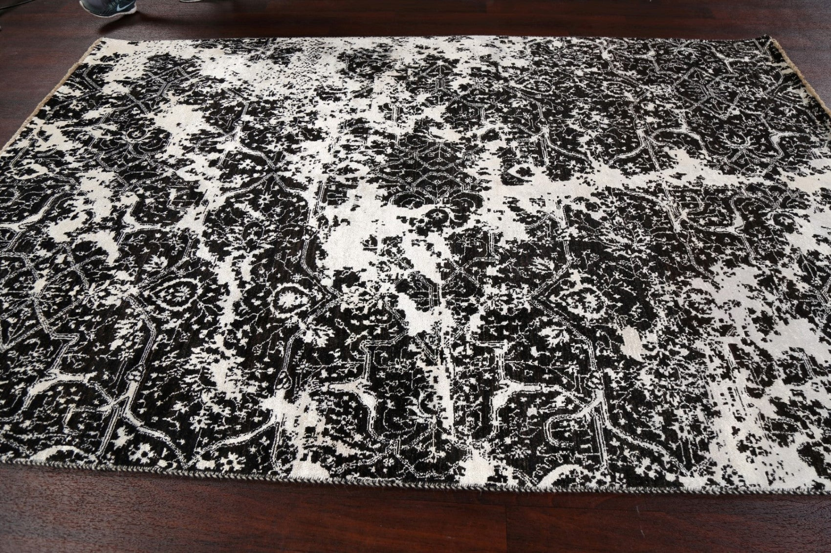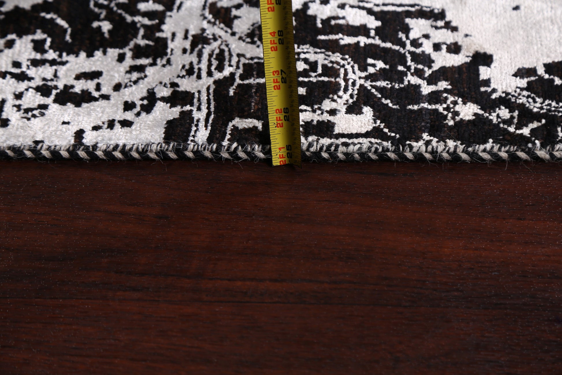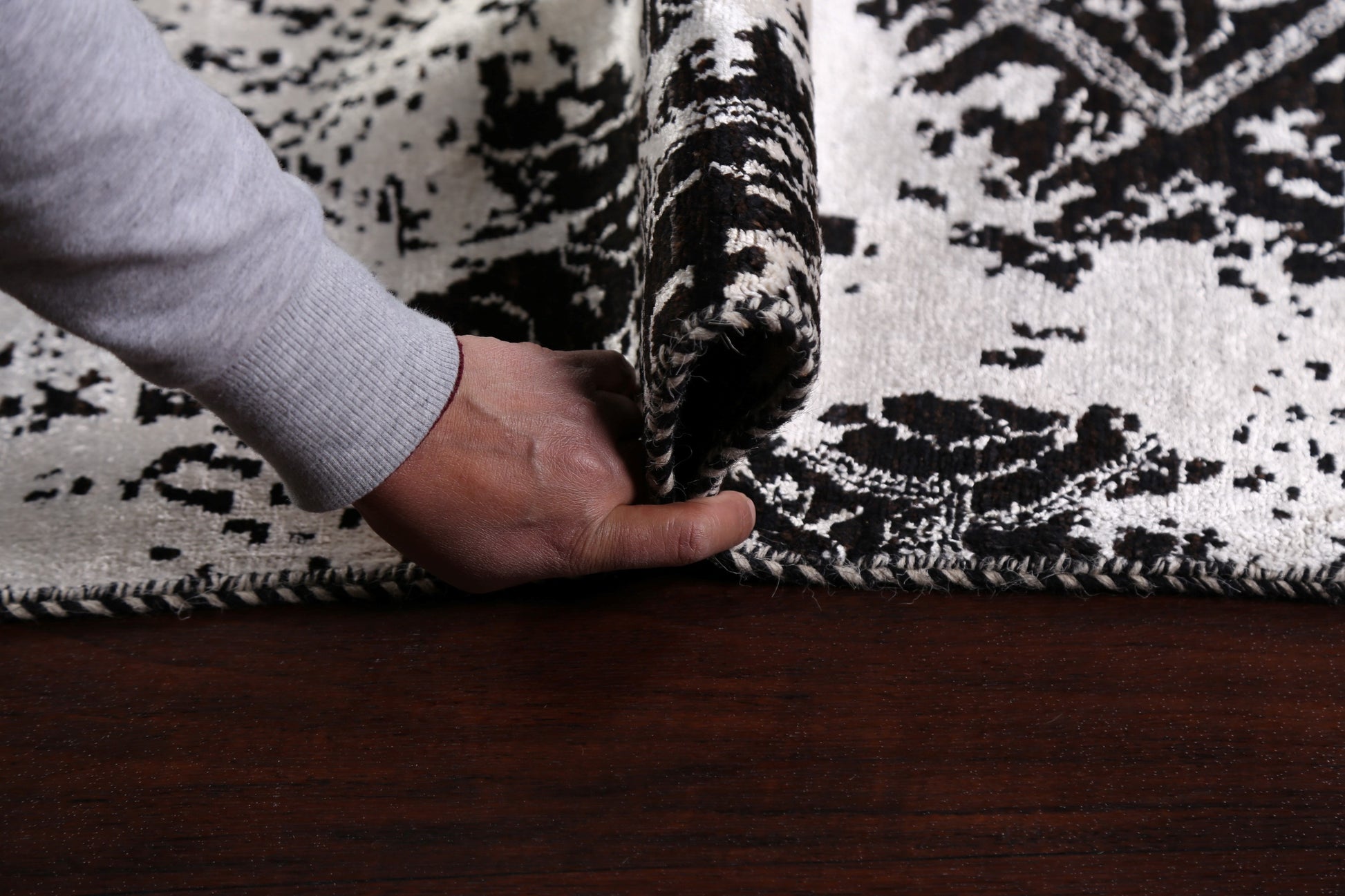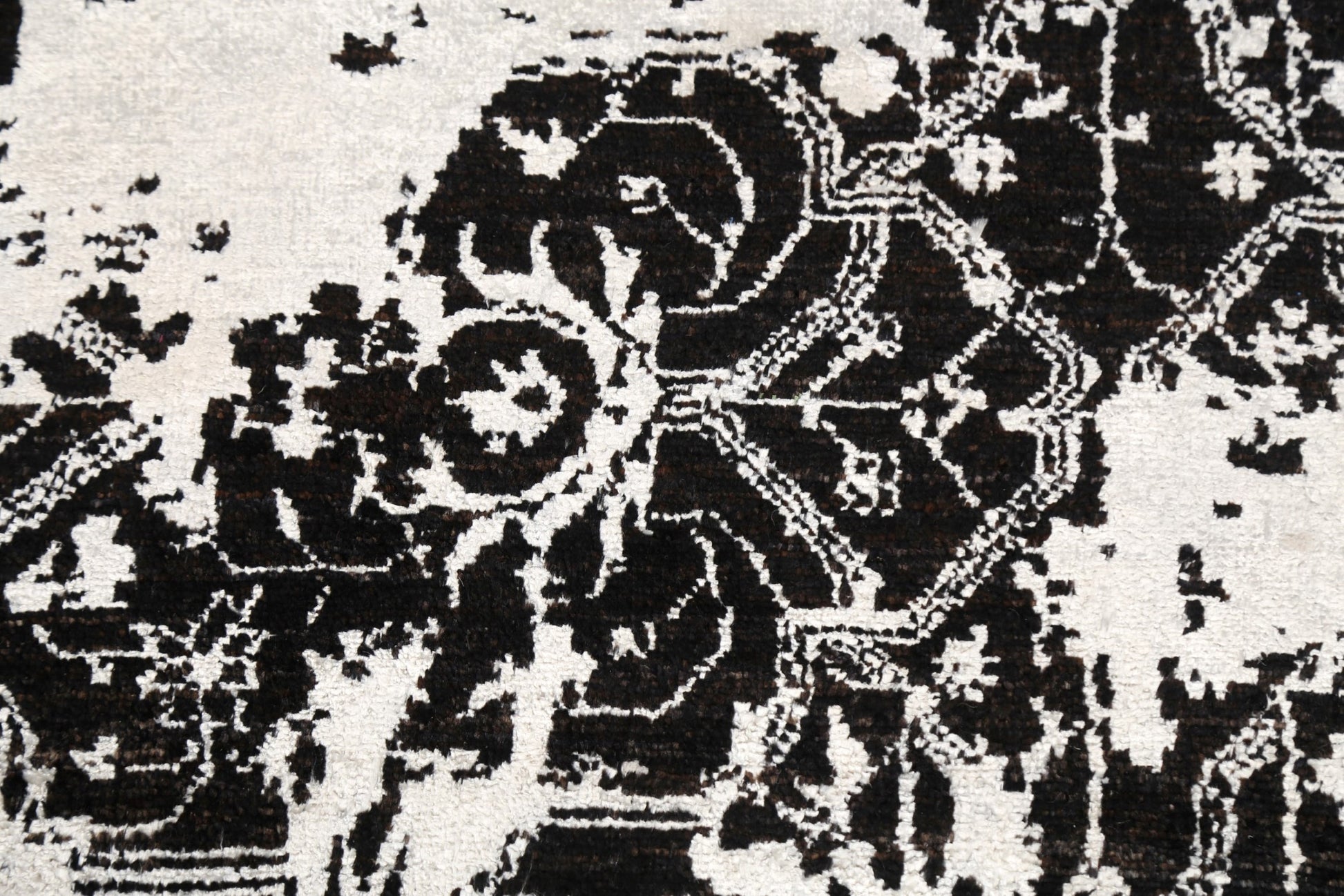 A Beautiful Genuine Pakistan Versace rug is Hand Knotted by skillful weavers in Pakistan with Wool & Silk Material. This rug is in New, First Quality condition. dimensions are 9' 0'' X 6' 0'' in foot and 274 X 183 in centimeter. the primary color is Black.