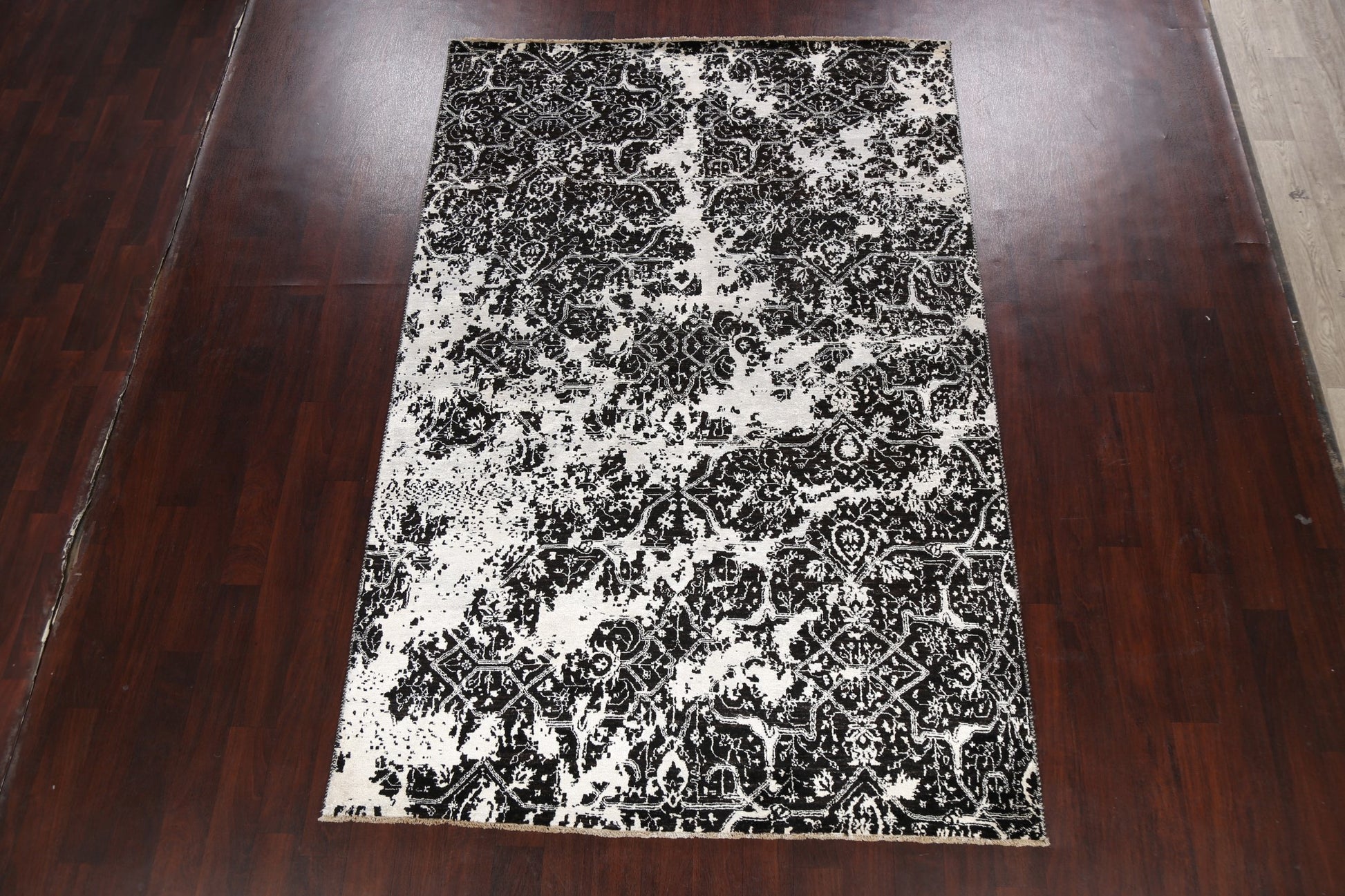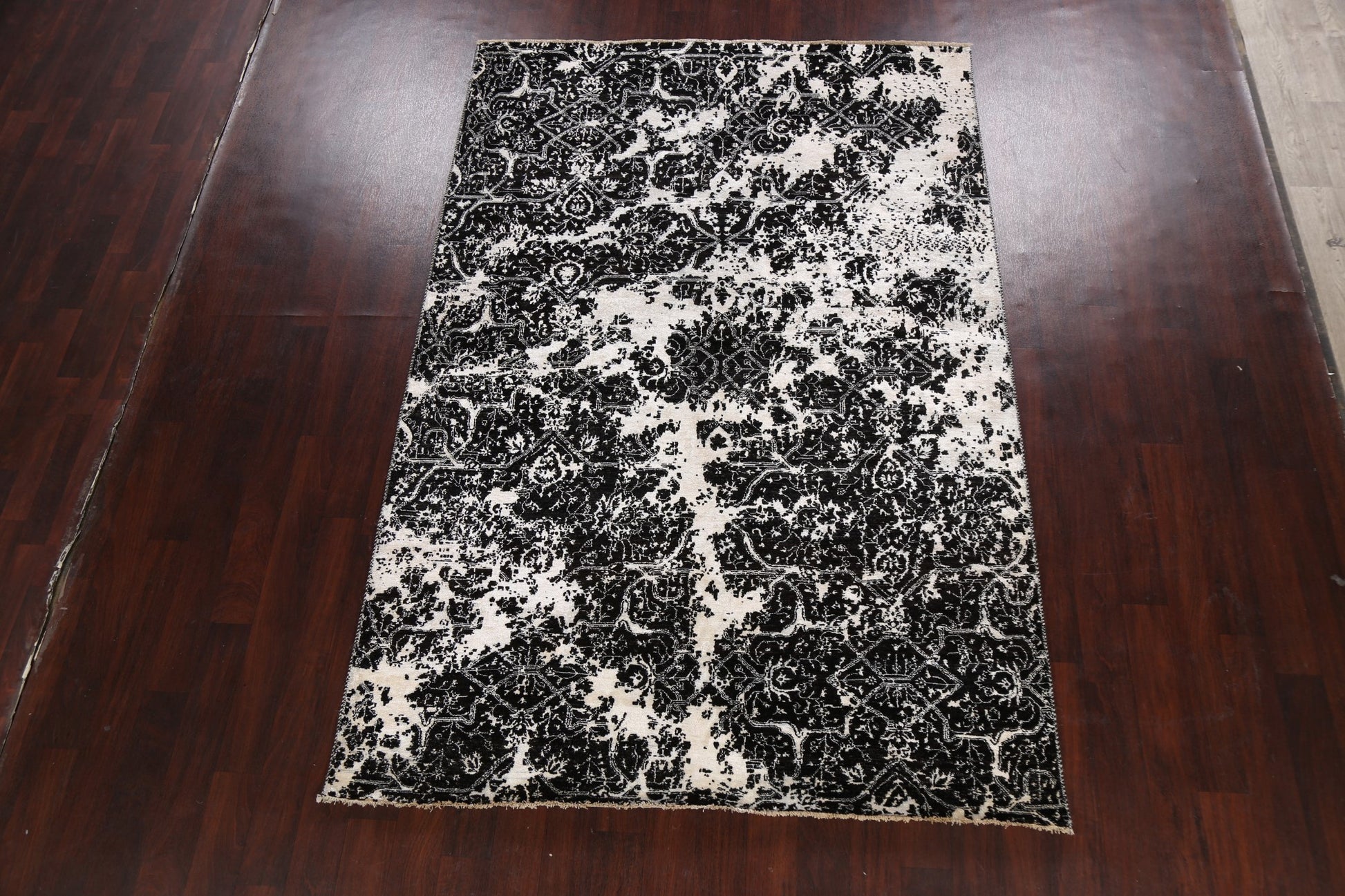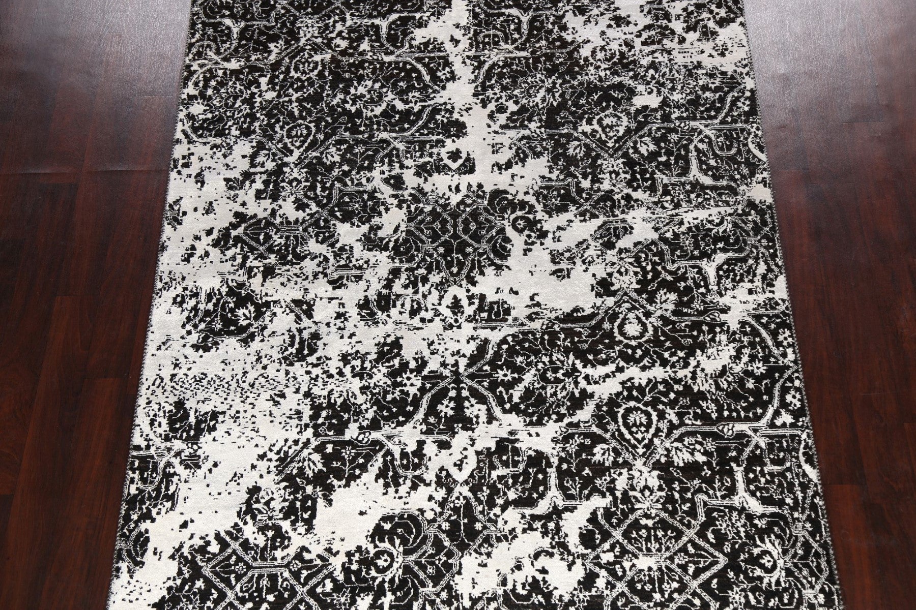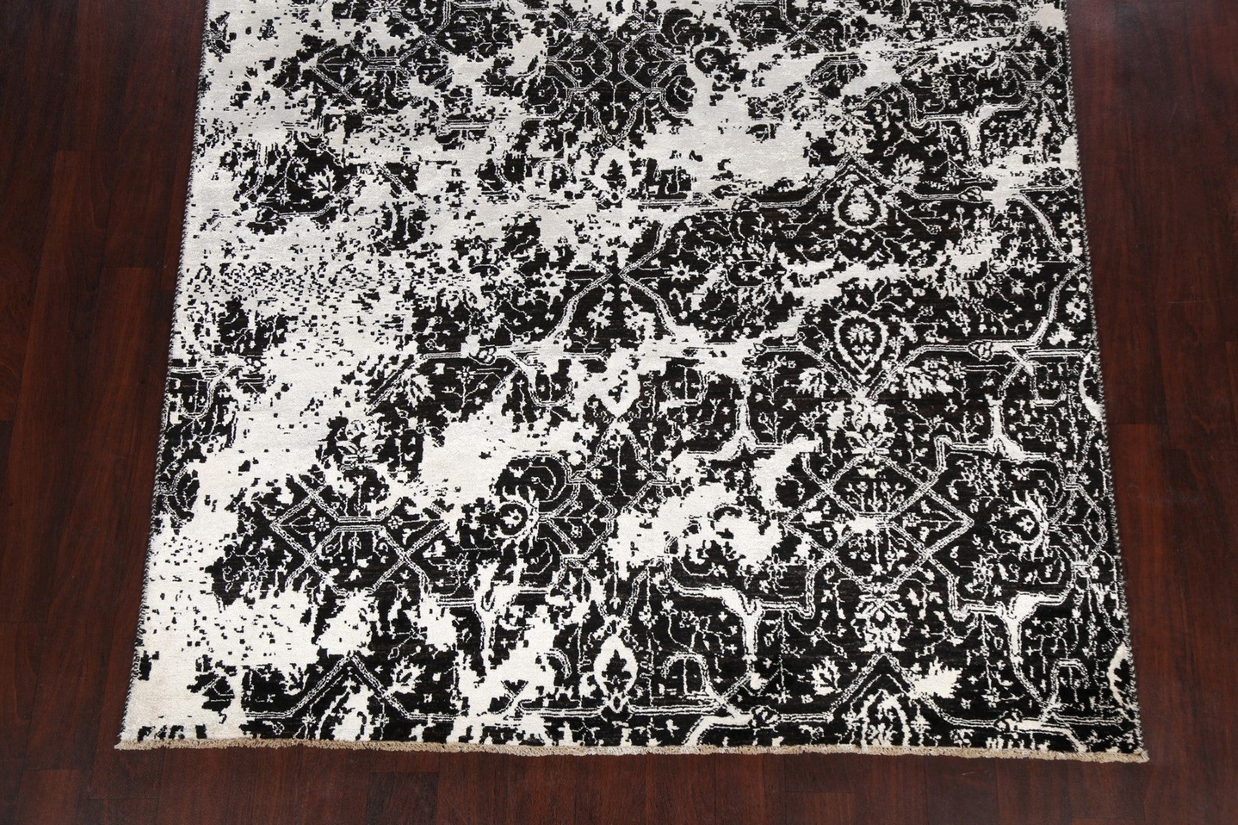 A Beautiful Genuine Pakistan Versace rug is Hand Knotted by skillful weavers in Pakistan with Wool & Silk Material. This rug is in New, First Quality condition. dimensions are 9' 0'' X 6' 0'' in foot and 274 X 183 in centimeter. the primary color is Black.