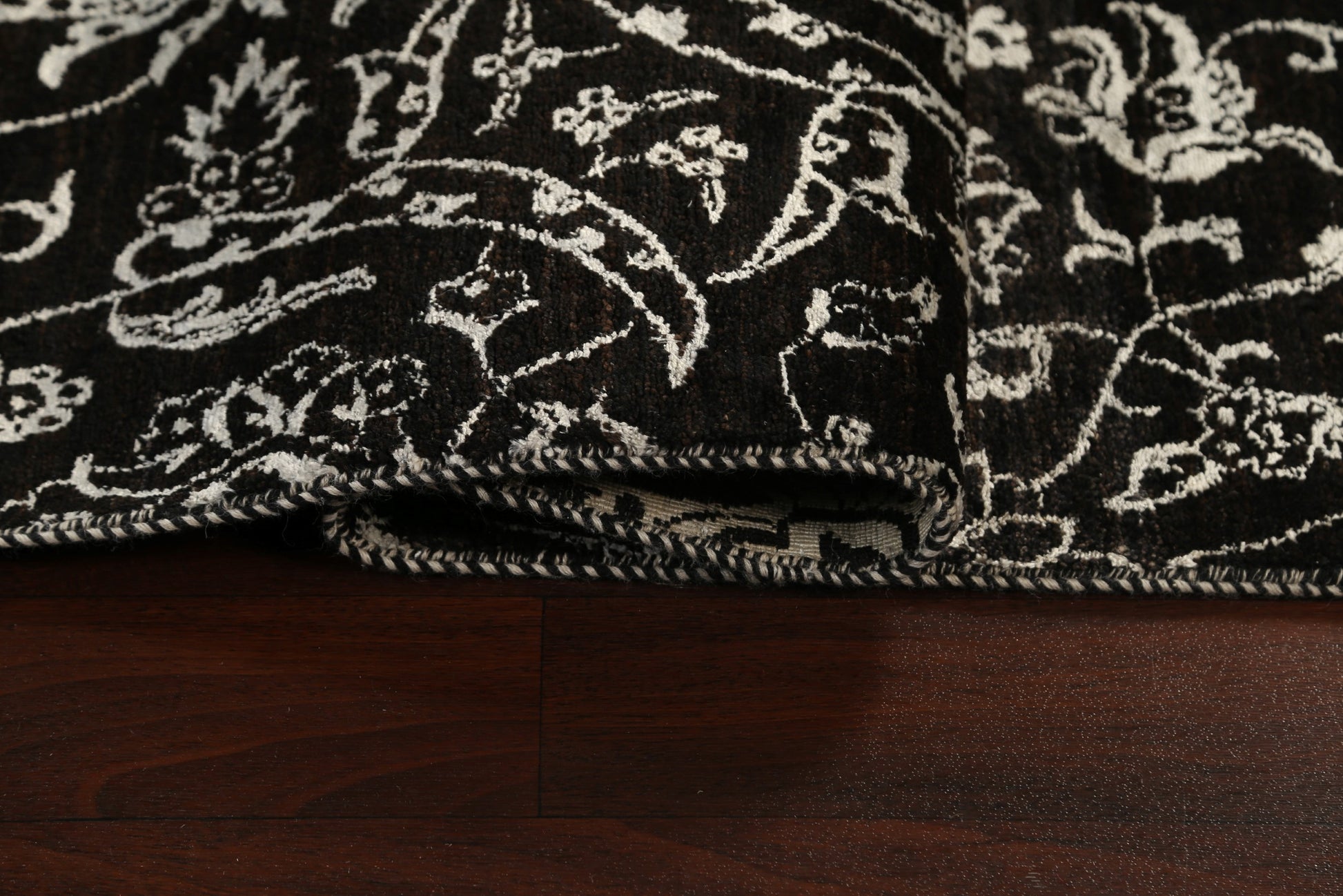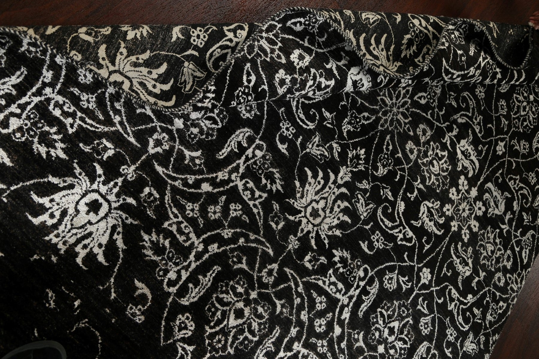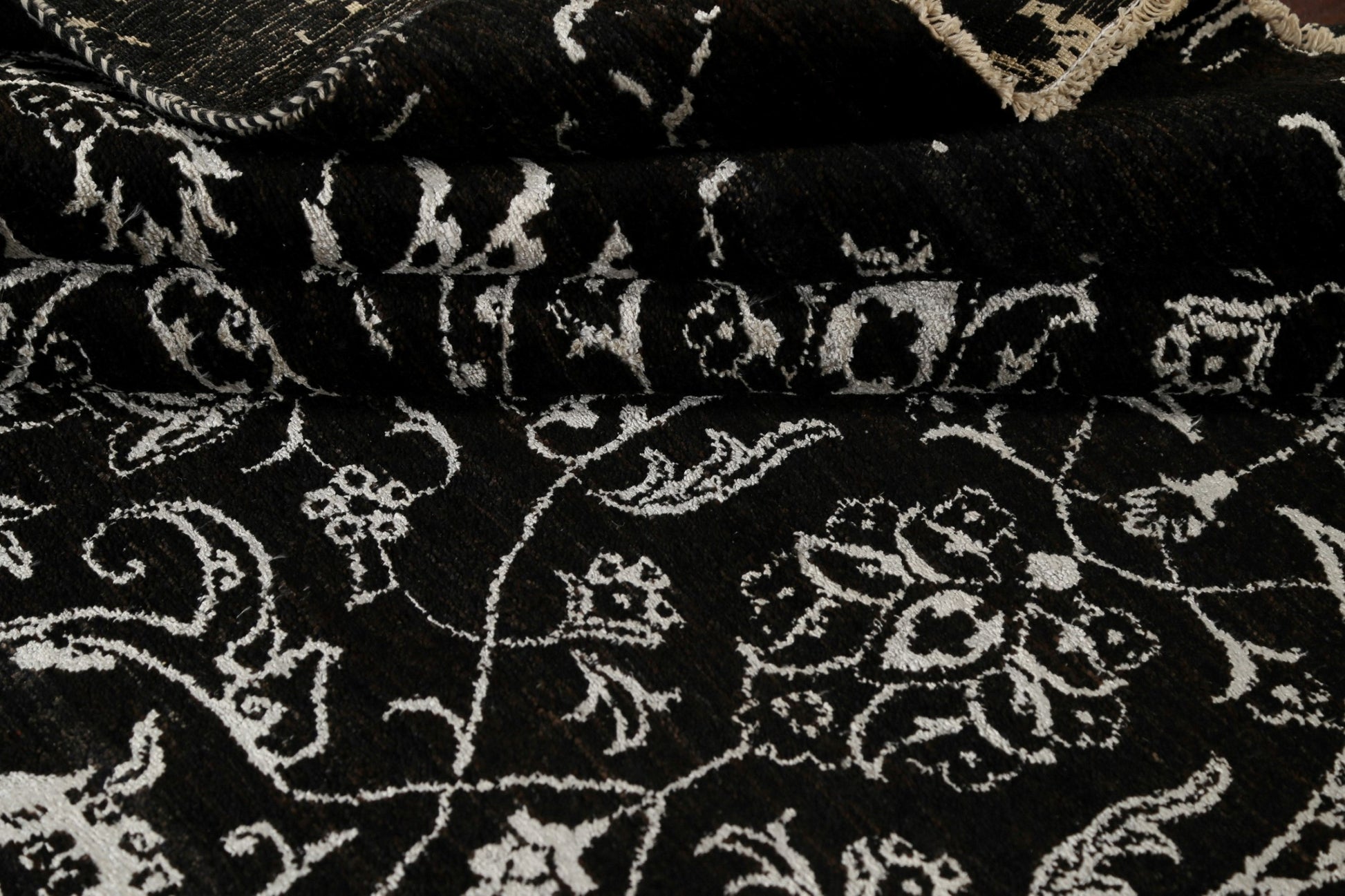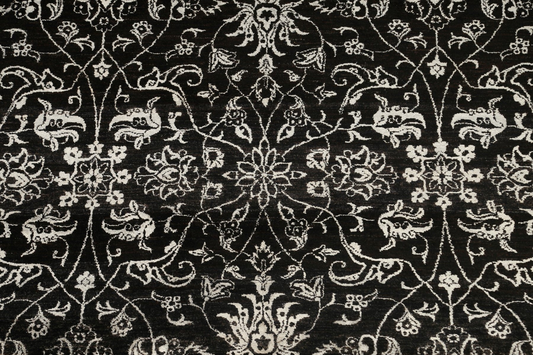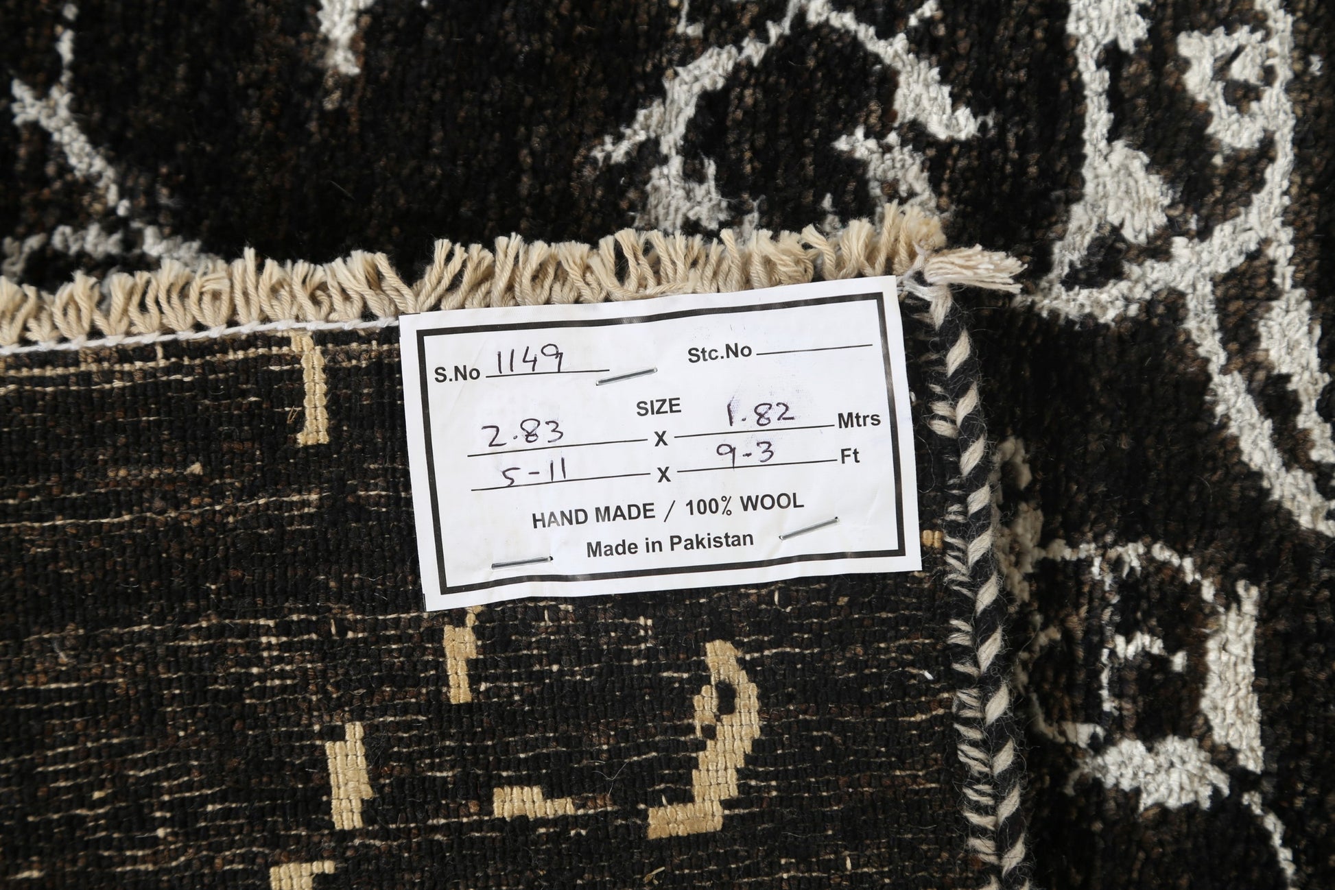 A Beautiful Genuine Pakistan Versace rug is Hand Knotted by skillful weavers in Pakistan with Wool & Silk Material. This rug is in New, First Quality condition. dimensions are 9' 3'' X 5' 11'' in foot and 282 X 180 in centimeter. the primary color is Black.
