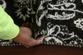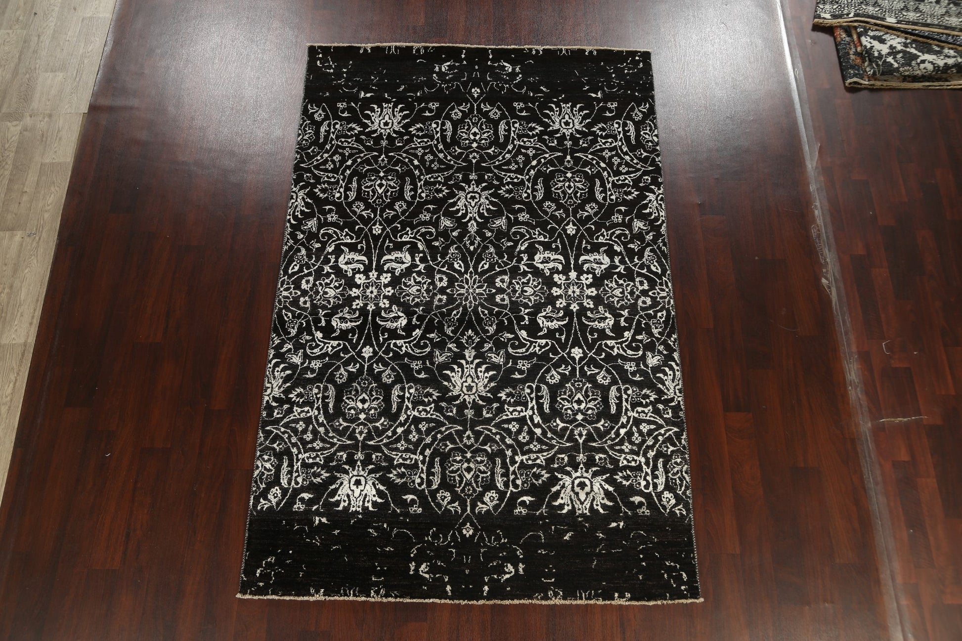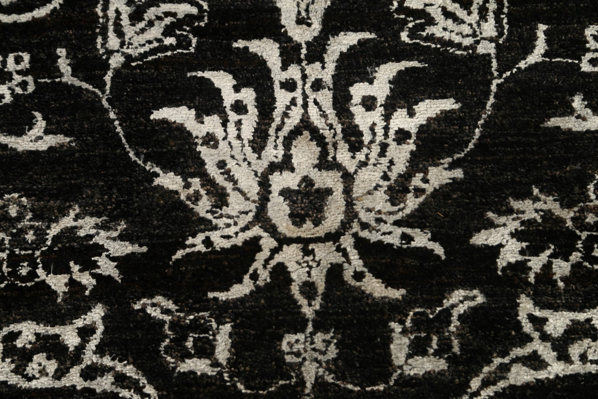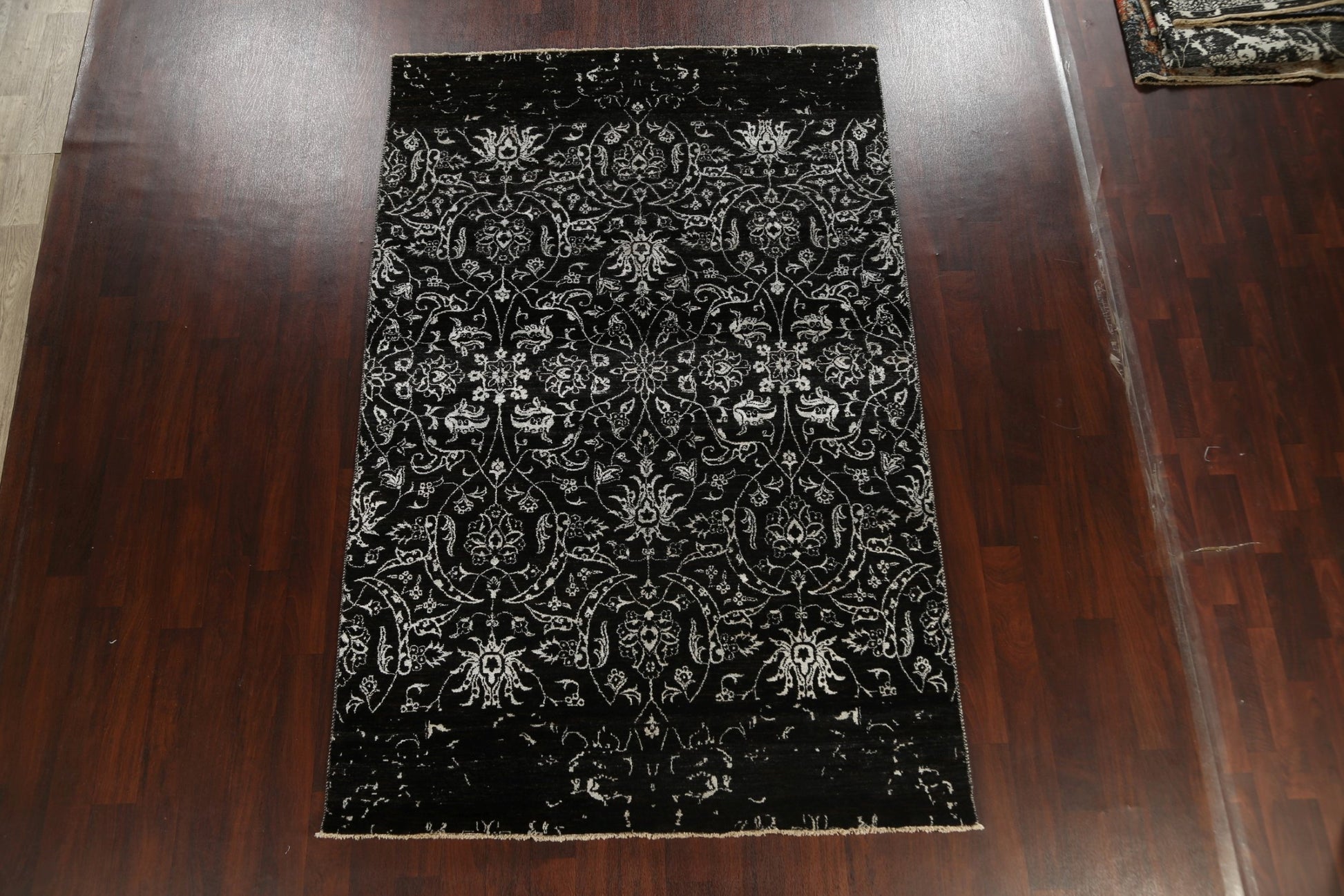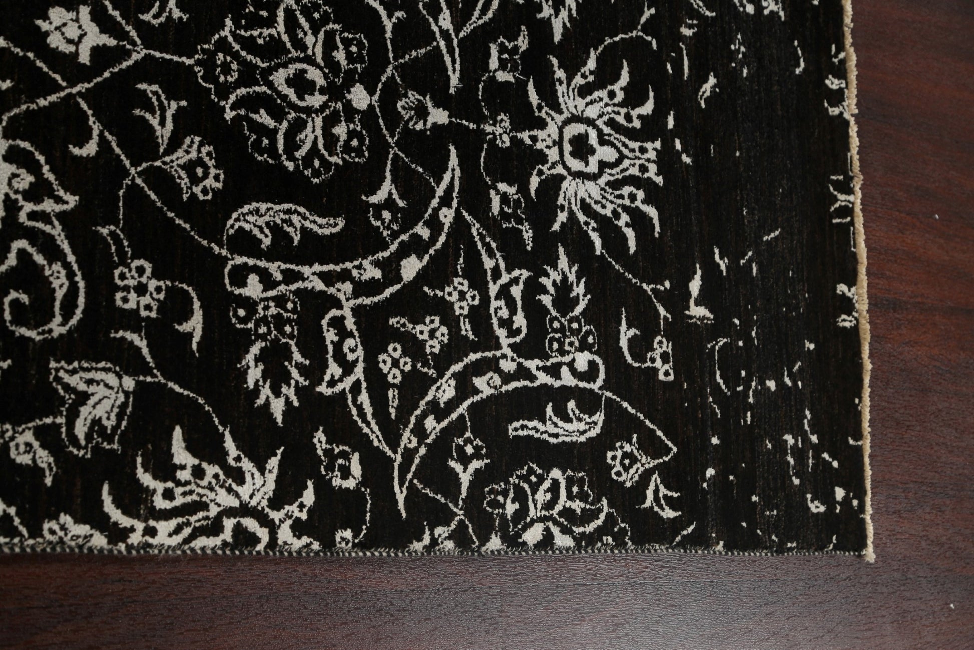 A Beautiful Genuine Pakistan Versace rug is Hand Knotted by skillful weavers in Pakistan with Wool & Silk Material. This rug is in New, First Quality condition. dimensions are 9' 3'' X 5' 11'' in foot and 282 X 180 in centimeter. the primary color is Black.
